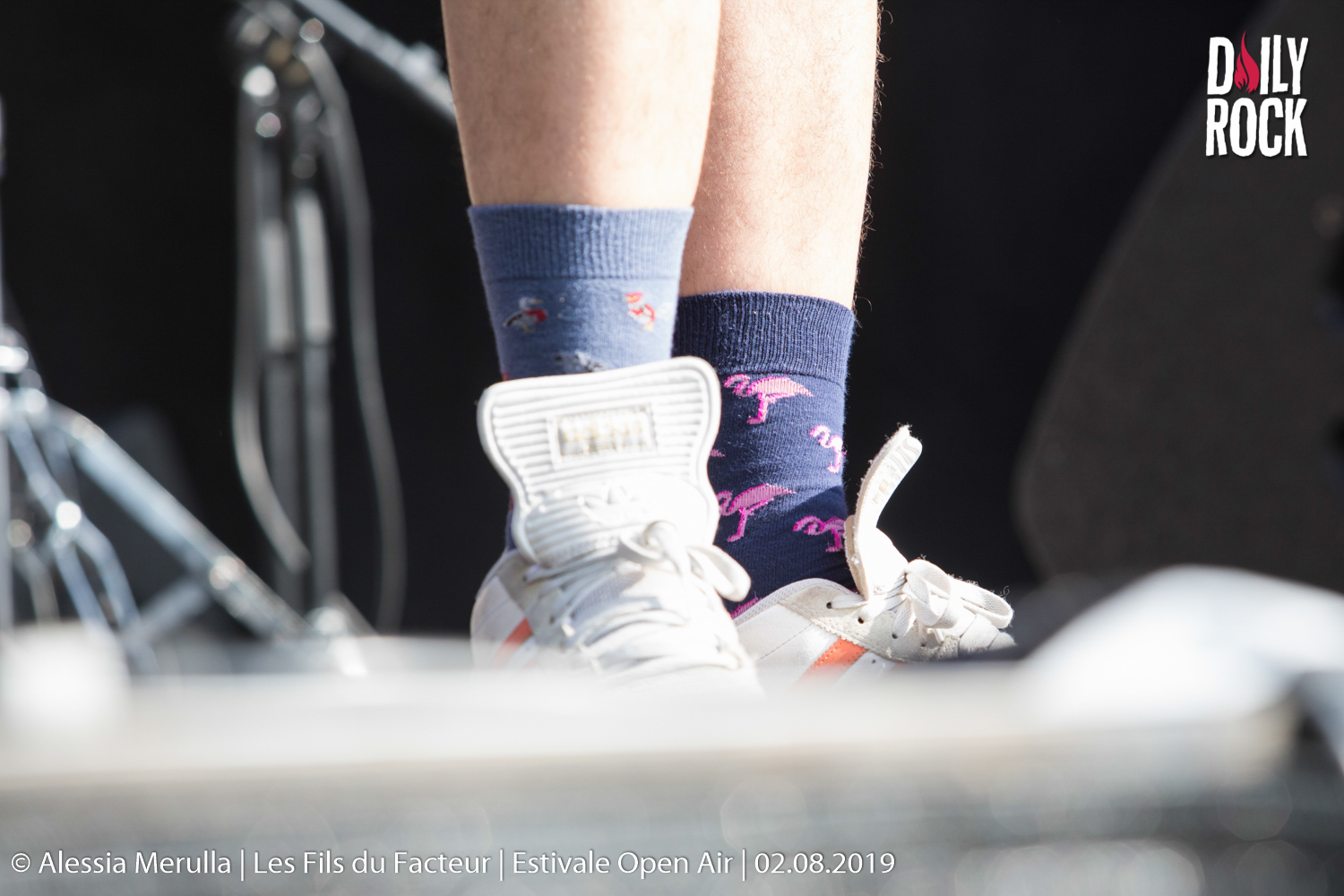 Peu avant 18h, le soleil se fait tapant sur l’Estivale Open Air. Les Fils du Facteur montent sur la Scène du Lac sous une chaleur assommante mais devant un public bien présent. Bourrés d’énergie, ils font découvrir leur version de la chanson française dans une ambiance légère. En véritables showmen, les Veveysans font preuve d’autodérision et ne perdent pas une occasion de faire une blague ou de raconter une anecdote marrante sur un morceau. Certes, la chanson française et l’accordéon ne constituent a priori par le combo gagnant pour attirer les jolies jeunes filles. Pourtant, Les Fils du Facteur ont su diffuser leur charme à travers le festival pour attirer non seulement les jeunes filles mais une foule de spectateur.trice.s qui repartira avec le sourire à la fin du concert.