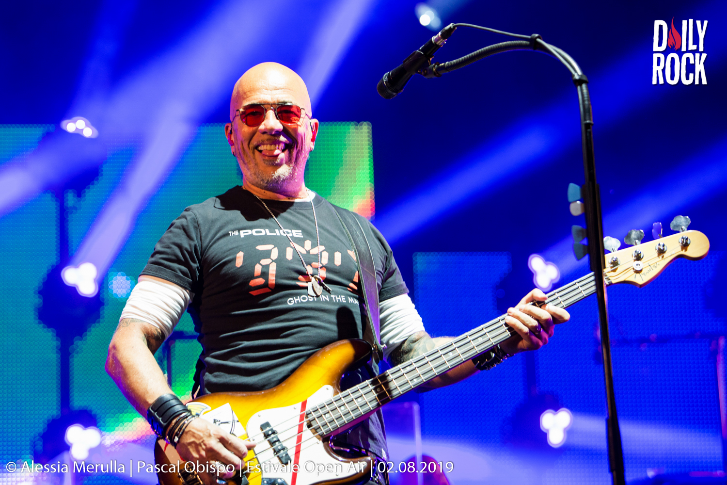 Au cas où ça n’a pas été mentionné plus haut, il est temps de préciser que pour cette troisième soirée d’Estivale, le public était très majoritairement féminin. Et celui que ces dames attendent toutes impatiemment depuis 18h, c’est bien sûr Pascal Obispo. Basse à la Calogero et lunettes rouges à la Bono, le Captain Samouraï Flower a amené son nouvel album, Obispo, à Estavayer-Le-Lac, mais pas que ! Pendant un peu plus d’une heure, il a lui aussi enchaîné les hits, que ce soit les siens ou ceux qu’il a écrits pour d’autres artistes. Ce sera d’ailleurs le seul point faible du concert. Le nombre de titres n’ayant pas été originellement interprétés par Obispo était un tantinet élevé vu la durée du concert. Ça nous aura tout de même fait une séquence blindtest ! Outre le set, c’est un Pascal Obispo au top de sa forme, surtout vocalement, qui s’est présenté devant le public de l’Estivale.