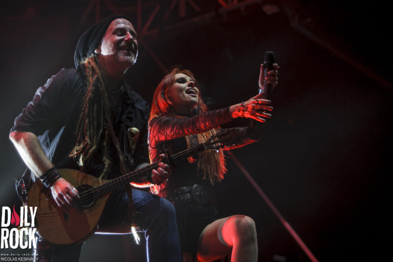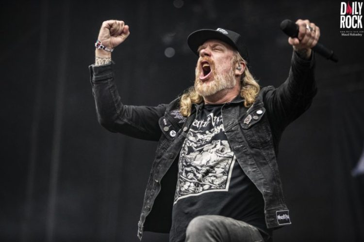 La musique ne reprendra qu’à 20h45 avec Within Temptation. Le groupe qui était apparemment venu avec plusieurs camions de matériel s’est contenté du strict minimum pour assurer le show. Dans le public, la pluie n’a pas affecté la bonne humeur des festivalier.ère.s : ça s’amuse dans la boue, ça fait splotch splotch dans les flaques et ça chante à tue-tête. Un spectacle presque plus intéressant que Within Temptation dont la chanteuse, Sharon den Adel, semble avoir un chat dans la gorge et avoir toutes les peines du monde à sortir sa voix. La petite scène rouvre ses portes avec Amaranthe qui offre un concert trop millimétré à notre goût. La soirée touche gentiment à sa fin.