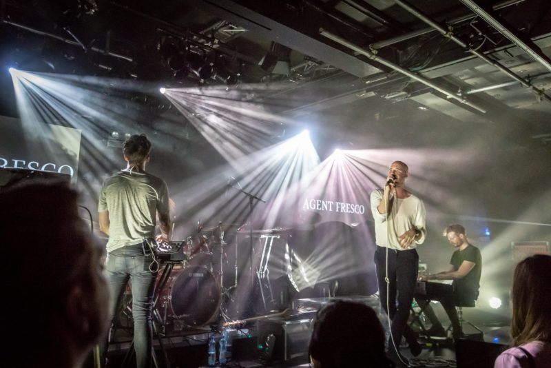Agent Fresco, au rapport ! Les Islandais ne se font pas prier pour se présenter à nous. D’entrée, la pseudo-nonchalance assumée du vocaliste Arnor Dan Arnarson fait mouche. Elle ne lui enlève pas du charisme ; elle lui en donne. Il ne faut pas très longtemps avant d’être happé par son chant majoritairement en voix de tête. Les musiciens qui l’entourent sont tout bonnement incroyables. Quand la précision et le feeling se marient, on peut parler d’union sacrée. La section rythmique envoie du bois, comme on dit ! La débauche de technique à laquelle nous avons droit (mais une technique accessible) laisse quand il le faut la place à l’émotion. À l’instar de ce titre, sur une tonalité mineure, dont le texte parle de la mort du père d’Arnor, mais selon la perspective de sa maman. J’ai réellement chopé les poils à la verticale ! Les différentes harmonies prenaient aux tripes. Moment intense au demeurant ! Pour ne rien gâcher, les musiciens ne sont pas avares en sourires. La communication avec le public est chaleureuse et non sans une petite pointe d’humour. Mais leur musique en elle-même suffit à réchauffer les cœurs. Et quand en plus, c’est vraiment bien sonorisé, se plaindre n’aurait aucun sens. Bien que peut-être plus pop que les autres groupes de la soirée, les Islandais ont mis tout le monde d’accord. La terre de glace, miroir d’une musique envoûtante…