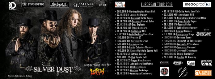 A la veille du départ, le groupe a encore du mal à y croire: « Silver Dust s’apprête à écrire une grande page de son histoire et se réjouit de partir sur les routes d’Europe aux côtés du groupe finlandais Lordi. Lord Campbell, Kurghan, Mr.Killjoy et Tiny Pistol tiennent à remercier les très nombreuses personnes qui ont rendu cette aventure possible et sont impatients de tous vous retrouver, notamment le 12 octobre à Pratteln (CH) et le 4 novembre à Montbéliard (F). Rock on ! »