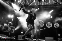 On terminera plutôt sur une bonne note, deux en fait, avec les étonnantes performances des deux groupes suisses des jours 2 et 3. Si Carrousel joue dans une catégorie déjà bien connue, proche d’un Gaétan Roussel, jouant sur les instruments et les mélodies entêtantes, la claque de ces trois jours resta sans nul doute Elvett qu’on classera dans…. les inclassables ! Un OVNI! La bio parle d’électro rock charnel, partons là-dessus ! Voix envoûtante, ambiance scénique déroutante avec la présence sur scène de… De quoi, tiens. De paraboles, pour rester dans la lignée des ovnis ? Bref une très belle découverte et une reprise des Rolling Stones épatante !