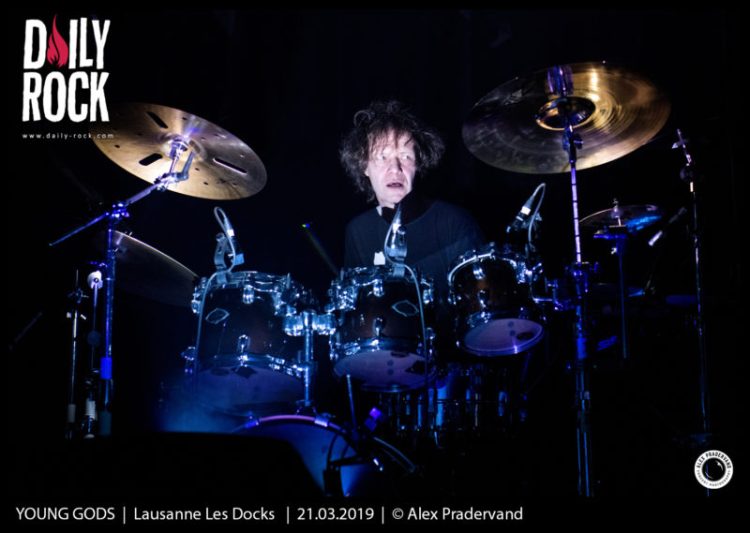Franz : Tu sais quand une tournée s’arrêtait on cherchait vite du boulot. César lui trouvait toujours des jobs intéressants dans l’informatique balbutiante. Et moi c’était dans la carrosserie, ce qui était peut-être un peu moins passionnant. On a toujours été un groupe connu, reconnu mais qui galérait au niveau des thunes. C’est une réalité. Notre parcours est assez atypique et les Young Gods est probablement le seul groupe suisse des années 80 à être encore en activité, c’est plutôt dingue.