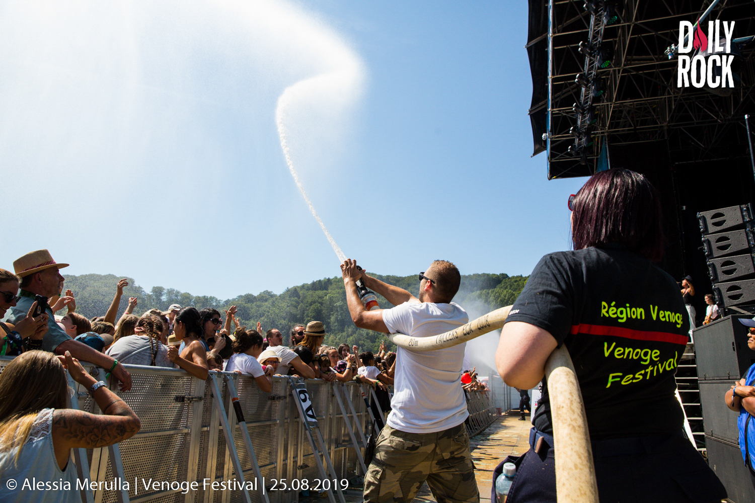 Jérémy Frérot a ensuite embarqué le Venoge Festival pour un voyage musical et marin. Il se crée petit à petit une atmosphère de vacances (même si elles touchent bientôt à leurs fins pour la plupart des jeunes spectateurs). Une voile de bateau se déploiera même au fond de la scène. Avec les bâches bleues qui entourent la structure, on se croirait presque sur l’océan. A défaut de pouvoir se rafraîchir dans l’eau, le chanteur n’hésite pas à prendre des bains de foule. Au niveau musical, les fans des Frero Delavega n’ont pas été déçu puisque, entre deux compositions personnelles, Jérémy Frérot a offert quelques moments de nostalgie, notamment avec ‘Le Cœur Élephant’ ou ‘Le Chant des Sirènes’. Voyage assuré !