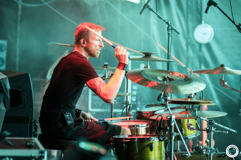 Au bout d’un moment, j’engage la conversation avec elle et elle m’apprend qu’elle vient d’intégrer Almøst Human comme bassiste. C’est donc son premier concert avec le groupe et elle commence direct avec le Greenfield ! Sympa le cadeau de bienvenue. En tous les cas bravo à elle car cela s’est super bien passé. Le groupe joue en plein soleil et arrive à attirer une jolie foule de curieux qui ne cessera de s’agrandir tout au long du set. La scène est plus grande que le tout le Bleu Lézard, mais elle est bien occupée par les musiciens. En faisant des photos, je vois que Gilles a tendance à rester sur le devant de la scène en plein soleil. Il me dira après le concert que s’il s’éloignait de cette zone, il perdait le contact avec ses retours et qu’effectivement il avait eu bien chaud. Pour ma part, j’ai eu l’occasion de shooter aussi depuis la scène, donc j’ai enfin eu des photos potables de Rosario.