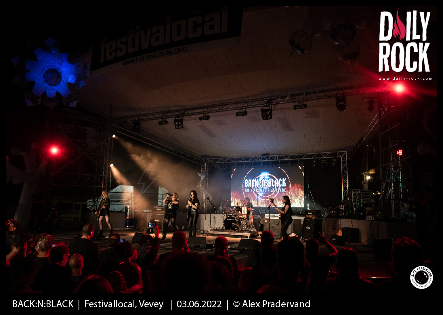 Sous le soleil, magnifique première journée au bord du lac Léman pour Festivallocal dont la tête d’affiche était Back:N:Black. Tous les tubes d’AC/DC joués avec plaisir et la manière dans un cadre splendide, ainsi que devant une jolie foule venue pour applaudir et reprendre les refrains en choeur.