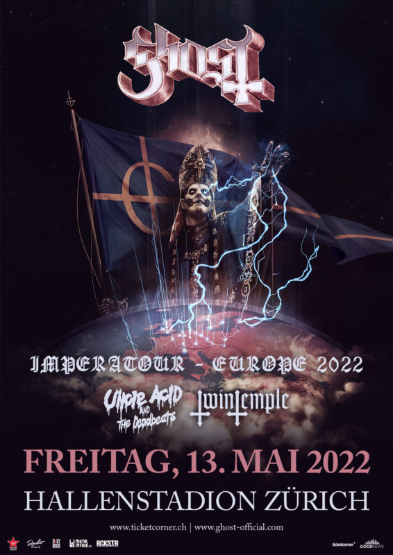 Les maîtres suédois du rock occulte GHOST vont à nouveau apporter leur rituel de scène au Hallenstadion de Zurich le vendredi 13 mai 2022 avec en Special Guests Twin Temple et Uncle Acid & The Deadbeats.