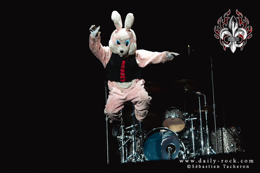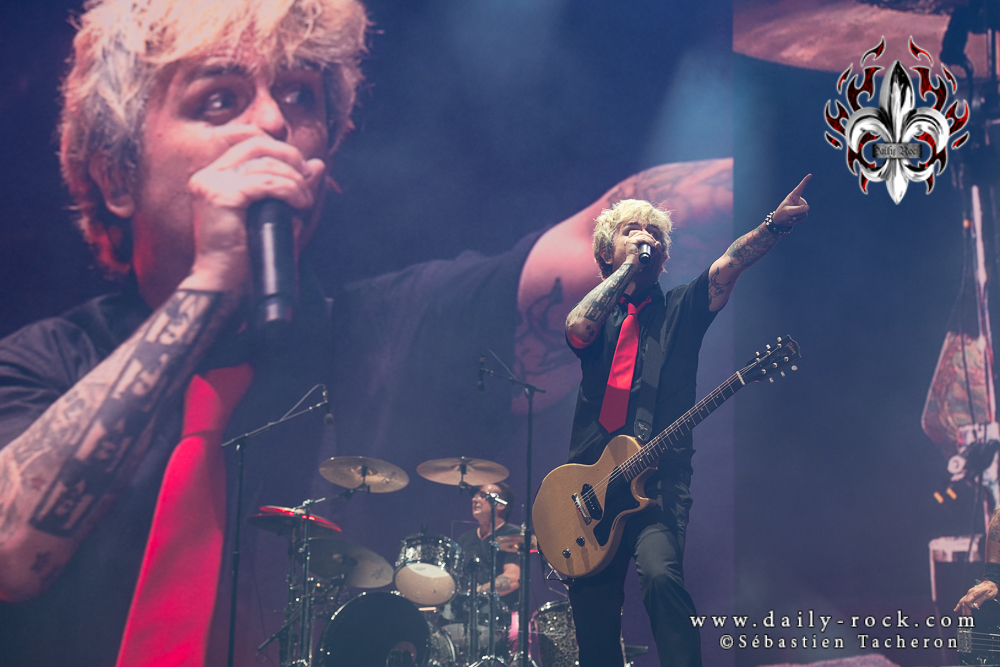 Billie Joe Armstrong, Mike Dirnt et Tré Cool se sont ensuite précipités sur scène et ont pris le relais du lapin joyeux pour faire chanter, crier et danser la foule pour le reste de la soirée! Il faut dire que le trio Californien se classe dans une catégorie rare et particulière dans l’industrie de la musique : Celle à pouvoir enligner 20-25 hits les uns après les autres sans interruption!