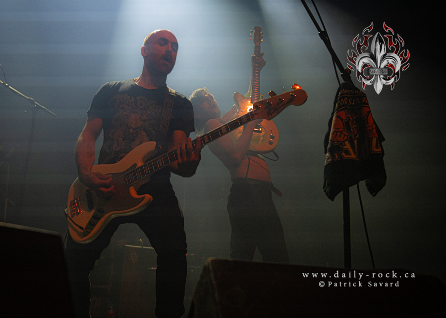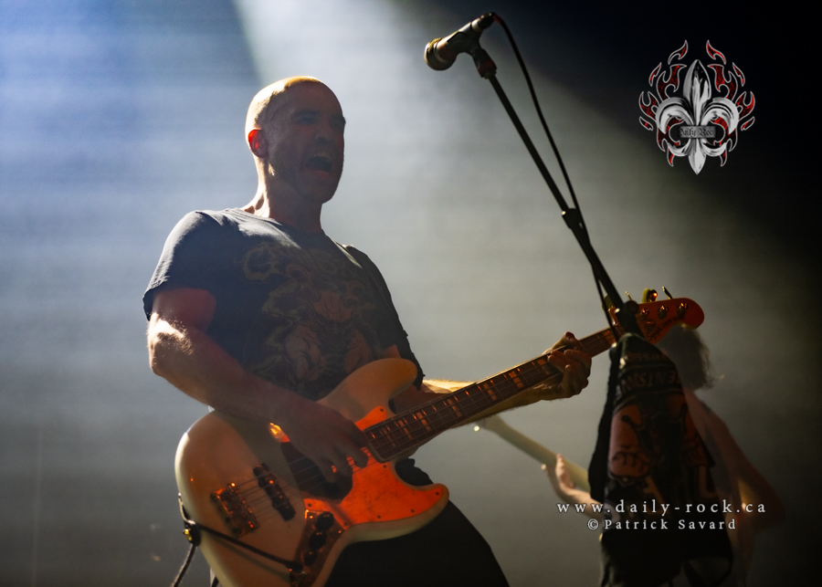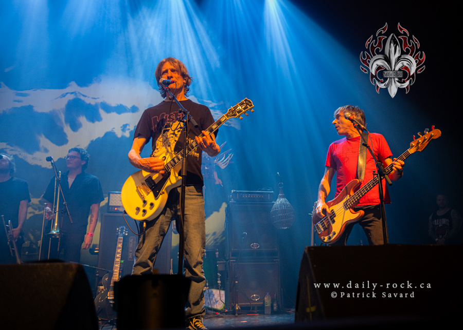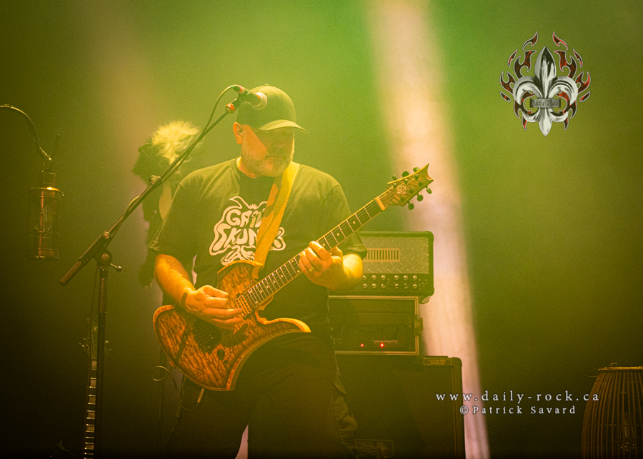 Commençant le show avec Gotta Find a Way suivie de Live For Today, on savait que ce serait probablement Fieldtrip. Un setlist de malade; l’album fut joué dans le désordre, entremêlé de chansons qui provenaient de d’autres albums. C’était une surprise à chaque fois! WOW, le show dura deux heures! Je me sentais comme une enfant à Noël, première devant la gate, à savourer chaque note. Shantal Arroyo, une bonne amie du groupe ainsi que Oncle Costa sont venus triper sur scène comme dans le bon vieux temps; Perestroïka et Ya Basta! ont été jouées. Je me dois de souligner le retour d’Alain Vadeboncoeur (ULF) à la batterie. Drummer original de la formation, il avait quitté le groupe en 2009 pour se consacrer à sa famille et ses projets personnels. Comme il l’a dit lui-même à la foule, il revient maintenant à ses anciens amours : Grim Skunk, ses membres, son drum pis nous autres. Ce sont 25 chansons qui nous ont été offertes.