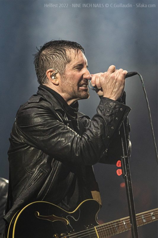 Nine Inch Nails était le groupe très attendu de ce jour car c’est pour eux une première fois au Hellfest. Un groupe qui ne tourne pas souvent et qui attire les foules. Ce n’est pas une claque musicale cette fois, c’est carrément le coup de poing. Le gros son lourd, indus ponctué d’electro parfois et la voix très sombre et suave de Trent Reznor cloue le public sur place. Le son est à son apothéose dès la première chanson et personne ne reste indifférent. Les caméras captent des bribes de visages, le jeu de lumière est savamment étudié pour garder une part de mystère qui caractérise bien l’esprit Nine Inch Nails. Beaucoup de titres phares du groupe sont passés en revue, ce qui enchante les fans, et un magnifique ‘Hurt’ est venu combler le public de ce soir.