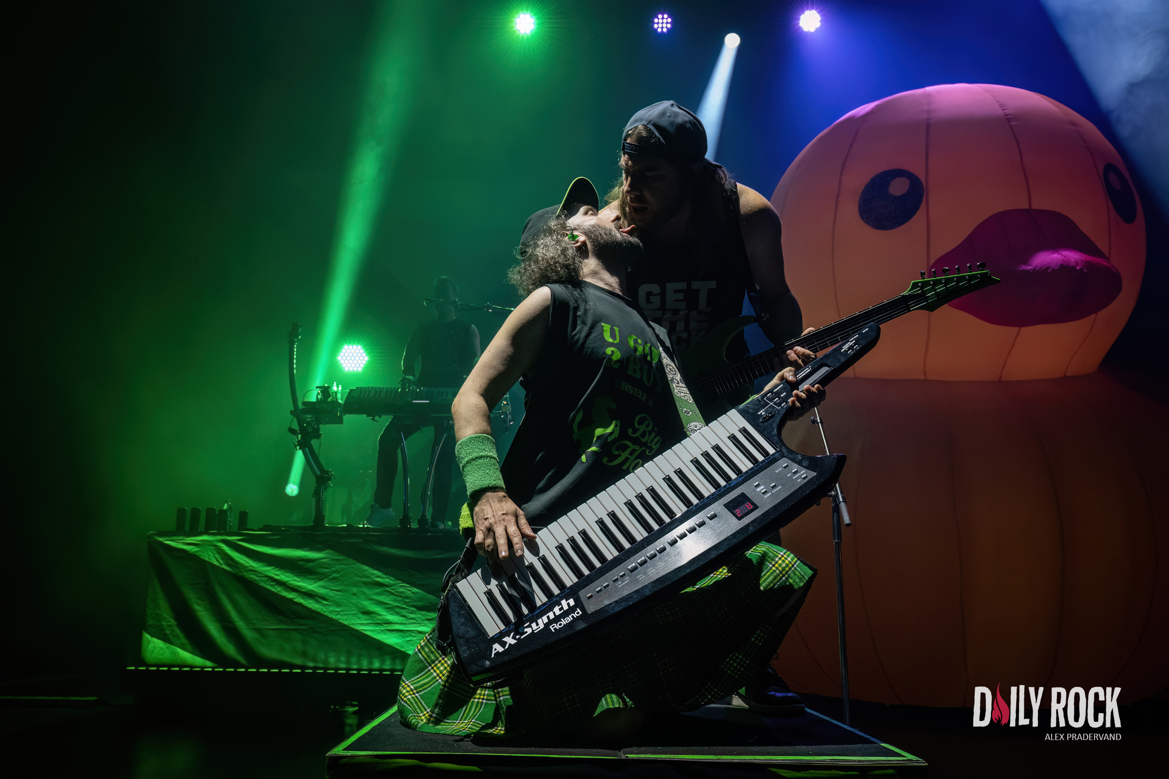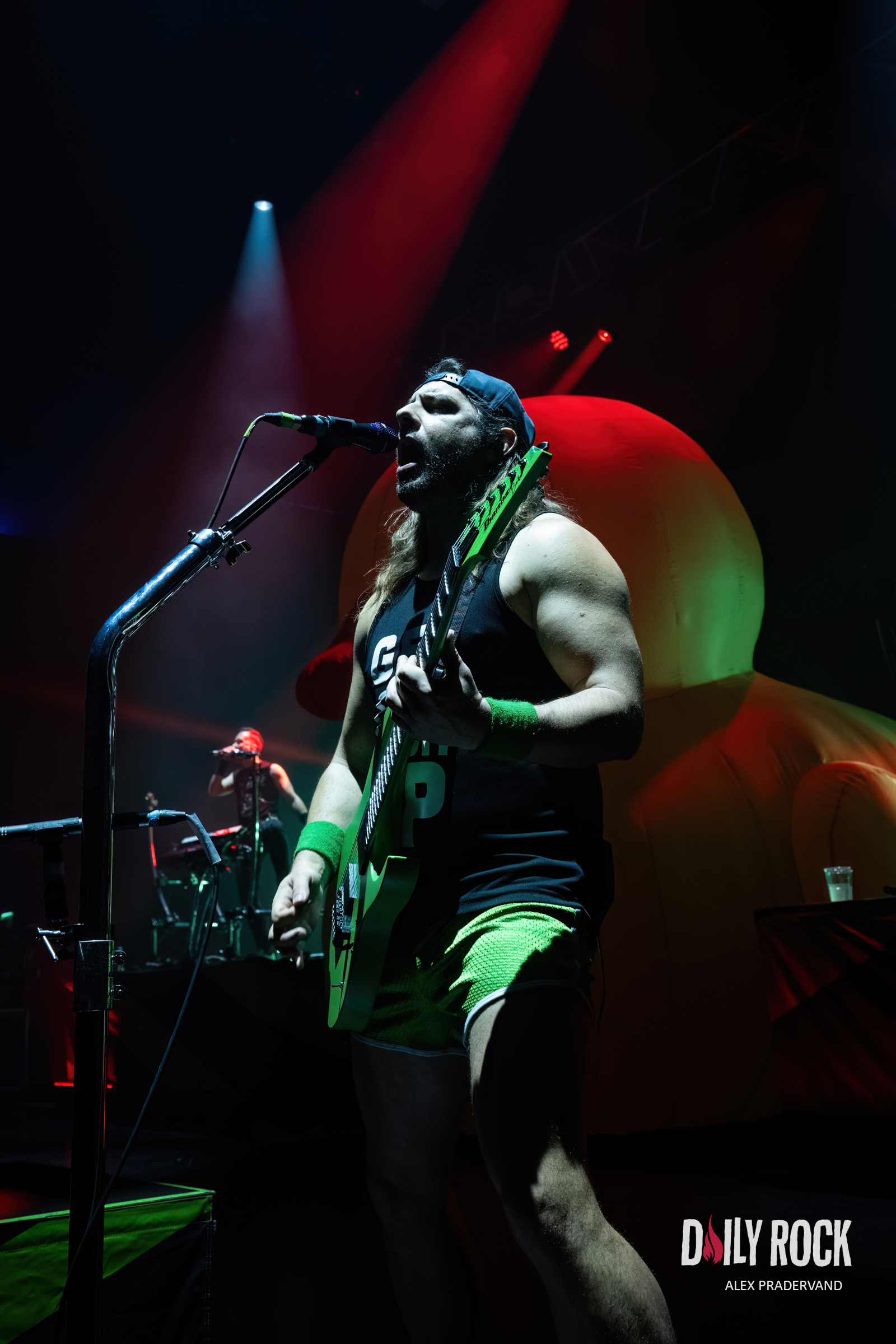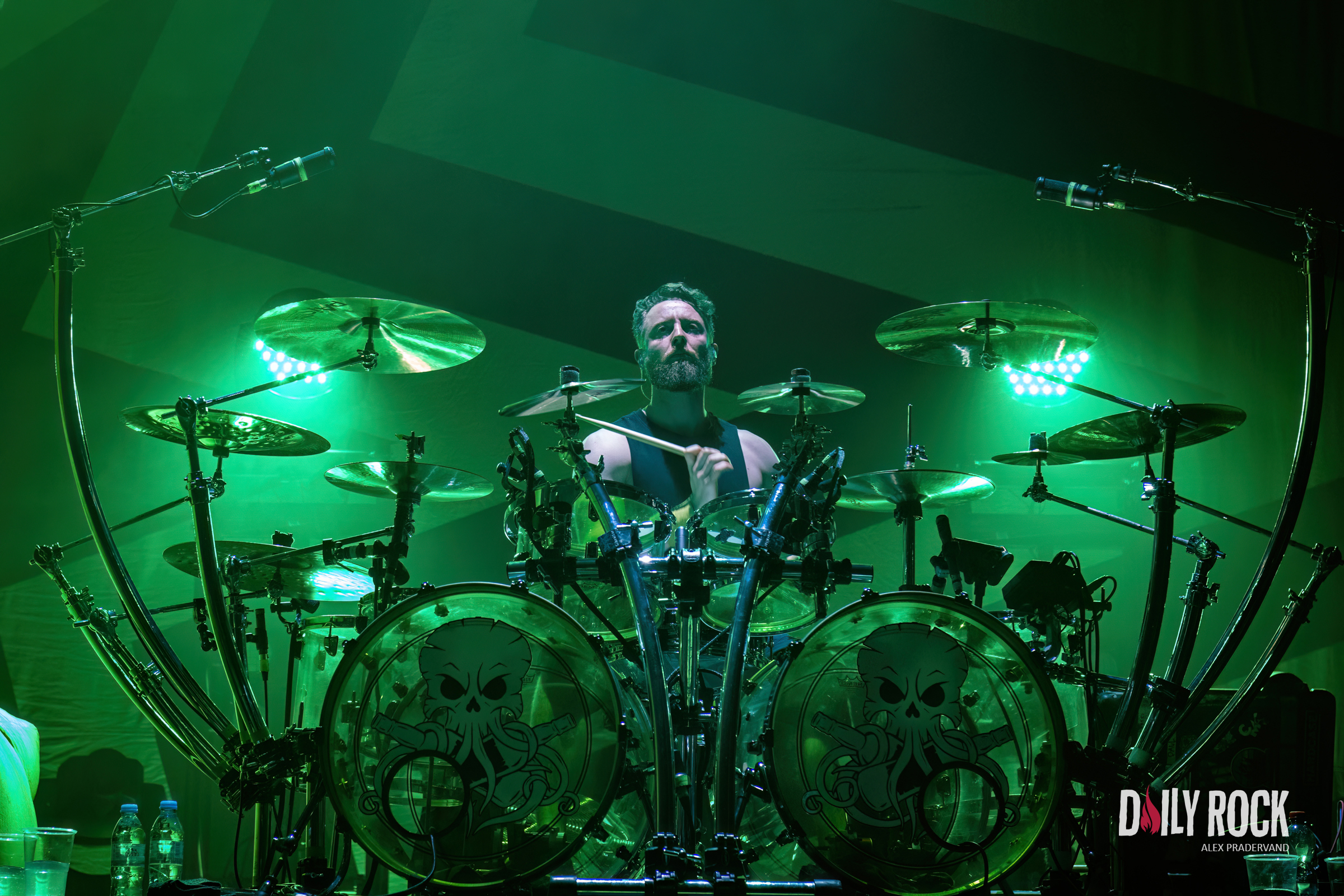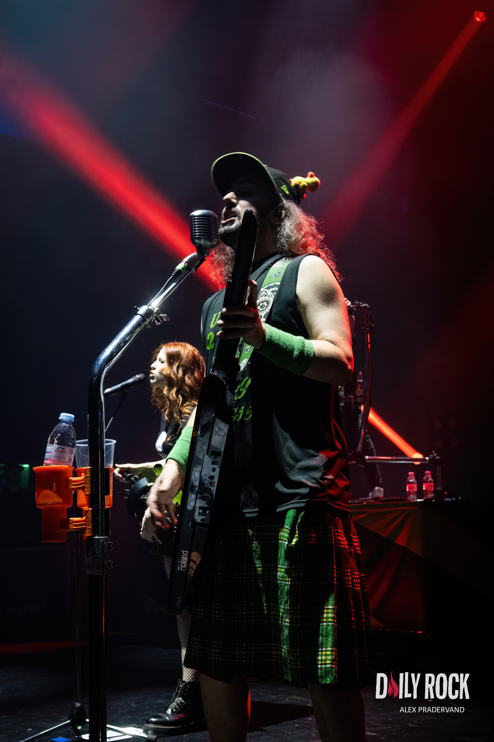 Ça y est, la salle est chaude, à point pour affronter le boss final de la soirée : les pirates écossais d’Alestorm. Quel festival international ! Et ouvert en termes de style, aussi, car nous sommes passés de la fantaisie à la mythologie viking, avec un détour par l’Histoire nordique et médiévale, pour se retrouver avec des pirates des temps modernes, sans filtre, qui détournent les Pokémon, brandissent un canard en plastique géant, et finissent leur concert avec un combat de catch aussi crédible que le second degré du groupe le permet. Une belle réussite en termes d’ambiance festive, qui ne surprendra personne, mais la présence de la désormais célèbre Patty Gurdy aux côtés du groupe sur scène est un facteur indéniable à la continuité de leur succès. Elle apporte une touche de bonne humeur, mais surtout d’authenticité avec sa vielle à roue. Le public chante avec joie tous les refrains, tout en faisant avancer les crowd-surfers jusqu’à la scène (une fan arrivera même sur la scène, mais n’aura pas eu le temps d’approcher Chris). Par contre, je n’envie pas les crowd-surfers, dont la plupart atterrit sur une sécurité qui, encore une fois, n’est pas préparée à un public de métalleux et ne prévient pas les chutes sur la barrière. Troisième preuve. A priori, pas d’incident, mais on n’était pas loin. Les festivités ont pu continuer jusqu’au dernier moment dans une ambiance bon enfant, et tout le monde a l’air ravi. Il faut dire que les chansons d’Alestorm sont tellement entraînantes, dur d’y résister !