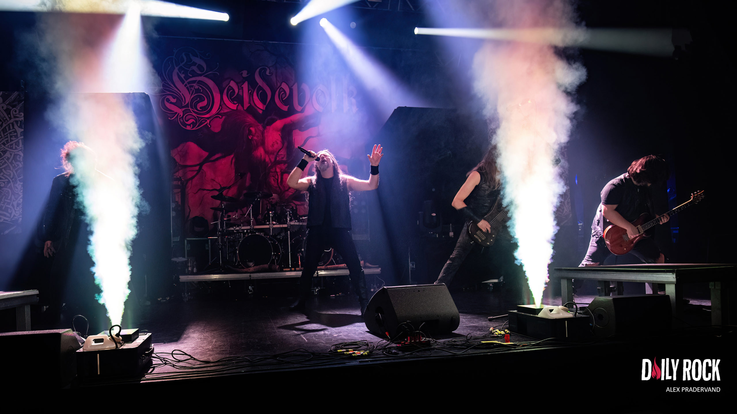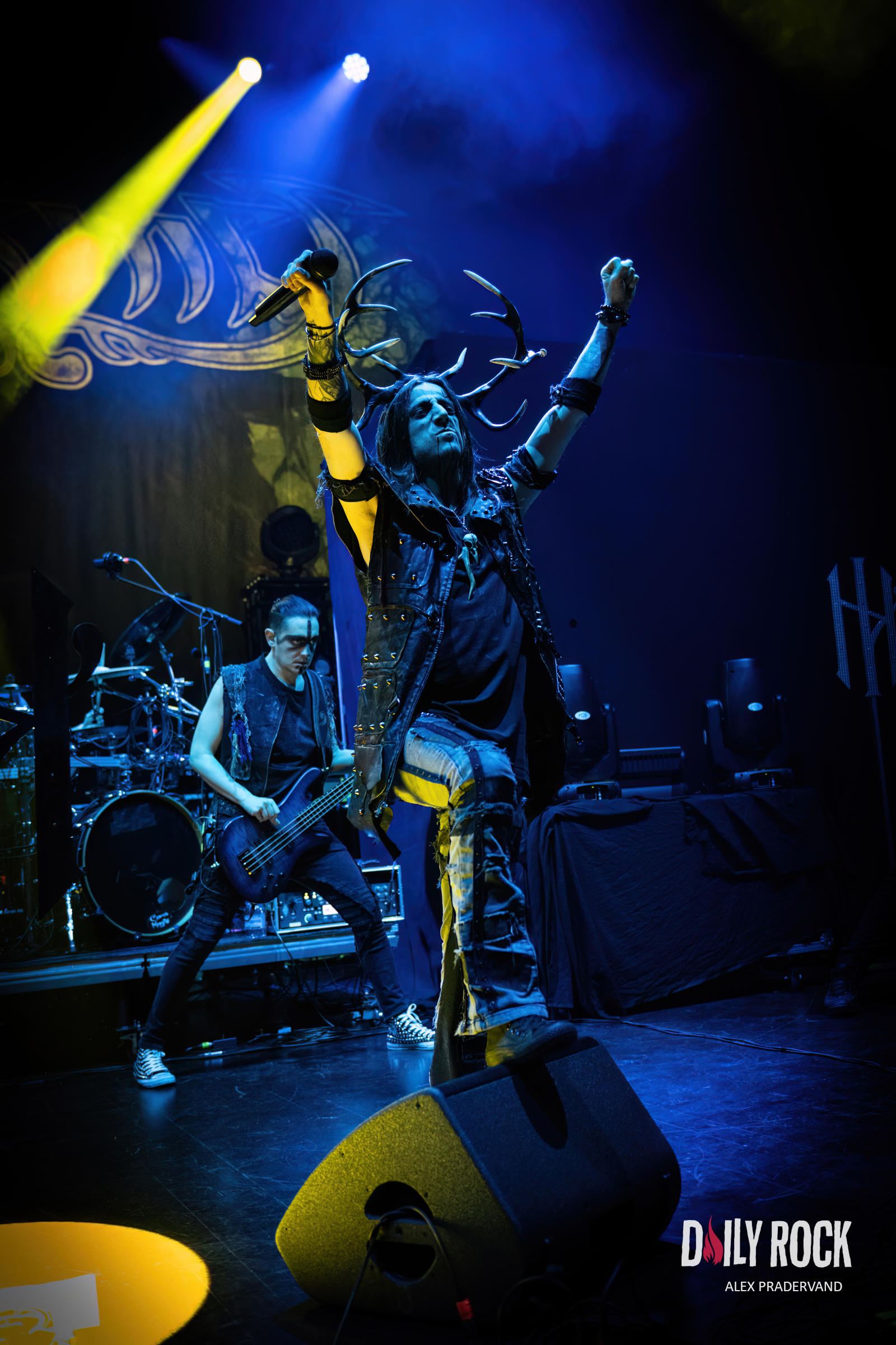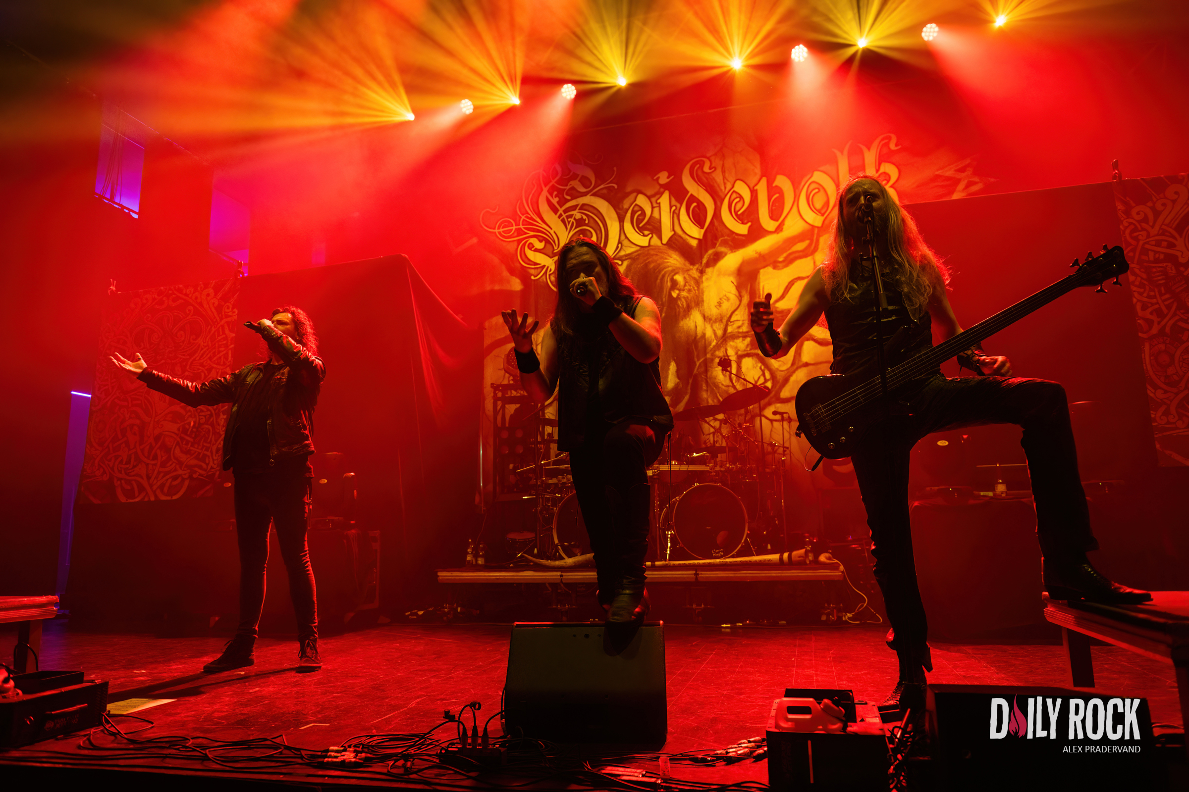 En deuxième affrontement de la soirée, les Néerlandais de Heidevolk apportent leur style hard rock à l’ancienne, sautant de part et d’autre de la scène, avec des vestes en cuir, jouant à la perfection de leur duo de voix très différentes (heavy et baryton). On remarque les premiers circle pits se former pas si timidement que ça, après quelques débuts de pogos qui, si tôt dans la soirée, font plaisir à voir. On accordera d’ailleurs des points bonus au groupe qui a fait l’effort de parler un français très convenable, et a surtout fini sur son morceau qui est un incontournable du genre, pour mettre une ambiance de feu : Vulgaris Magistralis (autrement connu sous le nom « ahou, ahou, ahou ! »).
