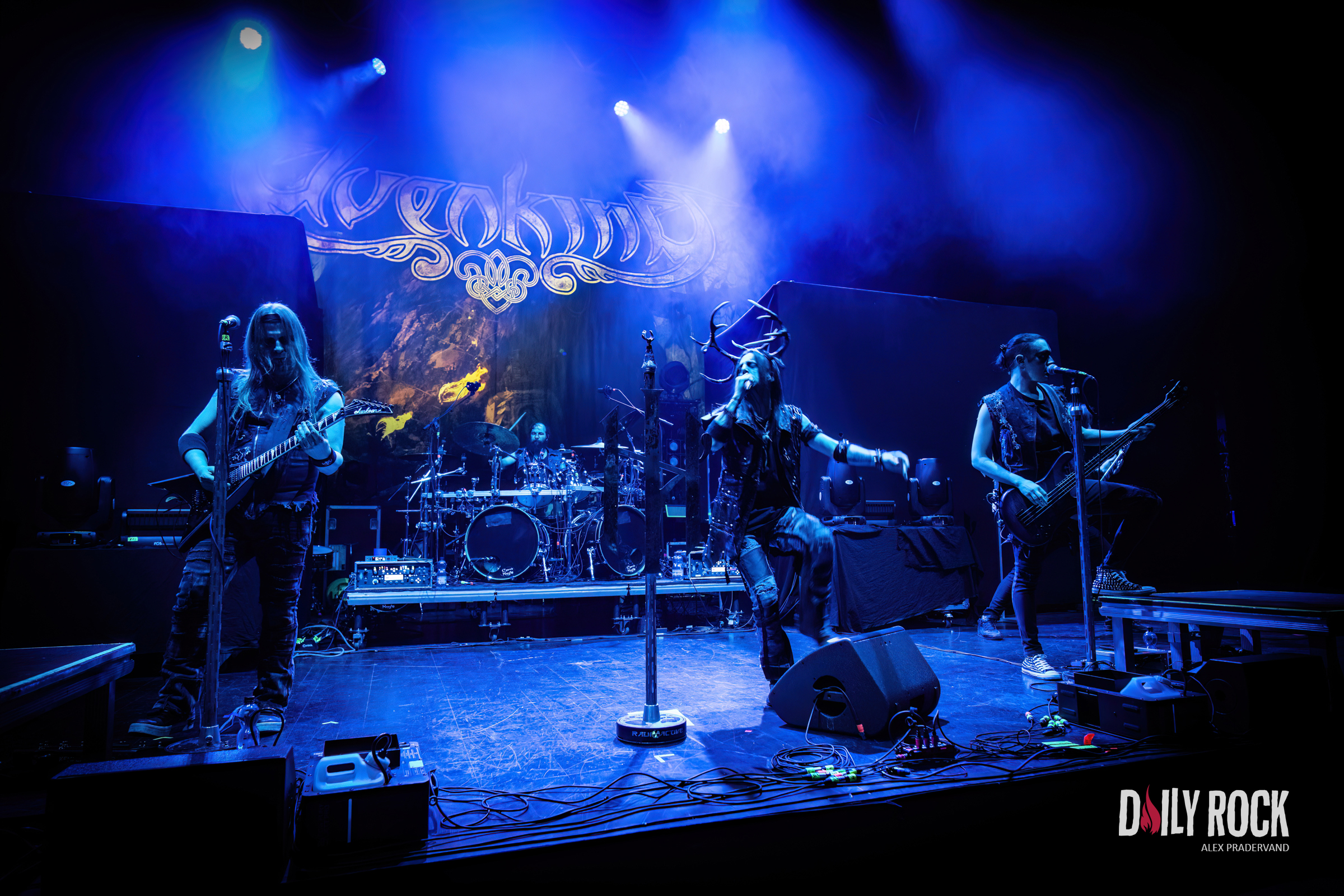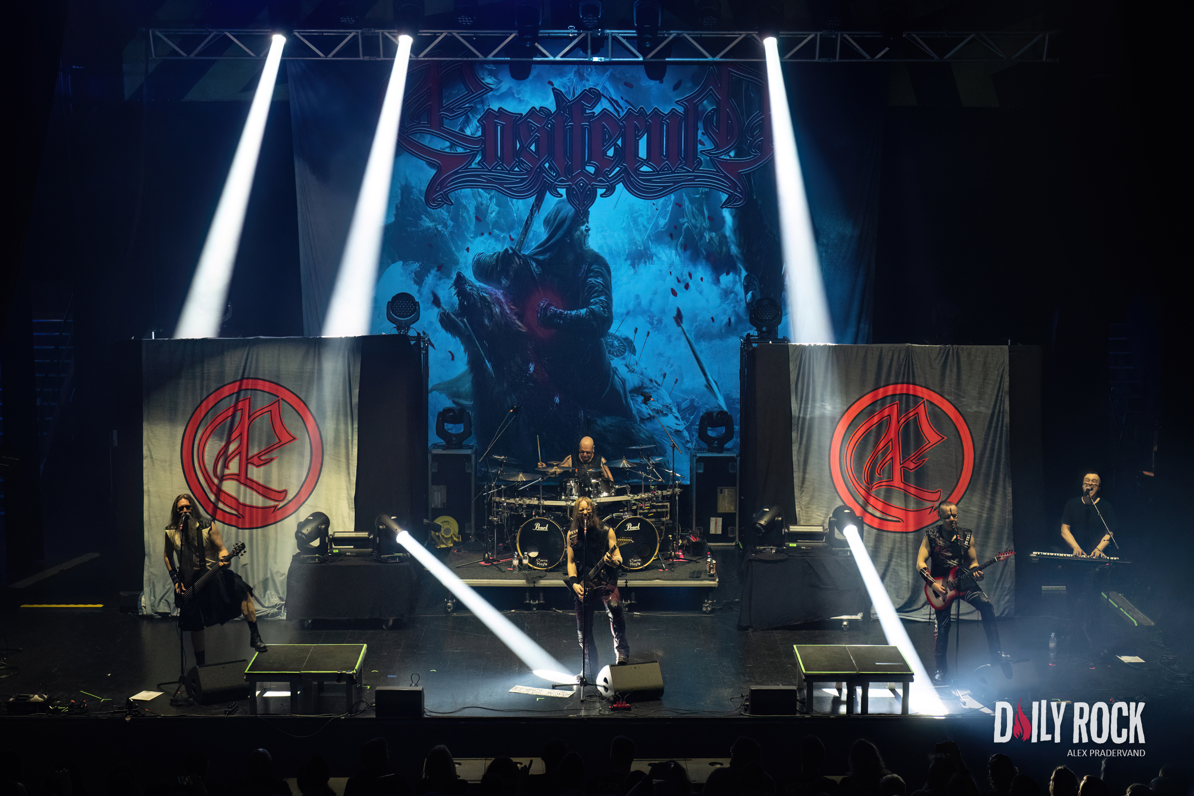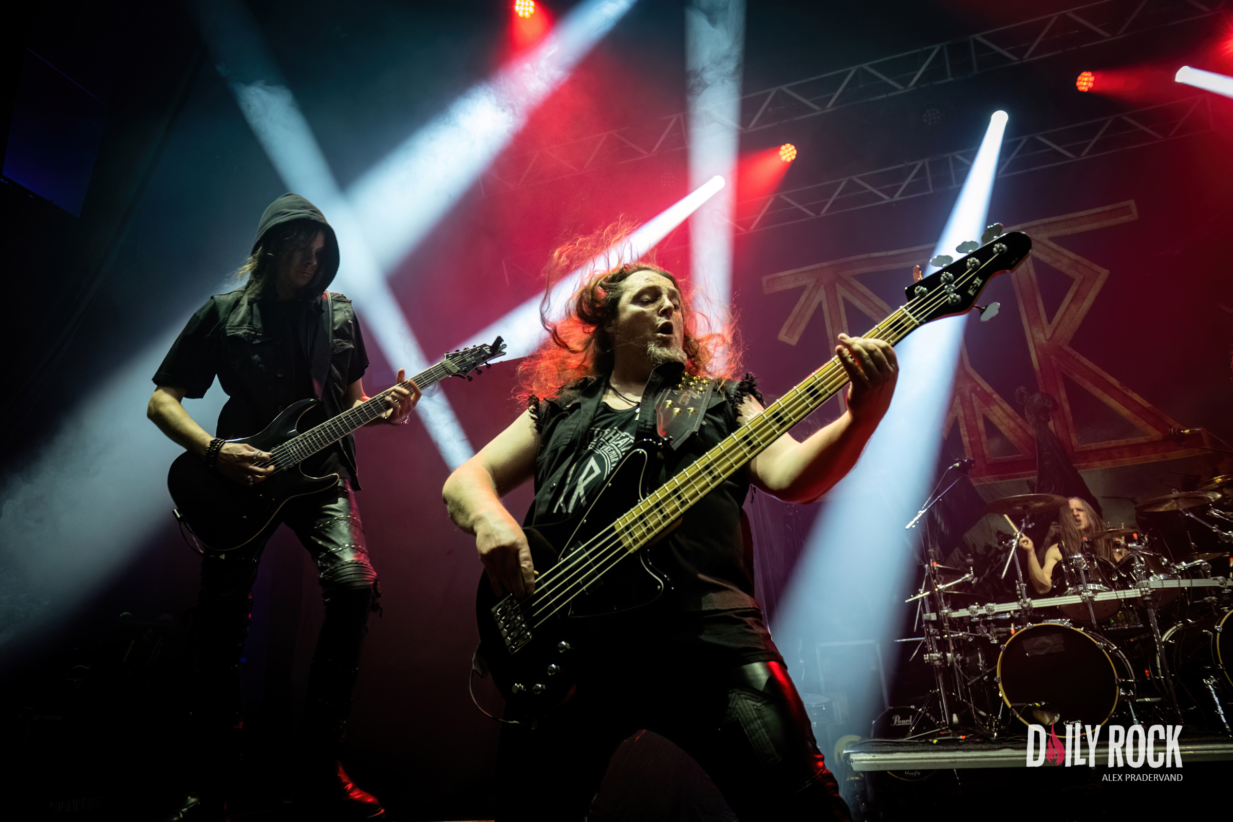 Celles et ceux qui n’avaient pas pensé à prendre leur épée et leur cape en fourrure au bureau devront faire la soirée sans, comme moi, mais ça n’empêche pas d’apprécier Elvenking, le premier groupe, du power metal italien s’inspirant de la fantaisie (elfes, magie, druides…). Ce qui empêche d’apprécier Elvenking, par contre, c’est un problème technique pour un demi-morceau sans son – ce qui a permis de nous prouver, au moins, que le groupe ne joue pas en playback, si jamais on avait un doute. Ils sont très compétents, carrés, charismatiques, et jouent avec le public avec une belle aisance. On ressent leur bientôt 30 ans de carrière. Le public est certes parsemé mais a du répondant, ce qui annonce du bon pour la suite.