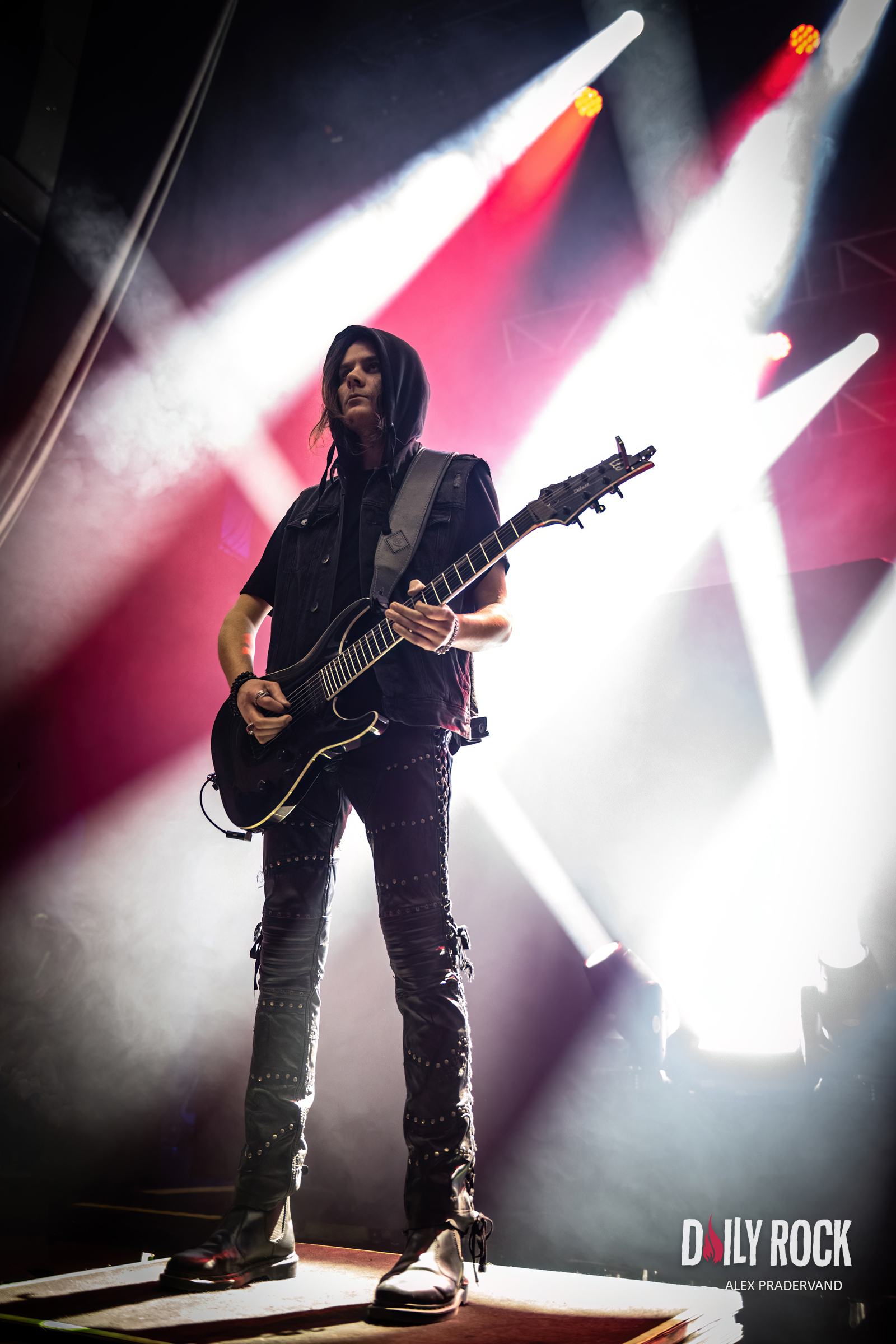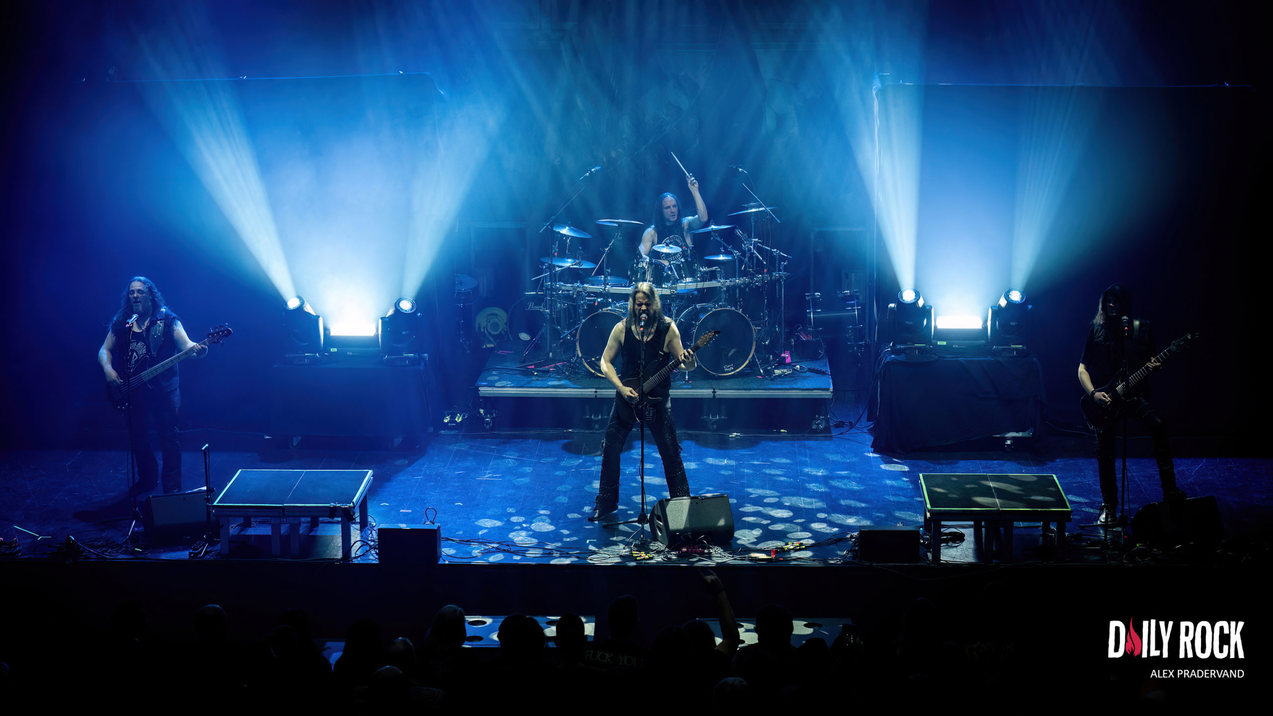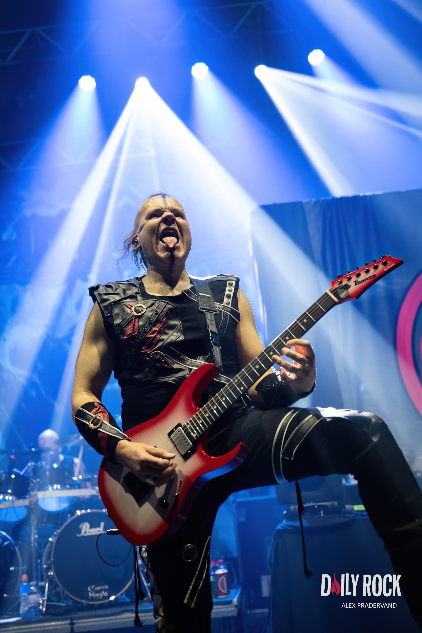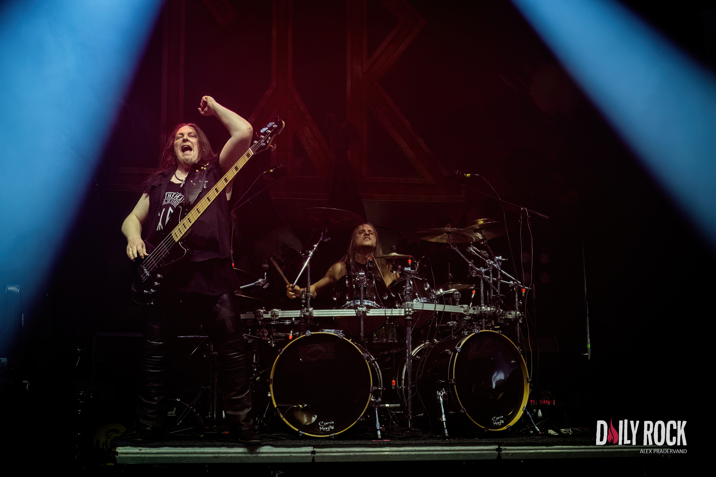 Celles et ceux qui n’avaient pas pensé à prendre leur épée et leur cape en fourrure au bureau devront faire la soirée sans, comme moi, mais ça n’empêche pas d’apprécier Elvenking, le premier groupe, du power metal italien s’inspirant de la fantaisie (elfes, magie, druides…). Ce qui empêche d’apprécier Elvenking, par contre, c’est un problème technique pour un demi-morceau sans son – ce qui a permis de nous prouver, au moins, que le groupe ne joue pas en playback, si jamais on avait un doute. Ils sont très compétents, carrés, charismatiques, et jouent avec le public avec une belle aisance. On ressent leur bientôt 30 ans de carrière. Le public est certes parsemé mais a du répondant, ce qui annonce du bon pour la suite.