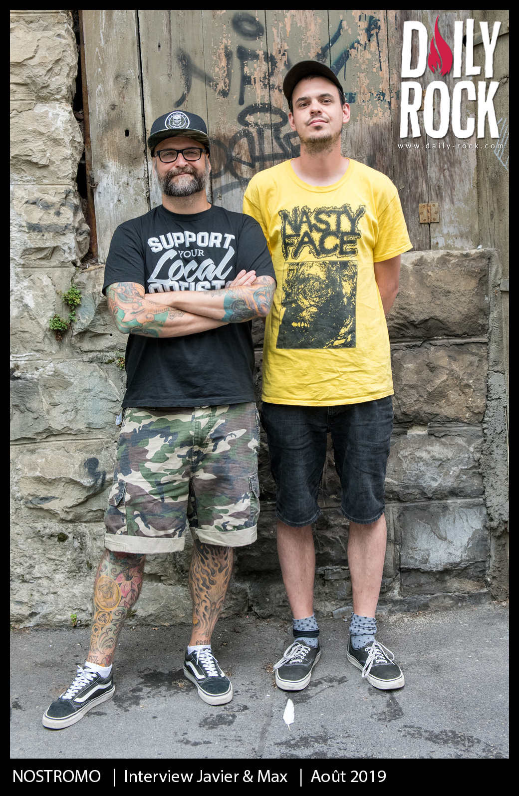 M : Début 2018 pour être exact. Cela fait une quinzaine d’années que je fais de la batterie J’ai vraiment commencé la batterie à l’âge de 15 ans en étant très fan de metal, de grind, de hardcore. J’ai toujours eu plusieurs projets, encore actuellement de différents styles, notamment Convulsif avec Loïc Grobéty qui jouait dans Enigmatik. A l’époque, j’avais un groupe, mon tout premier groupe de grind, Daïgoro avec Loïc justement et j’ai rencontré Jérôme qui nous avait enregistré dans son home studio. J’ai ensuite collaboré avec lui pour Mumakil, son groupe de grindcore. Fin 2017, je reçois un coup de fil un dimanche soir de Jérôme qui me demande sans détour si je serais intéressé à rejoindre Nostromo. J’étais vraiment tout fou car j’ai toujours été fan de Nostromo. Je lui ai que c’était un sacré challenge et qu’il fallait que je réfléchisse mais pour moi c’était clair que c’était oui. On a commencé à répéter en mars 2018 avec un premier concert en avril 2018.