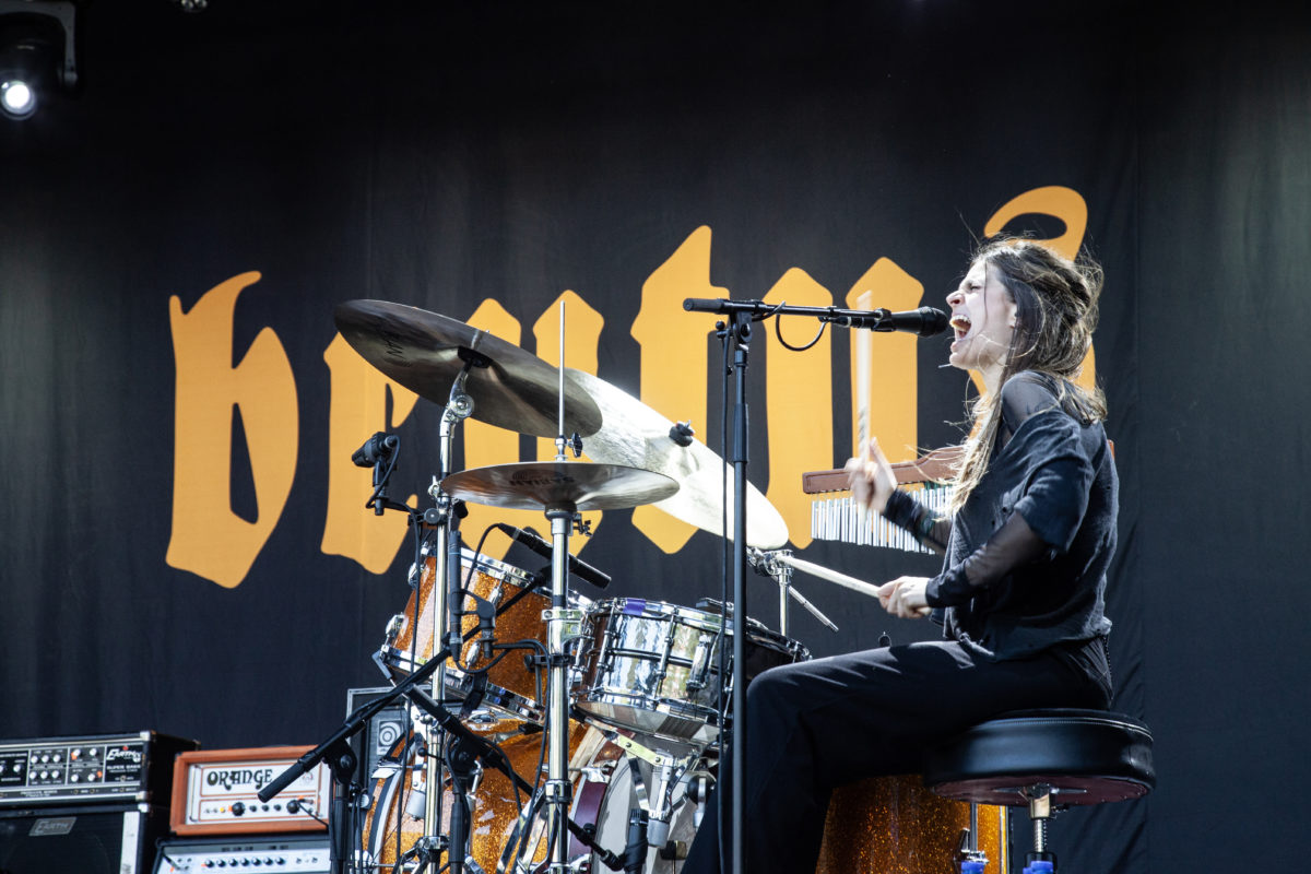 Bref revenons à notre imparable découverte. Je veux parler du groupe post-metal (avec un petit côté math-rock) belge Brutus emmené par une batteuse/chanteuse à longue chevelure ondulant dans le flux d’air du ventilateur qui cognait comme une sourde sur ces fûts à la Lars Ulrich de Metallica. Mais attention interdiction de la traiter de Metaliquette, sinon c’est coup de baguette dans la tronche sans sommation aussi sûr que César s’est pris son coup de glaive dans les gencives.
