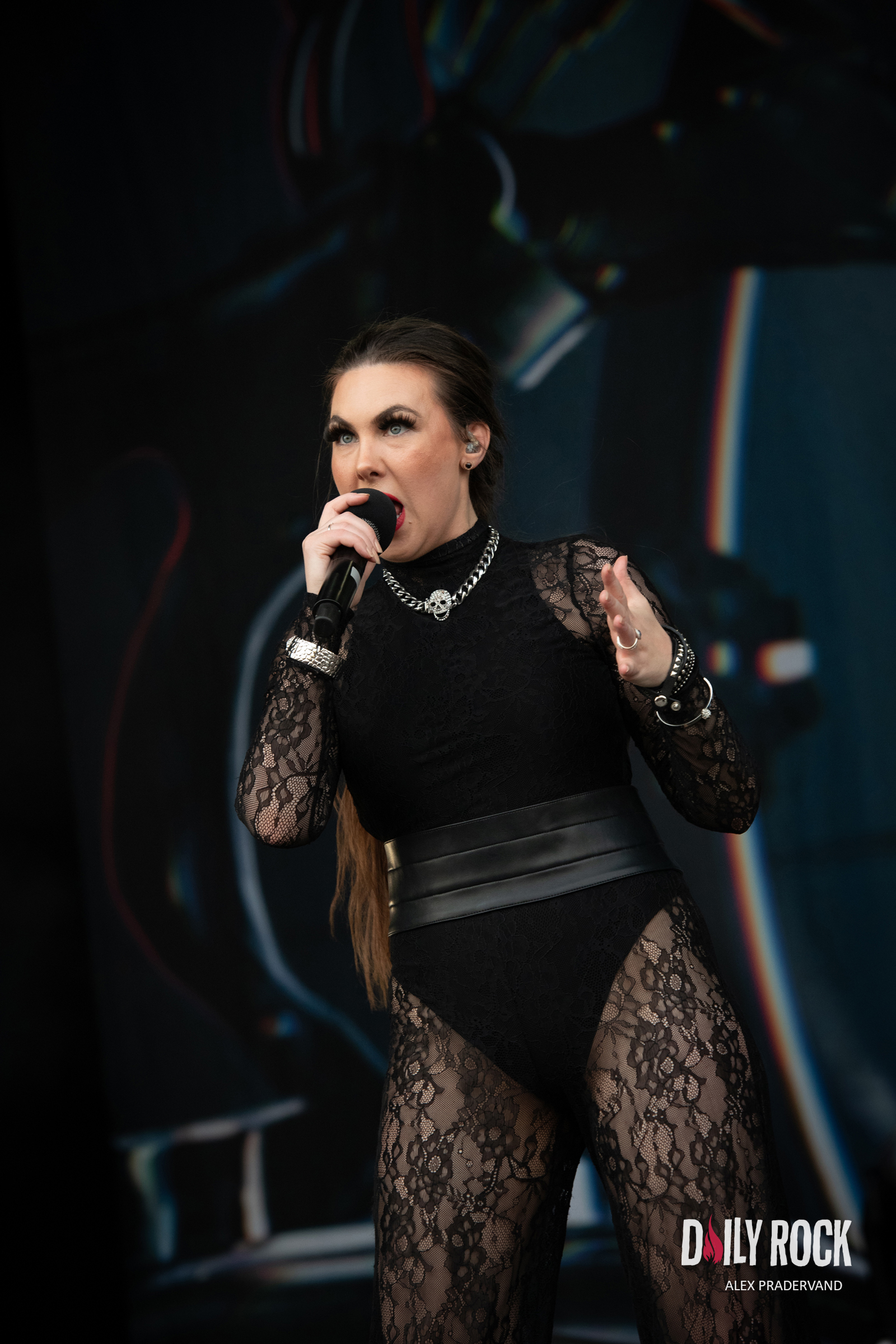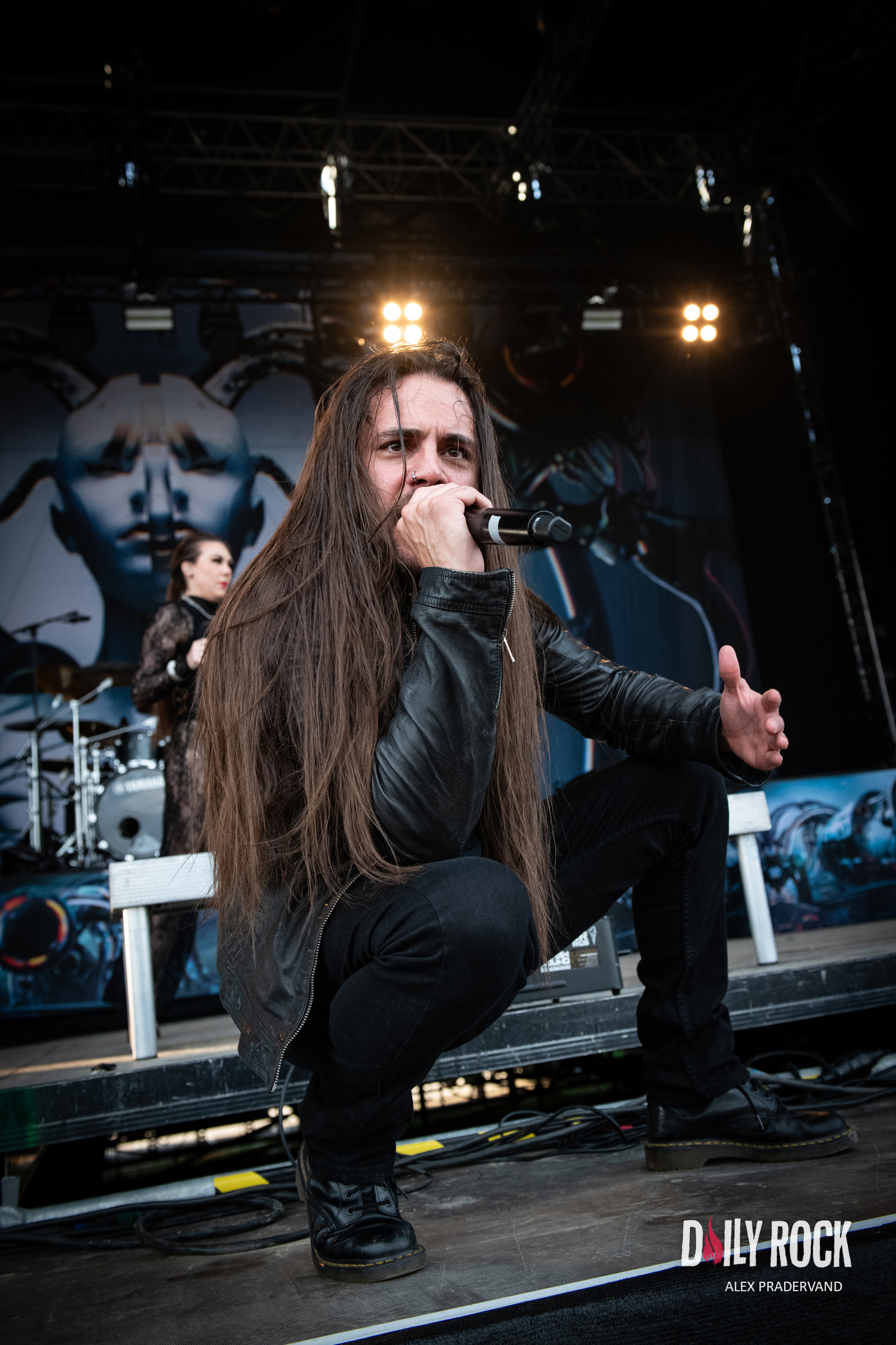 Être en festival, c’est aussi bouffer même quand on n’a pas faim. 16h30 pour des Ribs…Oui Madame et pourquoi pas d’abord ! C’est un goûter, comme les enfants ! Cette diététique sustentation à son terme, c’est Insomnium qui fait office de dessert. Les Finlandais officient dans un death metal de haute volée qu’il nous distille depuis 1997 et neuf albums au compteur. On croise de nombreux t-shirts à l’effigie du groupe, ce qui prouve le succès du combo. Mais il faut partir en milieu de set pour une bonne raison. Ma collègue Hiro et moi sommes conviés à une interview avec Amorphis. Quitter des Finlandais sur scène pour un Finlandais backstage…. Une entrevue avec Tomi Koivusaari qui s’est voulue conviviale et drôle. On le remercie donc pour sa bonhomie et son humour. Amaranthe. Connaissez-vous plus clivant comme groupe ? Aucune zone grise le concernant. On l’aime ou alors c’est diamétralement l’inverse. Je crois que cette étiquette n’est pas dans les manuels du petit métalleux, mais moi j’appelle cela du ‘ Dance floor Metal’. La structure des morceaux demeure toujours identique ! Un couplet voix clean, un couplet voix féminine puis un couplet screams. Ensuite refrain tous ensemble, bridge et ensuite fin. Leur musique est plutôt festive, mais somme toute un peu kitch. On passe un bon moment tout en se disant que leurs titres seraient parfaits aux prochains cours de spinning.