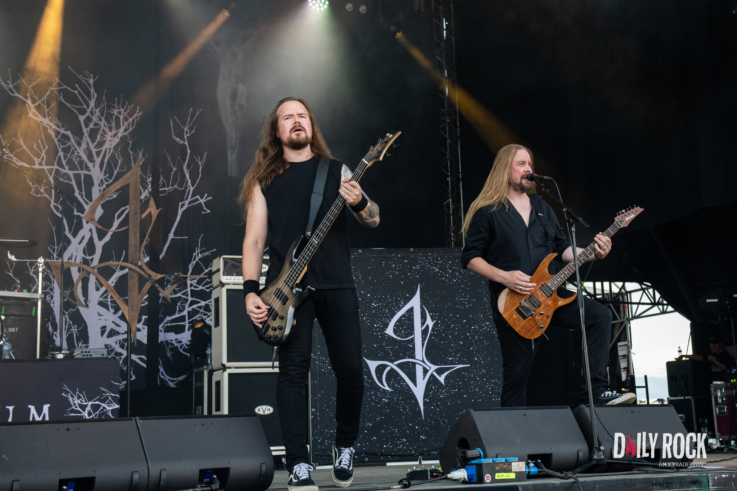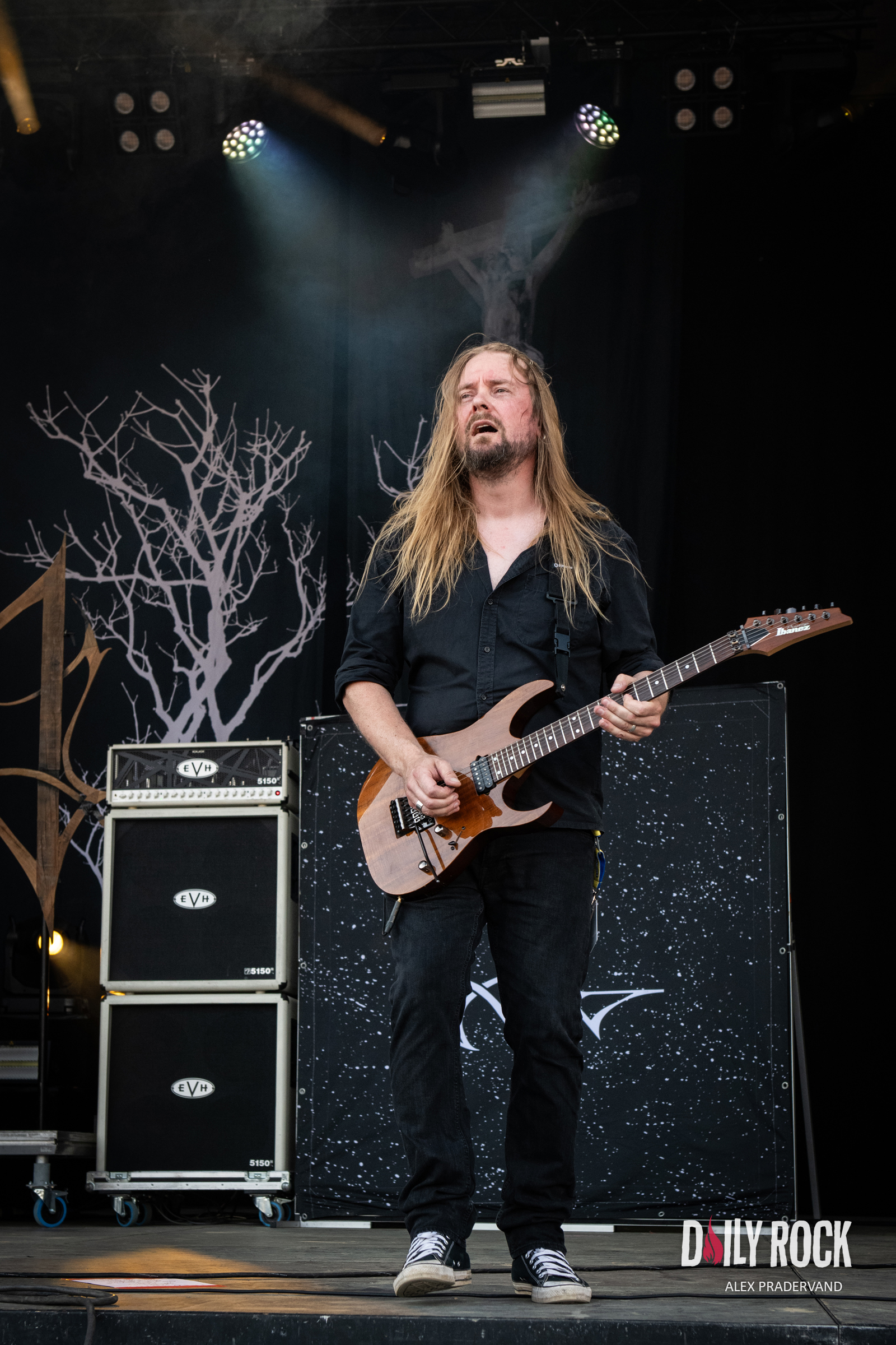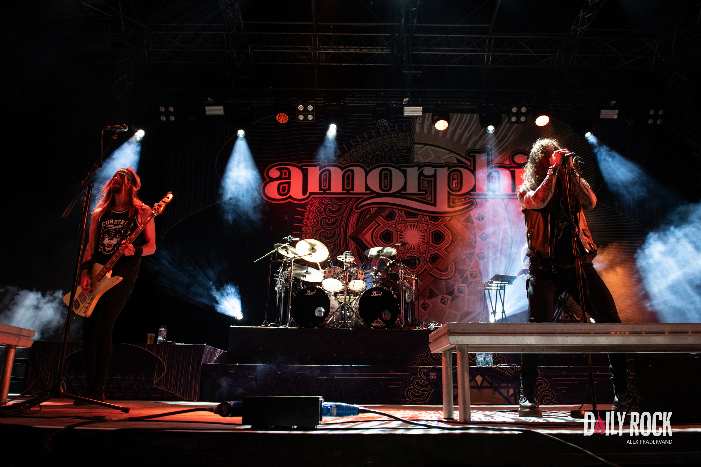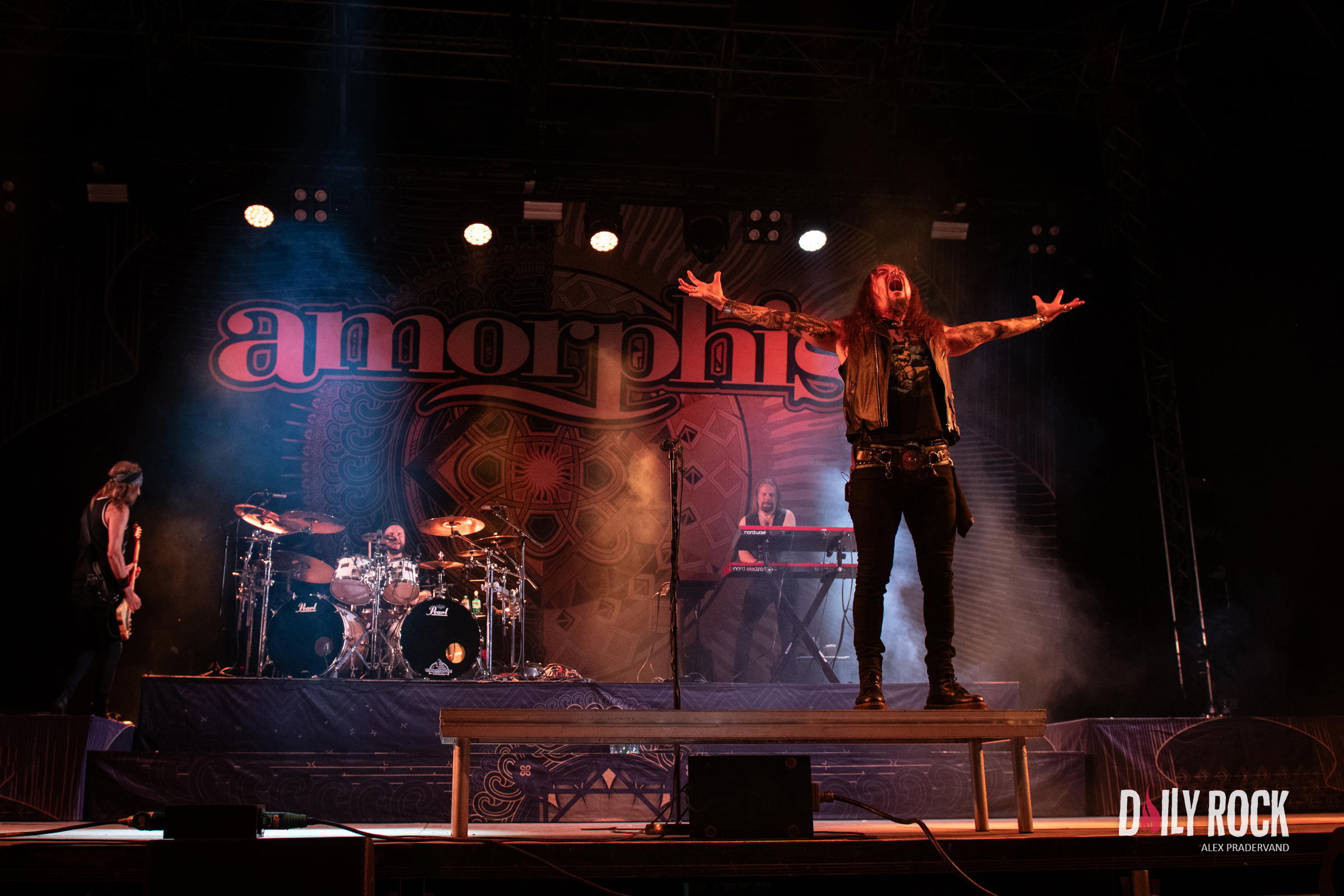 Peut-être qu’Amorphis a pris dans ses valises un peu d’humidité de l’un de leurs mille lacs, car la pluie fait son apparition. L’avant-toit de la régie m’est salutaire et fait son job. Ne plus bouger d’où je suis, telle sera ma devise. Le concert des Finlandais se voudra mélodique, progressif, atmosphérique.
