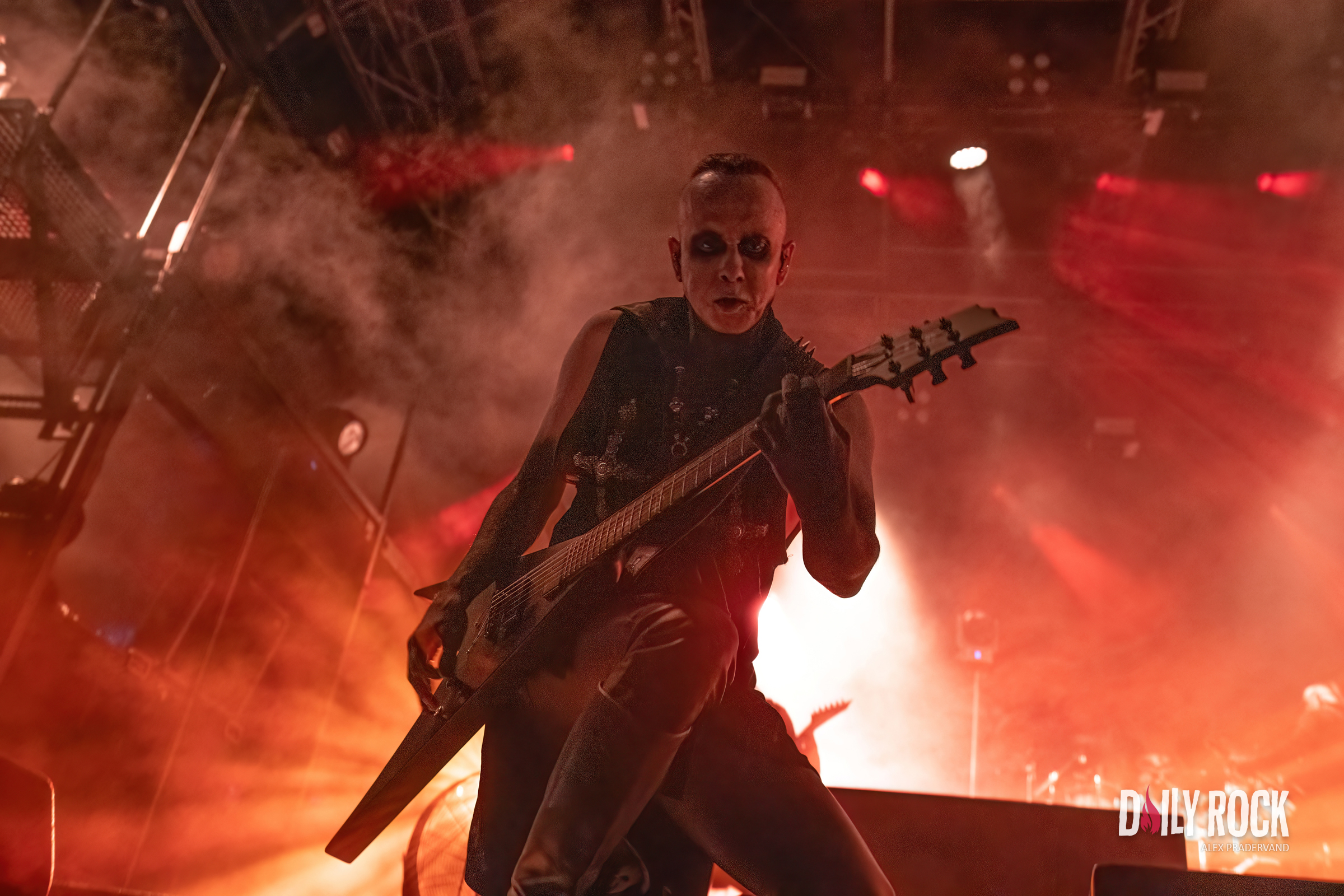 Les Polonais de Behemoth en tête d’affiche ? Quelle merveilleuse idée de l’organisation ! Avec le combo de Gdansk c’est l’assurance d’un show grandiose. Début des hostilités au moyen d’un rideau blanc et d’un jeu d’ombres et de lumières. Puis les voilà qui apparaissent ! Superbe son, des musiciens ultra précis et un show millimétré. Le tout, pour notre plus grand plaisir ! Tout est cohérent et d’une fluidité sans pareil. La complexité des morceaux et de leurs arrangements prend encore plus son sens en live. Tout cet ensemble magnifié par une notion de la mise en scène qui fait office de leçon, ni plus ni moins. Rincé par 6 semaines de tournée, le groupe ne lâche rien. D’ailleurs, il semble même s’agacer du manque d’entrain du public cudrefinois. Behemoth nous lessive, nous ‘Broye’ et on en redemande ! Bravo et merci à Rock The Lakes de les avoir programmés. Si pointue soit-elle, cette tête d’affiche a su rassembler et probablement plaire aux non-avertis.