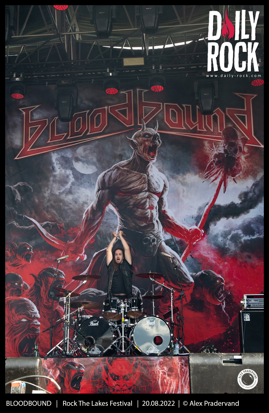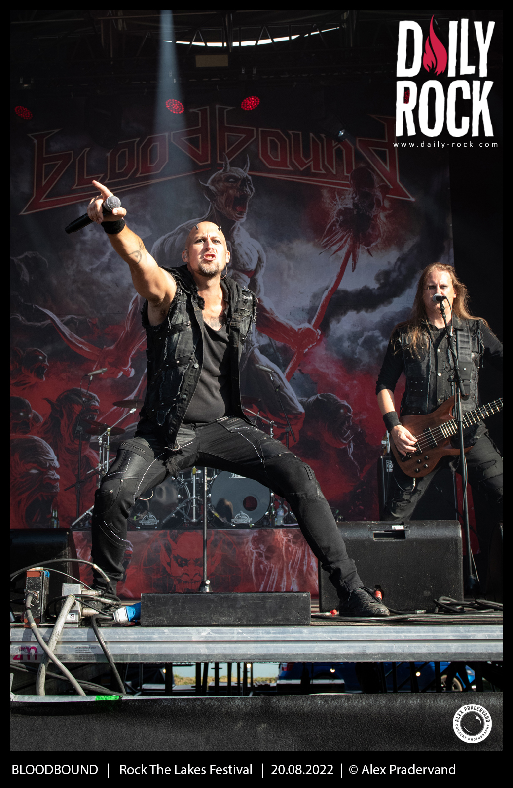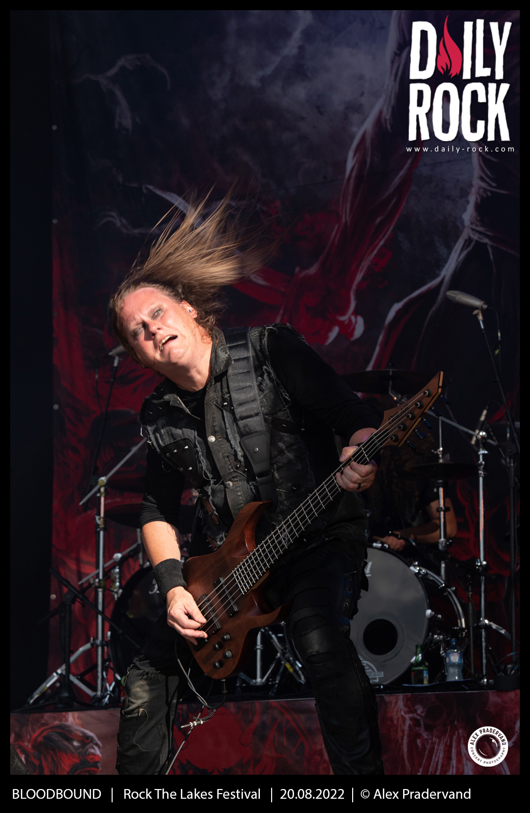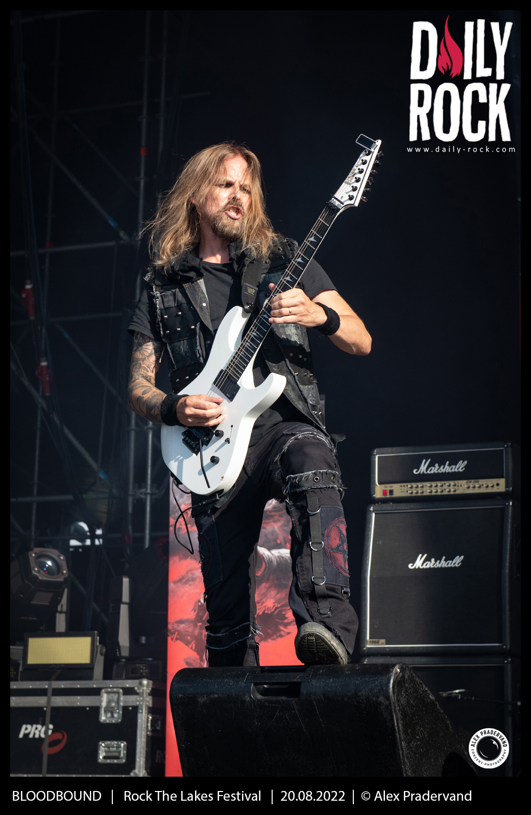 Bloodbound, c’est le seule groupe à l’affiche de cette journée dont je n’ai jamais entendu la musique auparavant. Un immense backdrop est posé derrière la scène. Tellement grand qu’à côté celui de D-Fender ressemble à un mouchoir. Le batteur attaque d’entrée et c’est parti pour une heure de power metal à la sauce suédoise. Comme le rappellera le chanteur, eux cela leur fait plutôt plaisir lorsqu’ils sont confondus avec des suisses quand ils voyagent, surtout qu’au fond on est tous pareils, des metalheads ! Le son est super propre et cela envoie bien. La foule reprendre In The Name Of Metal et personne ne feint son plaisir, d’autant plus que le soleil est revenu pour s’installer durablement.
