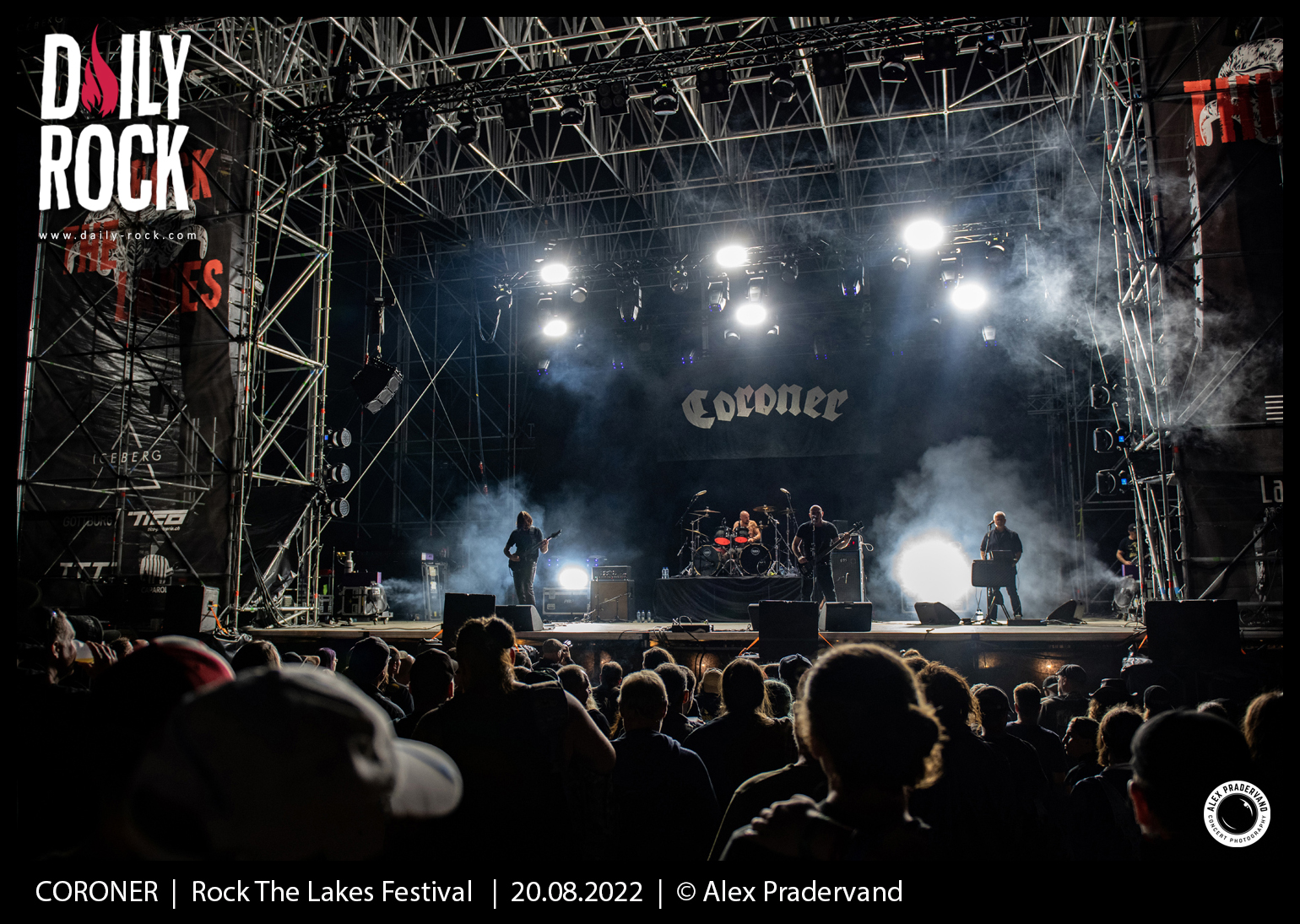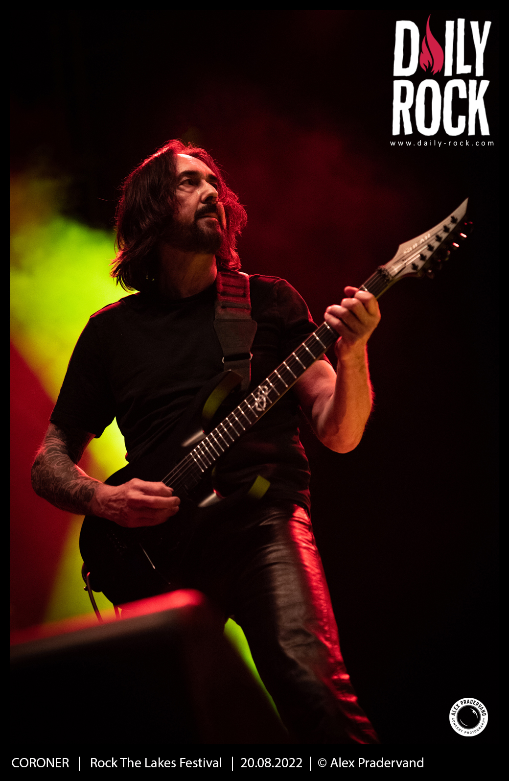 Le groupe que j’attends le plus c’est Coroner. La dernière fois que je les ai vus, c’était assez iréél. C’était dans le cadre du Festival Label Suisse et ils avaient joué le dimanche en début de soirée sur la scène principale en plein air. 4 ans plus tard, ce sont les mêmes musiciens pour un set qui a mis un peu de temps à tourner à plein régime mais qui du coup est monté en intensité comme rarement avec un beau voyage dans toute leur discographie. Tommy Vetterli est incroyable à regarder jouer même si le tout est un peu statique. Il faut dire aussi que c’est brut. A part un backdrop pour chaque groupe, il n’y a aucun artifice pyrotechnique ou visuel ce soir, juste de la musique live (ce qui n’est peut être pas plus mal en fin de compte).