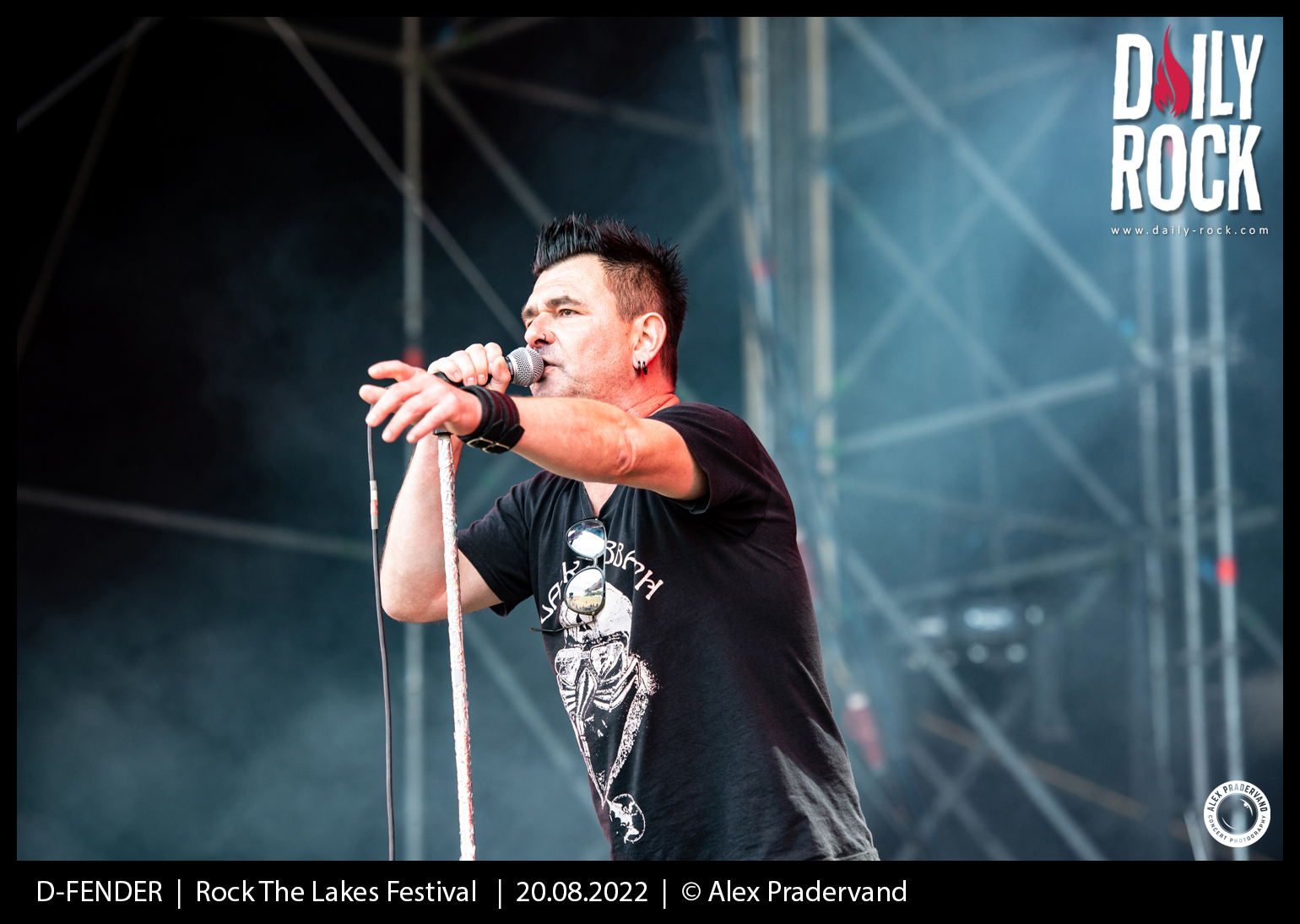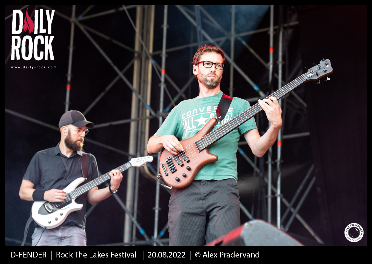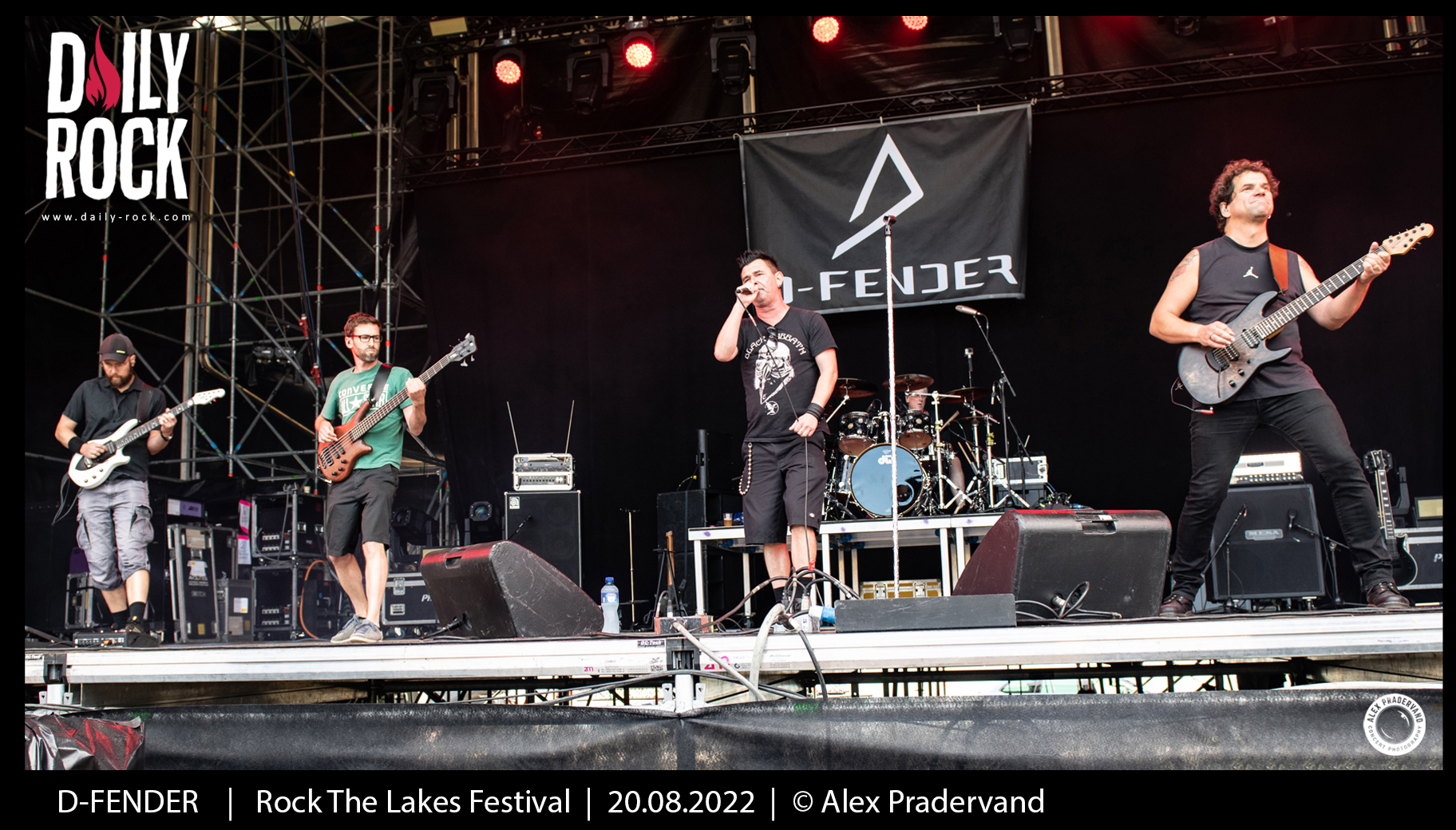 C’était d’abord D-Fender avec notre ami Duja au chant pour ouvrir la journée alors qu’il n’avait pas encore sonné 14 heures. Sous le soleil pour commencer avec un set bien sympa qui décolle les tympas comme il se doit. Un peu plus de 300 personnes sont déjà devant la scène pour cette première prestation qui se conclura sur un hommage revendiqué au metal des années 90 type Faith No More ou encore Clawfinger.