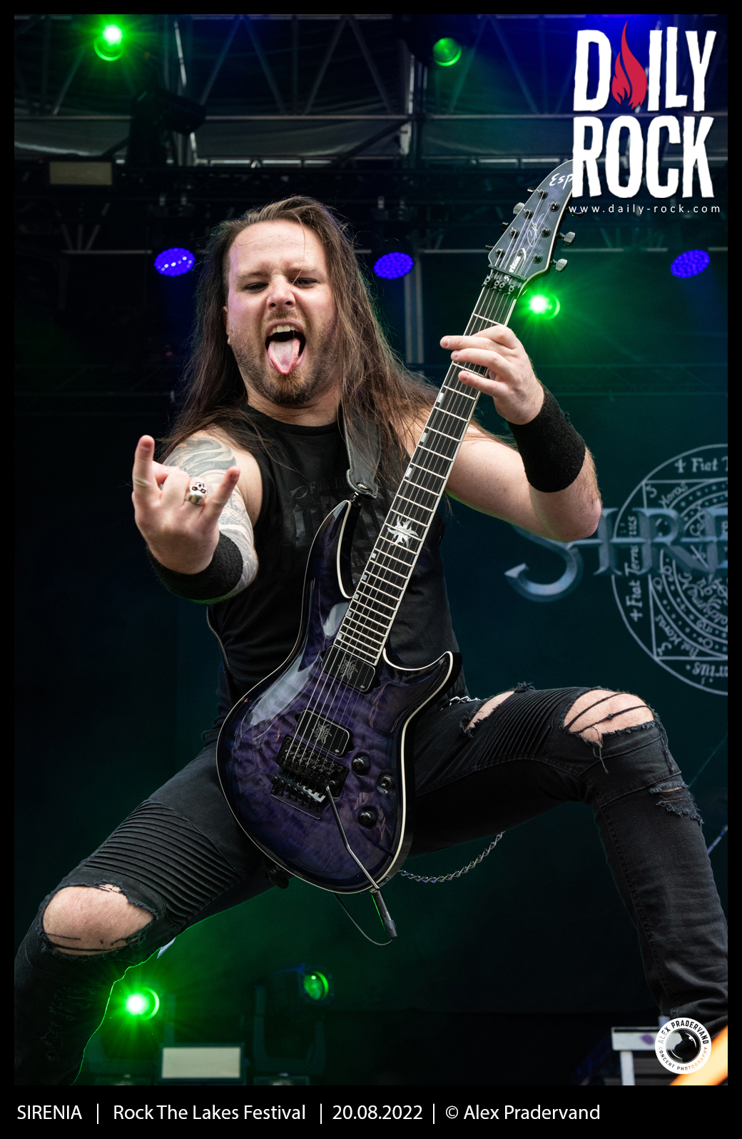 Un groupe que je suis depuis longtemps, mais que j’ai un peu perdu de vue suite à de nombreux changements de line-up, c’est Sirenia, que je découvre en live pour la première fois avec sa chanteuse française, très à l’aise sur scène et avec une voix splendide. Le groupe en mets plein la vue aux photographes dans le pit, en particulier le guitariste Nils. Pas de chance, une grosse averse tombe finalement en plein concert. Pratiquement tout le monde est contraint de trouver un abri, mais la musique est suffisament bonne pour qu’une partie du public reste devant la scène. Nous avons droit à une étonnante reprise de Desireless avec Voyage Voyage, qui donne plutôt bien. Voilà un concert qui me donne envie de replonger dans le répertoire de Sirenia.