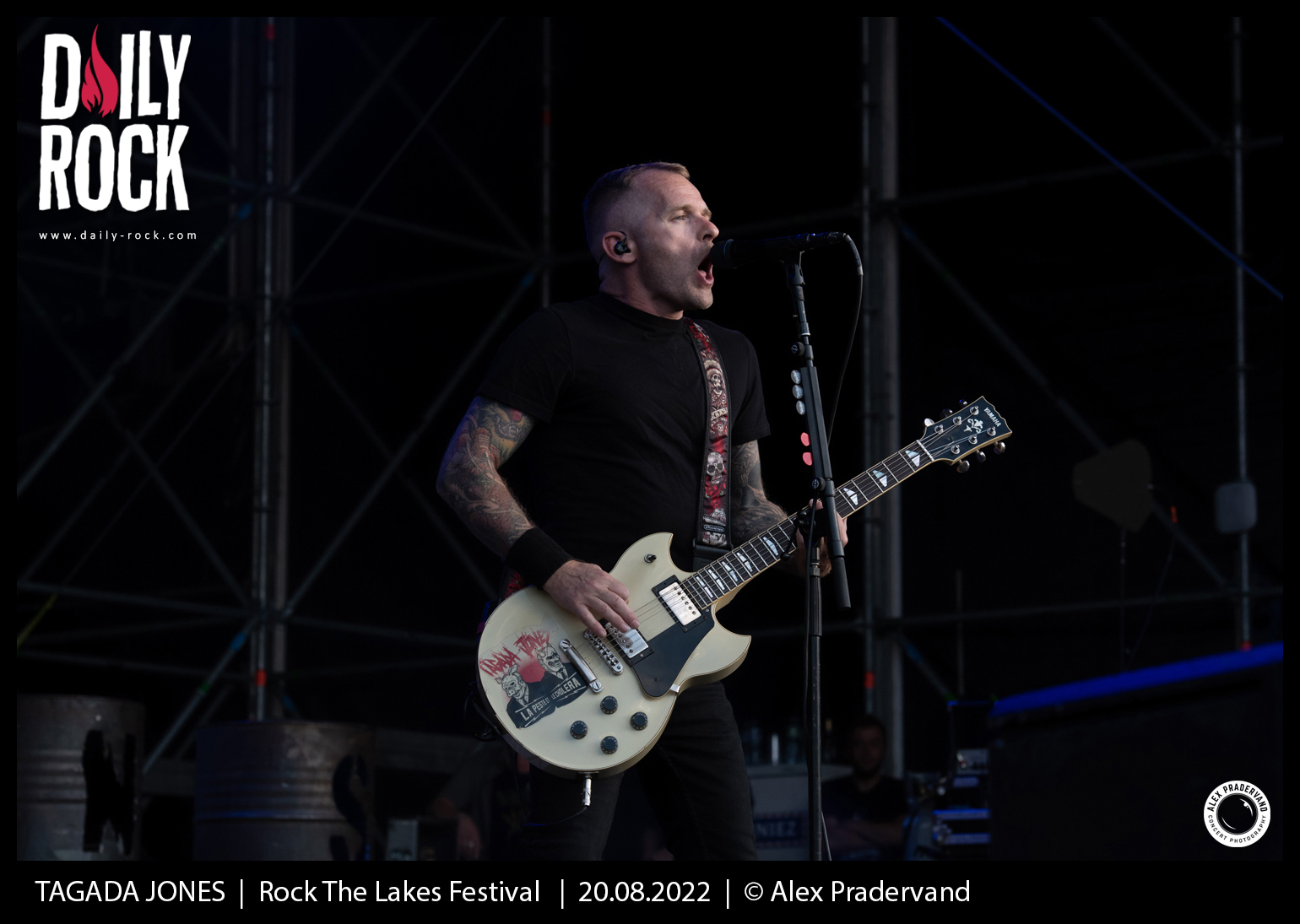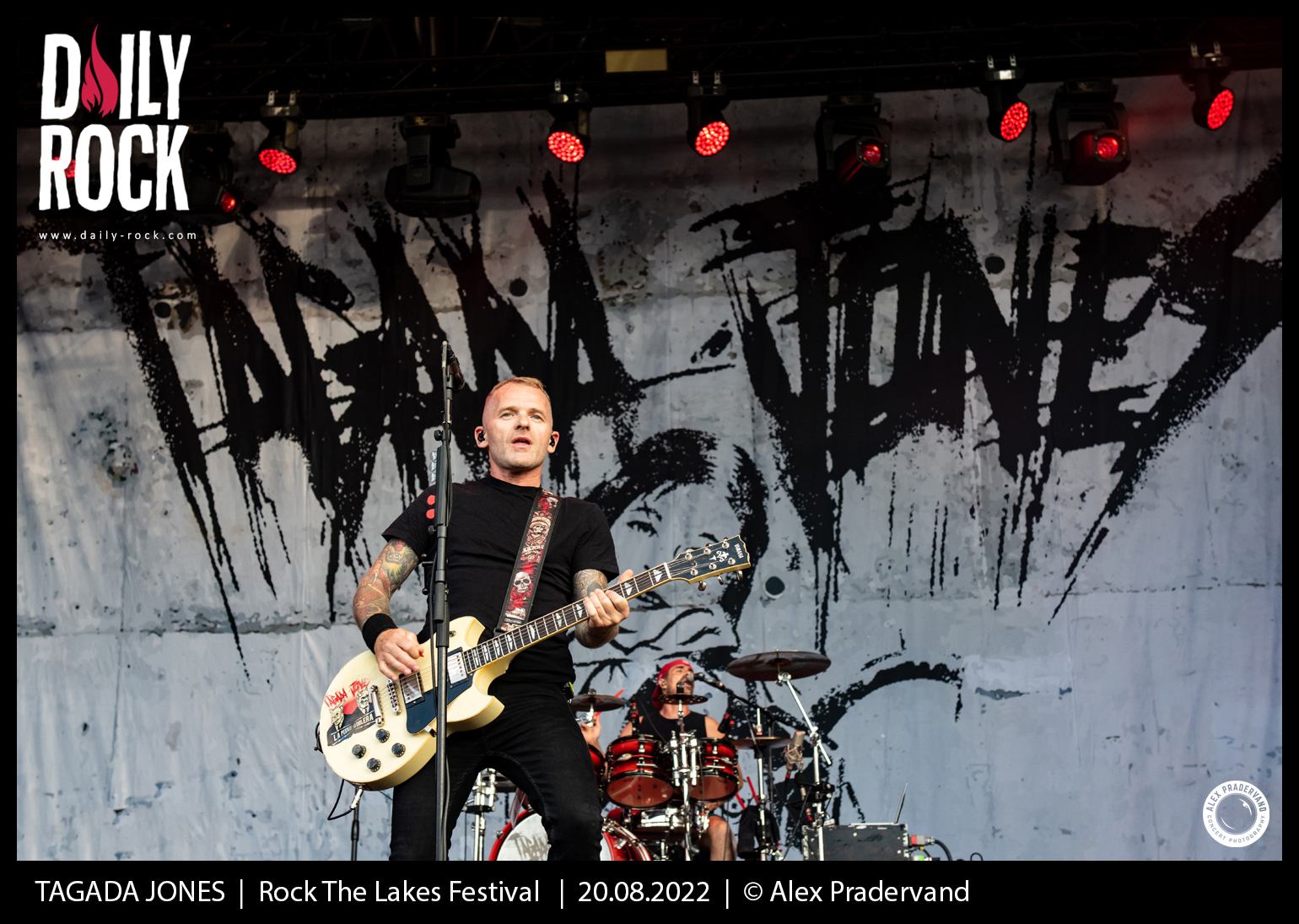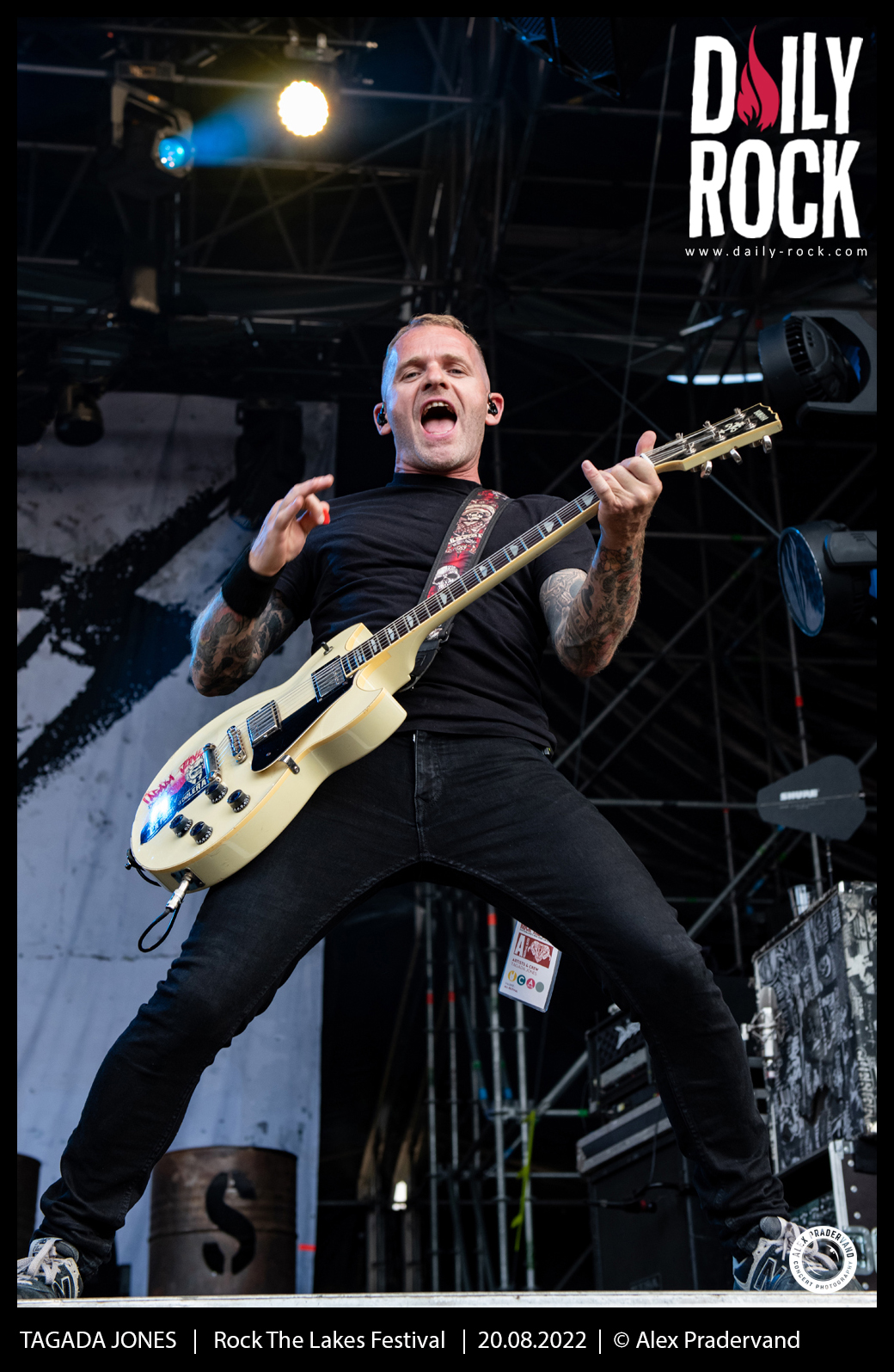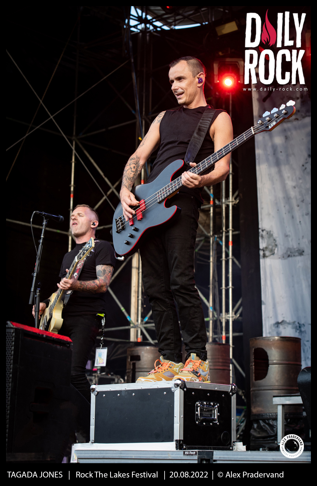 Avant Tagada Jones, les plus téméraires s’essaient à faire des glissades plus ou moins contrôlées dans la boue devant la scène. Il ne repleuvra pas de la soirée, mais la douche précédente a bien trempé le sol. On en profite pour remercier intérieurement l’organisation qui avait décidé plus tôt dans la journée de fermer le parking dans le champ voisin. Les français arrivent sur scène et balancent leur punk rock avec une belle énergie. Les premiers pogos de la journée sont lancés et tout le monde s’amuse, même les Suisses allemands à qui les textes engagés en français des Tagada Jones échappent un peu.