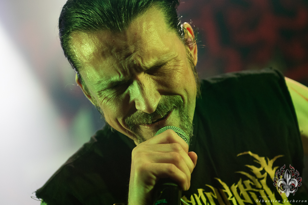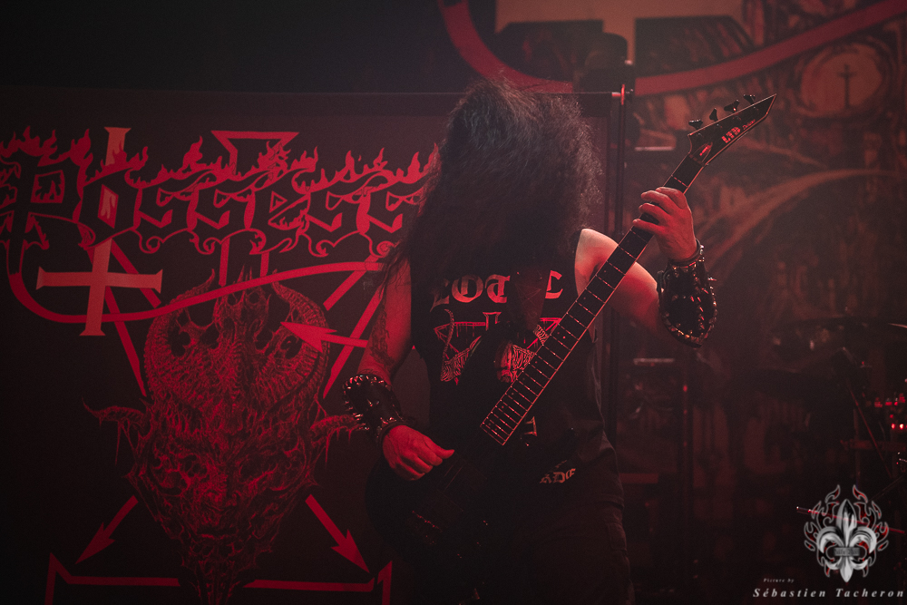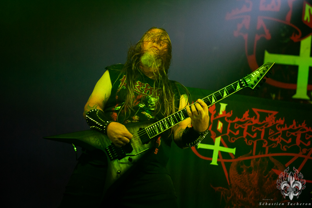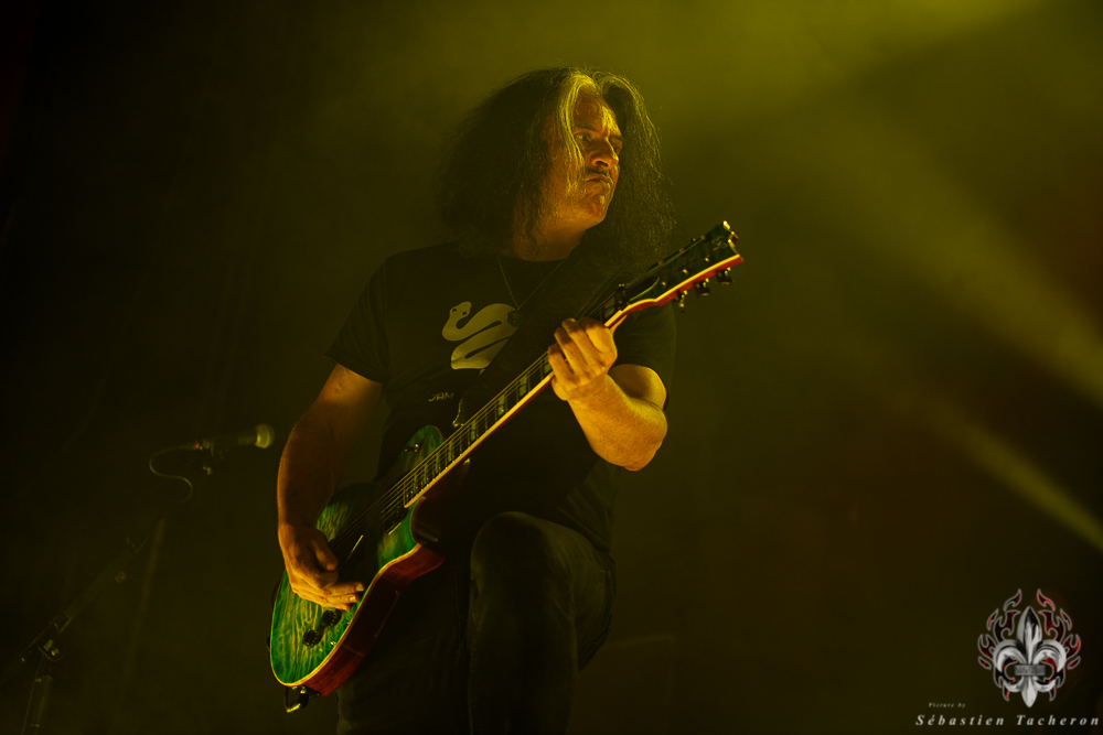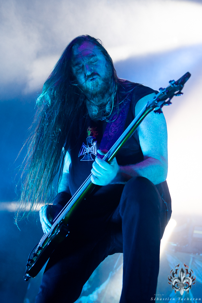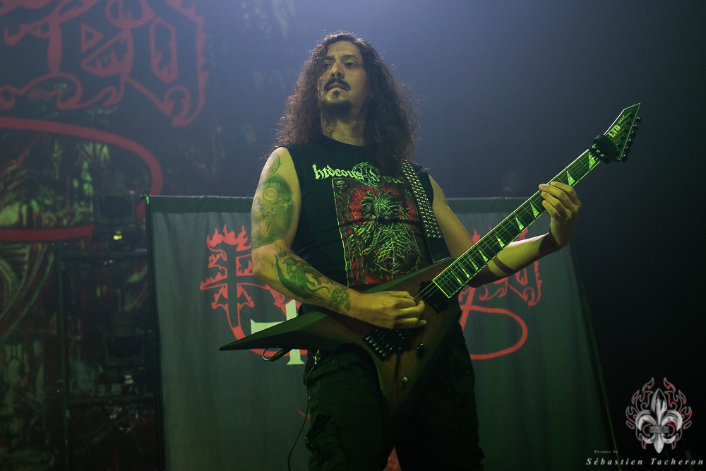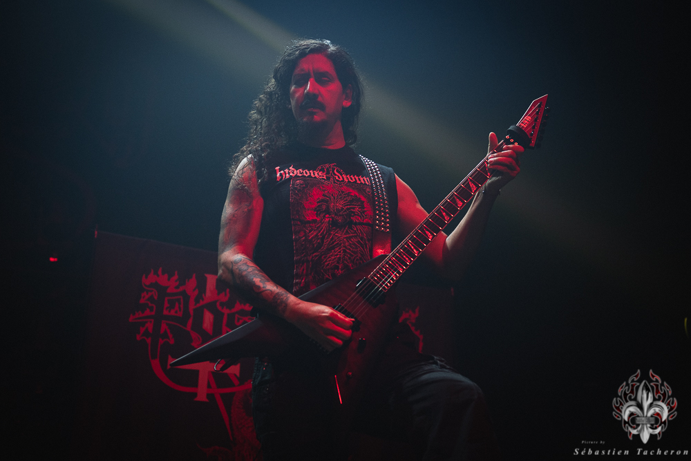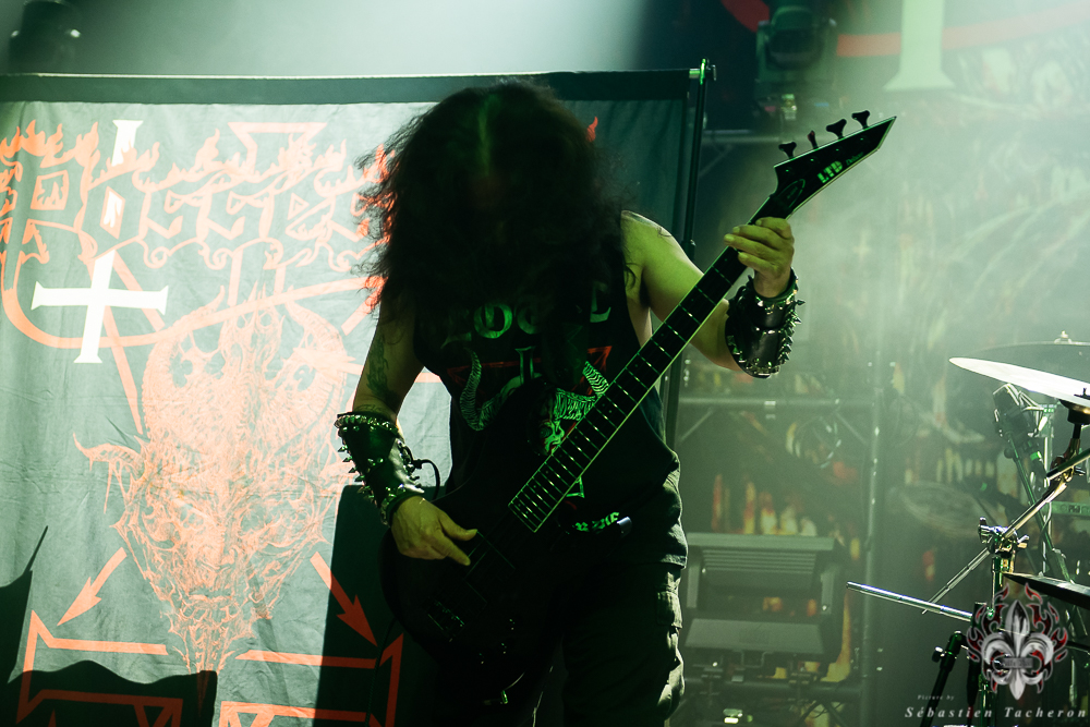 C’est Possessed qui lance la soirée même s’ils n’ont pas eu la carrière et surtout le succès qu’ils auraient dû avoir. Les musiciens arrivent sur scène, Jeff Becerra quant à lui, arrive sur son fauteuil roulant. Ceux qui connaissent bien le groupe sont au courant de son histoire et on ne la refera pas. Juste pour dire qu’il a pu remarcher (avec l’aide de jambes robotisées) il y a environ 3 ans. Jeff est d’ailleurs le seul membre original du groupe qui ont sortis en 1985 Seven Churches qui est considéré comme étant le premier album de death metal de l’histoire. Pendant toute leur trop courte prestation, Revelations of Oblivion, leur dernier album, et Seven Churches sont bien sûr mis en avant. C’est vraiment agréable d’entendre les vieux classiques du groupe, avec un son vraiment puissant. Jeff a eu quelques soucis d’oreillette tout le long du concert. C’est pour le titre The Exorcist, qui était attendu des fans, que son micro a décidé de rendre l’âme. Pour moi, c’était une belle découverte et un excellent concert qui a bien lancé cette soirée.