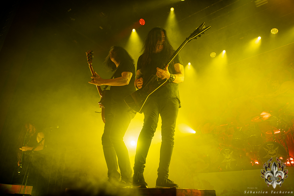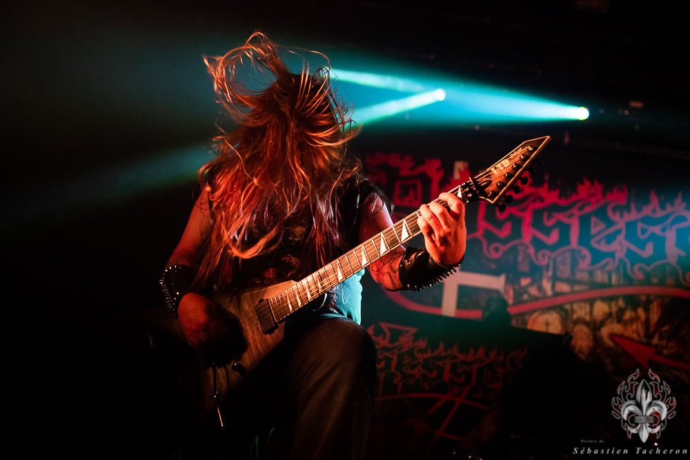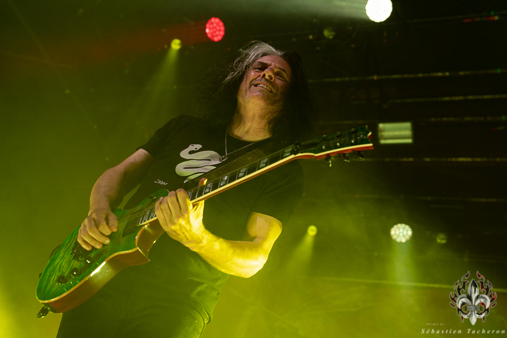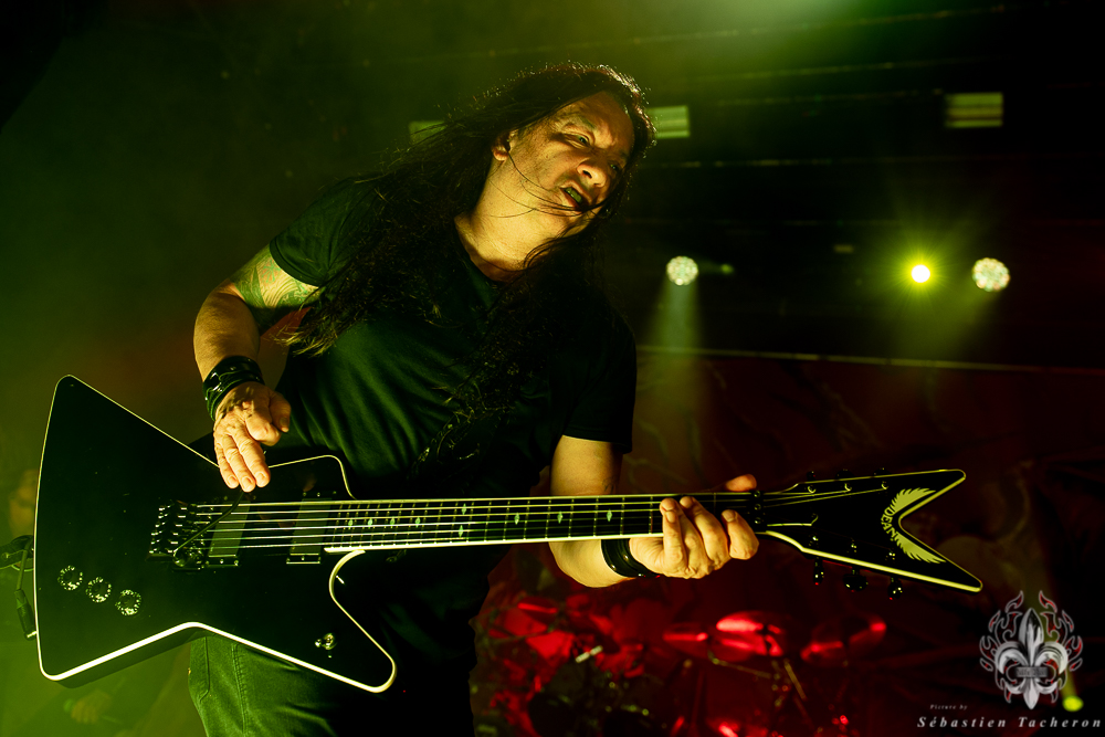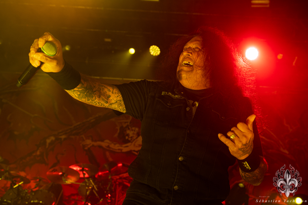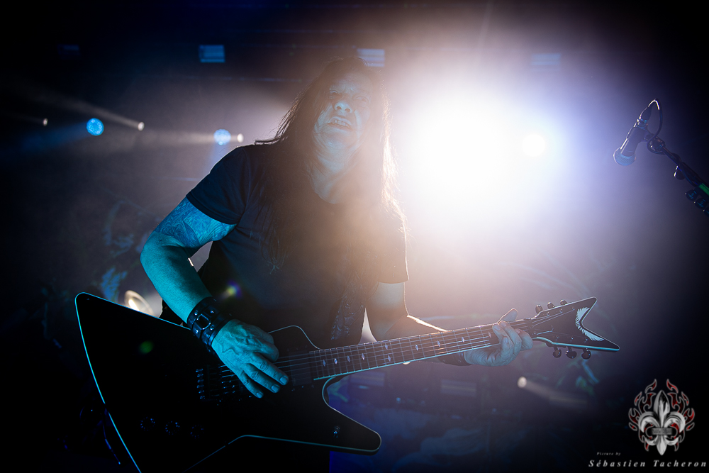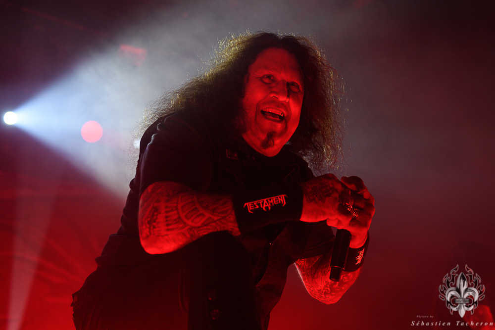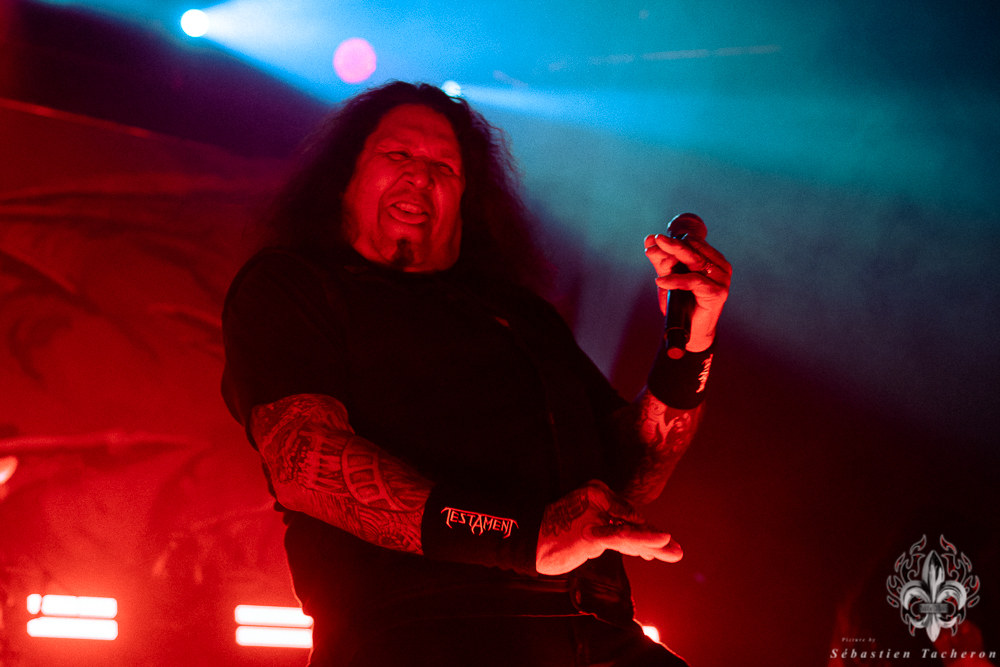 Le concert a été annoncé sold out le jeudi, c’est donc une foule compacte qui accueille les californiens de Testament. Le groupe de Berkeley a beau avoir subi de nombreux changements de line-up au cours de sa carrière, il est toujours bien présent et rassemble toujours autant les foules à chacune de ses tournées. En plus de 40 ans de carrière, Testament n’a jamais faibli, leurs albums ont toujours gardé une excellente qualité, ce qui n’est pas toujours le cas pour des groupes de cette longévité.