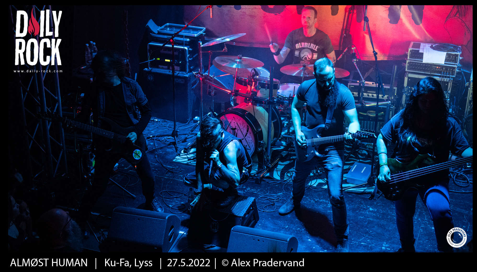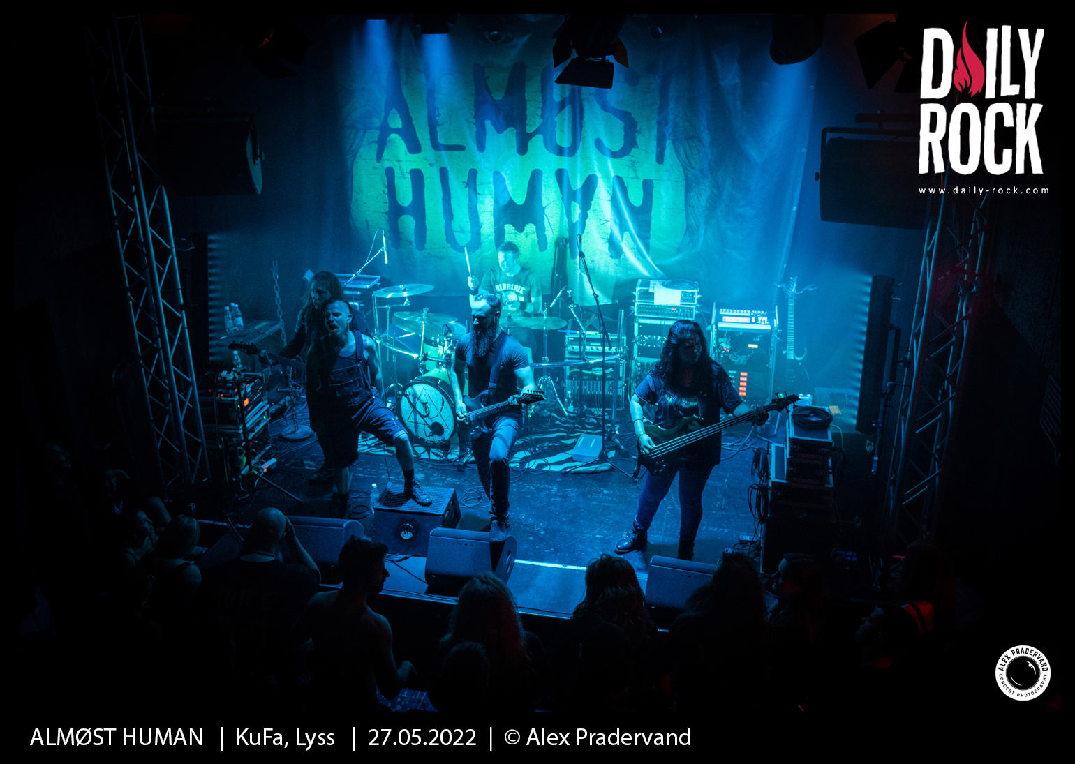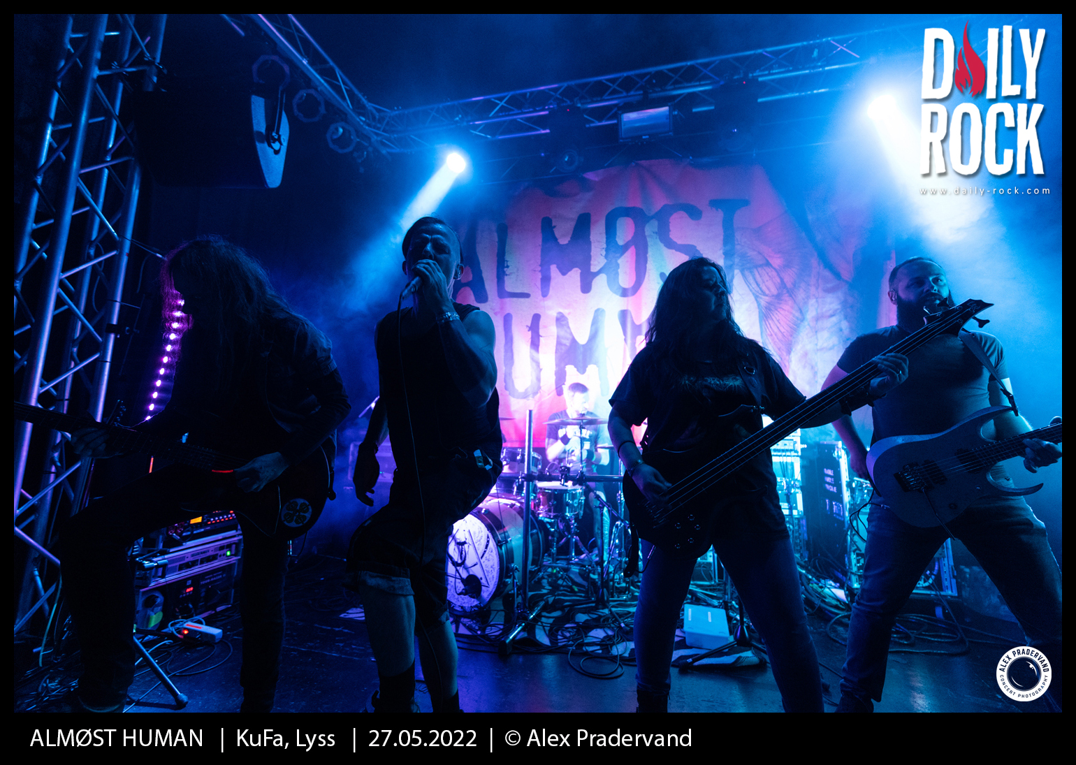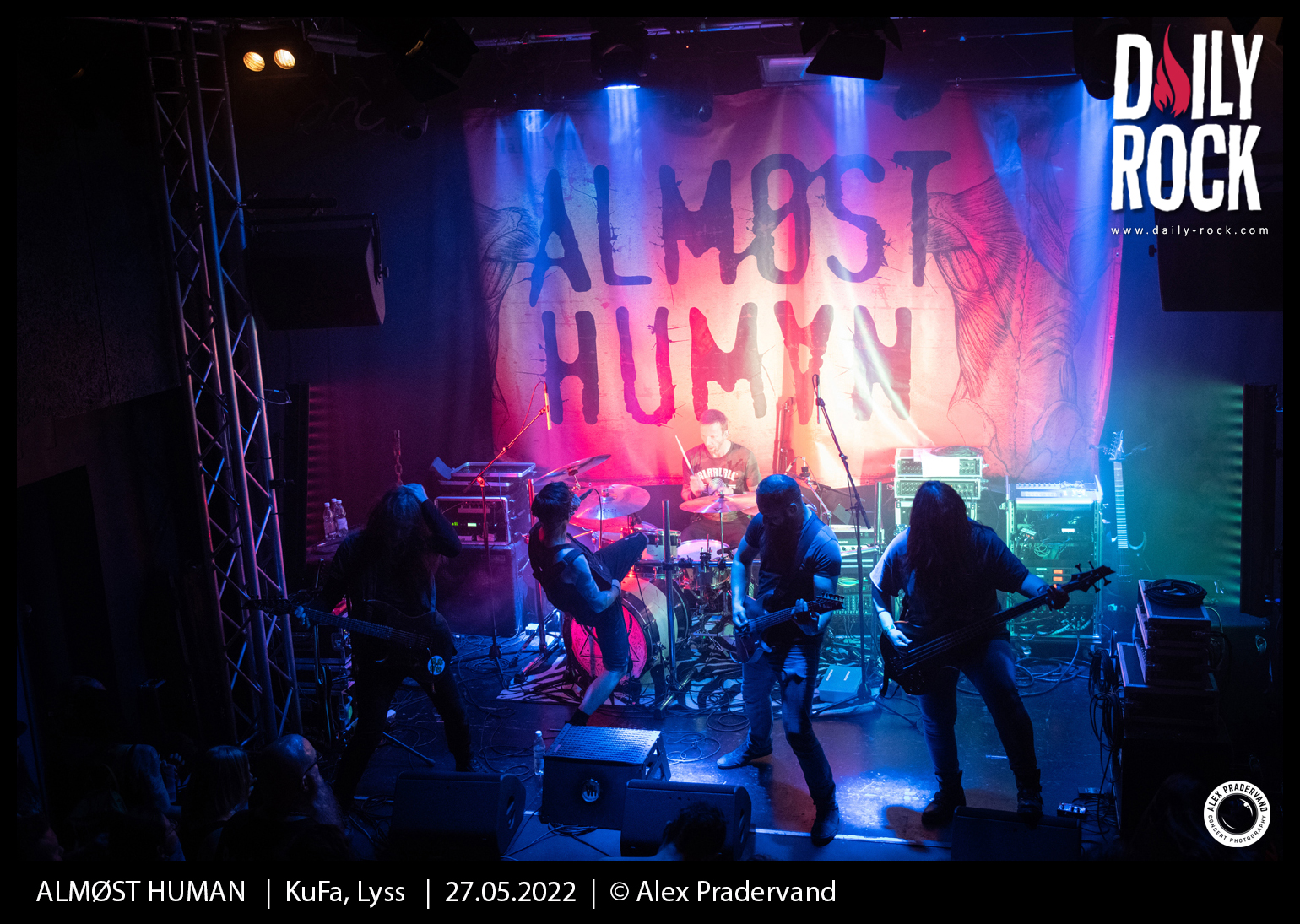 Le dernier slot est pour ALMØST HUMAN. Le groupe vaudois a un album désormais bien rôdé à jouer. Le rapide soundcheck avant le concert permet de règler en bonne partie le problème de son. Comme les autres groupes, ce sera 30 minutes pour convaincre. Je ne suis peut-être pas très impartial dans la mesure où je suis activement ce groupe depuis 3 ans, mais le set est une fois encore super costaud et la qualité technique des musiciens toujours aussi impressionante.