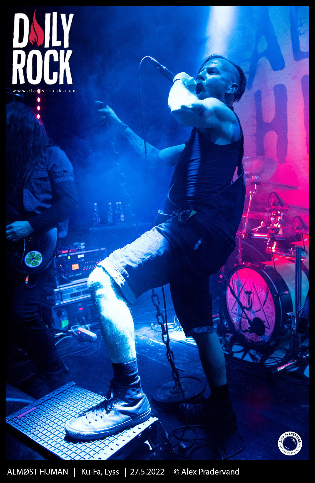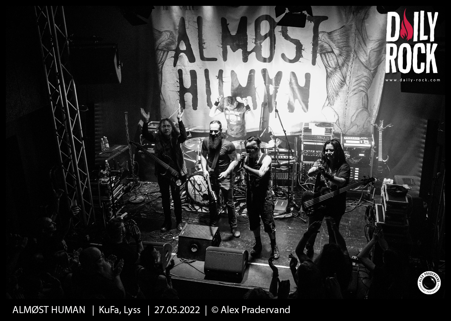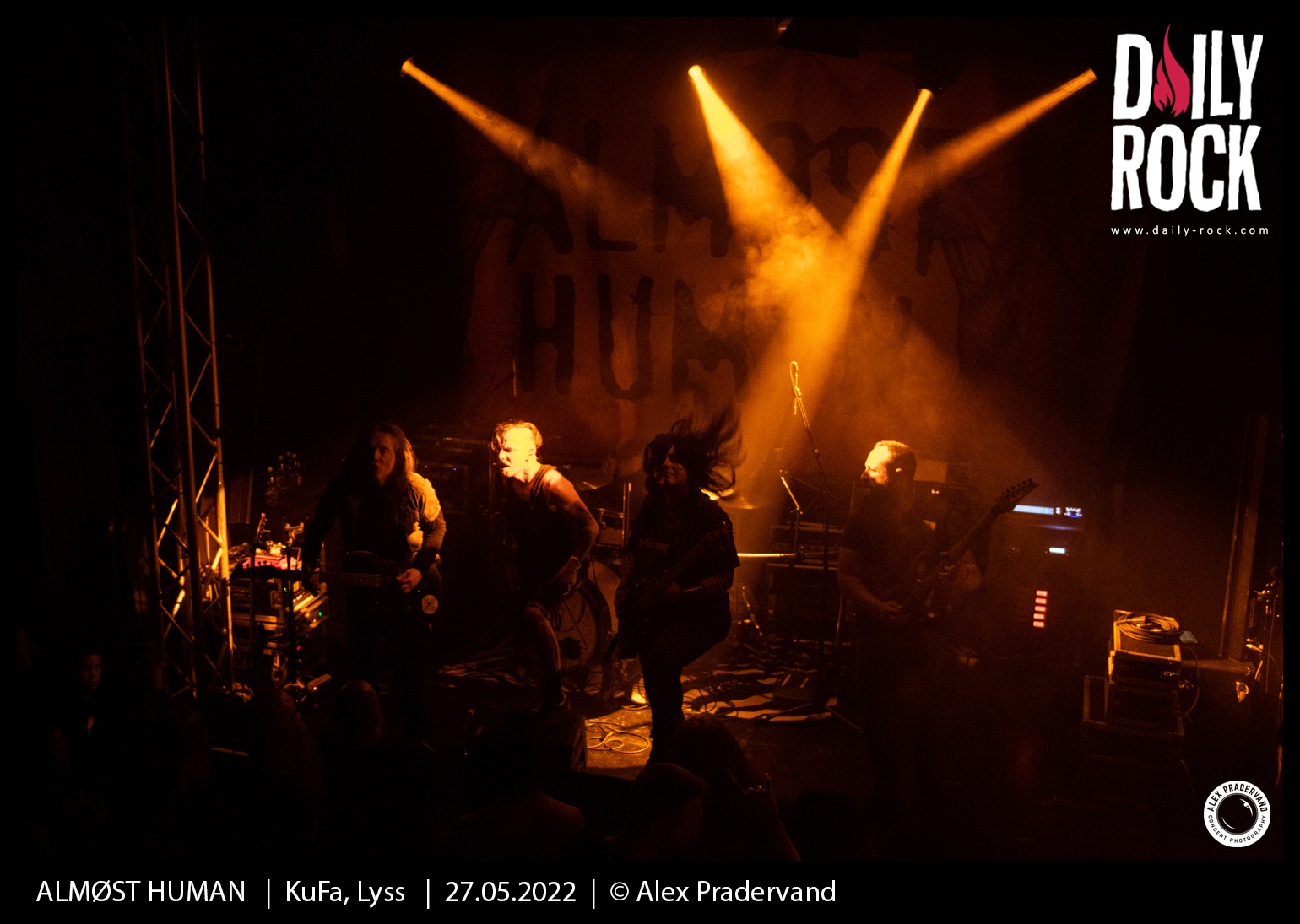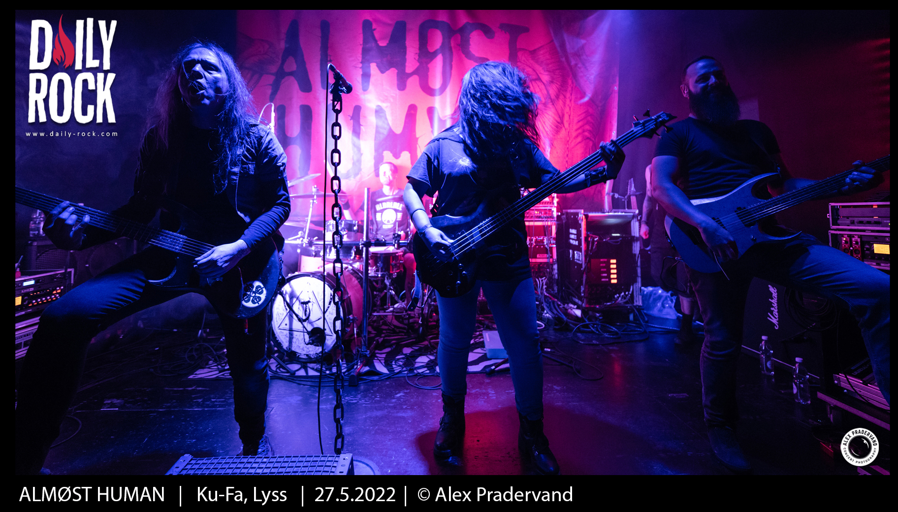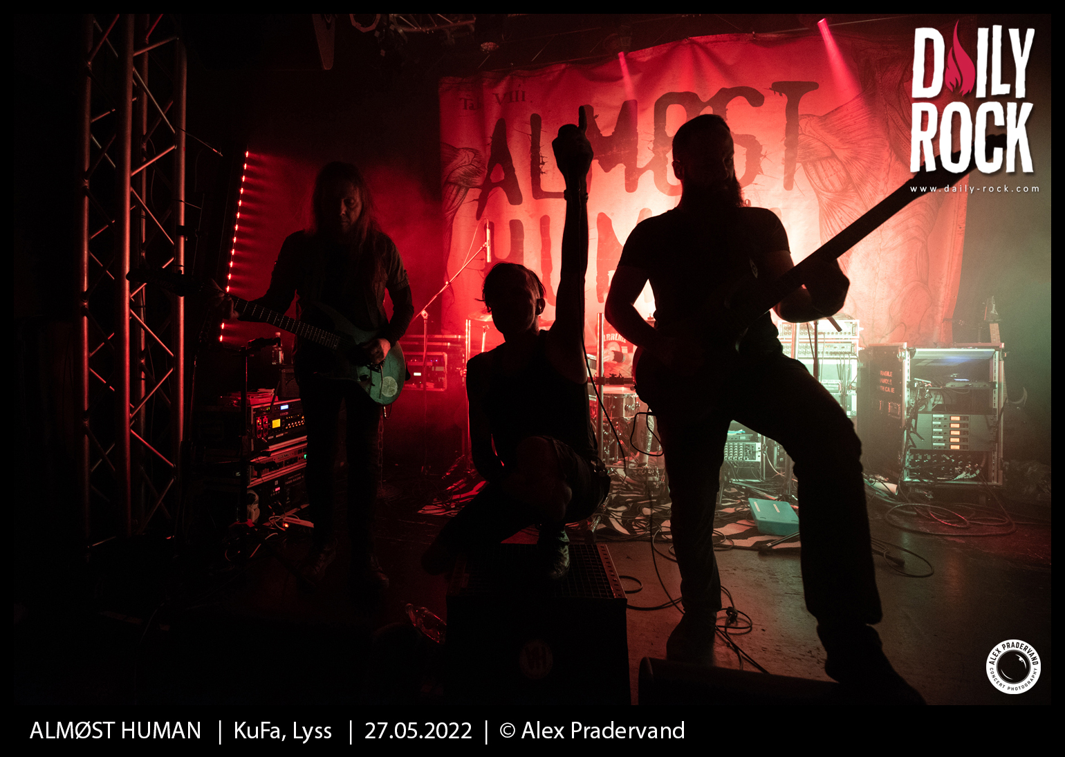 Le dernier slot est pour ALMØST HUMAN. Le groupe vaudois a un album désormais bien rôdé à jouer. Le rapide soundcheck avant le concert permet de règler en bonne partie le problème de son. Comme les autres groupes, ce sera 30 minutes pour convaincre. Je ne suis peut-être pas très impartial dans la mesure où je suis activement ce groupe depuis 3 ans, mais le set est une fois encore super costaud et la qualité technique des musiciens toujours aussi impressionante.