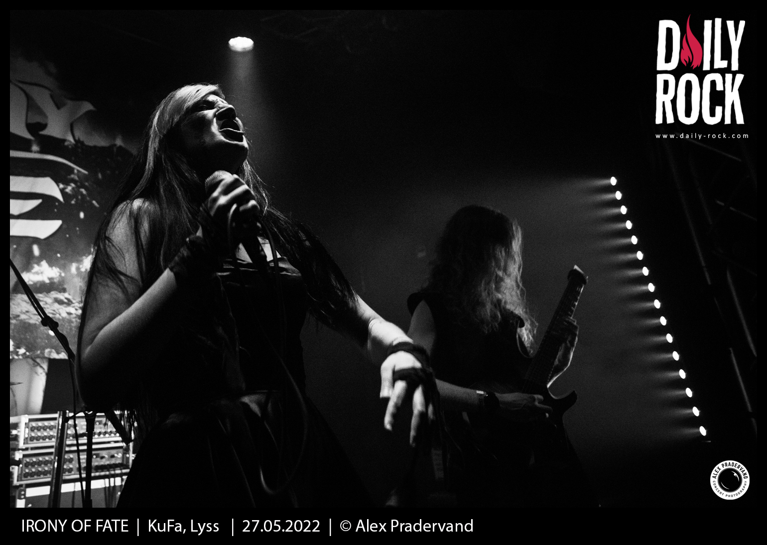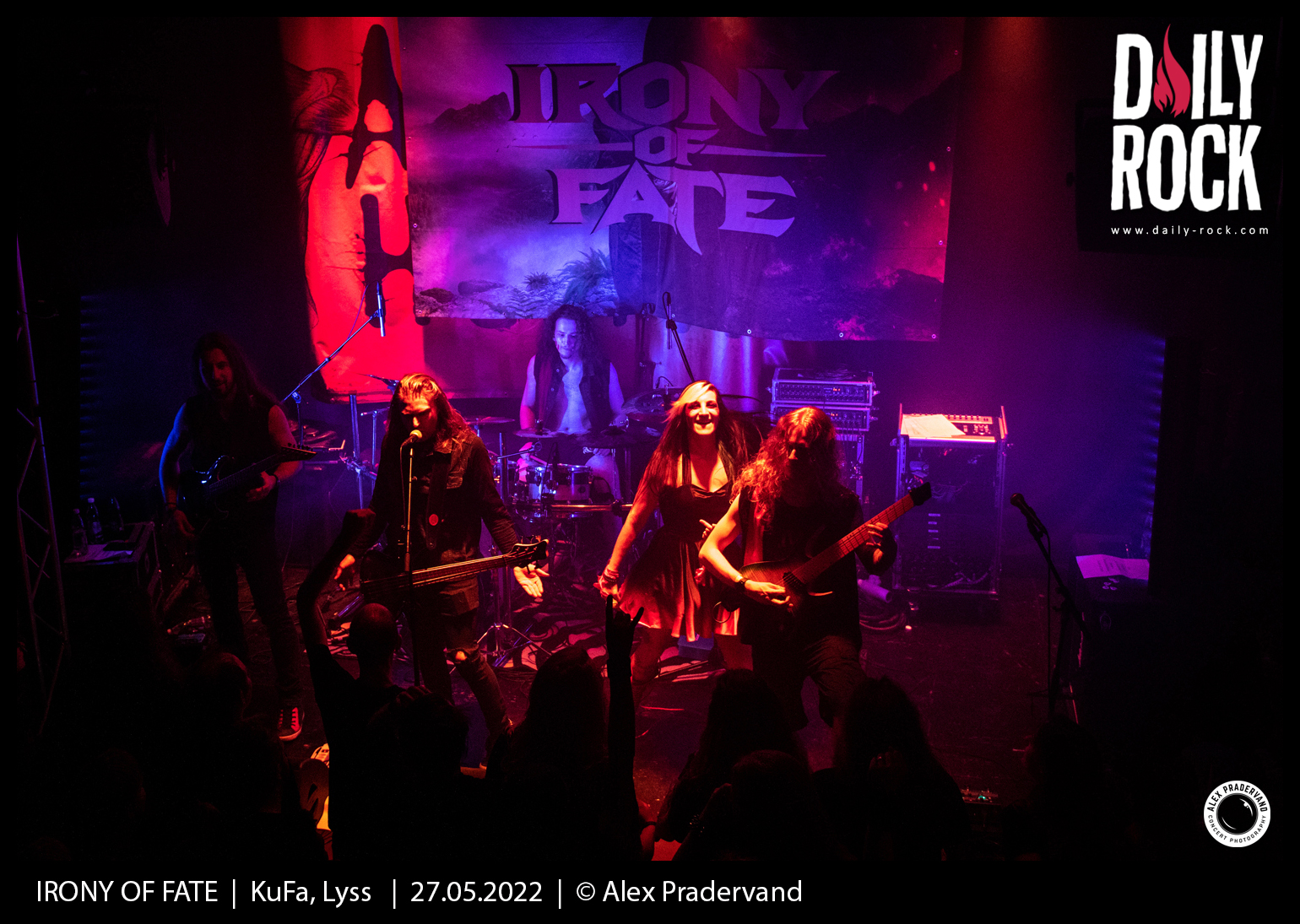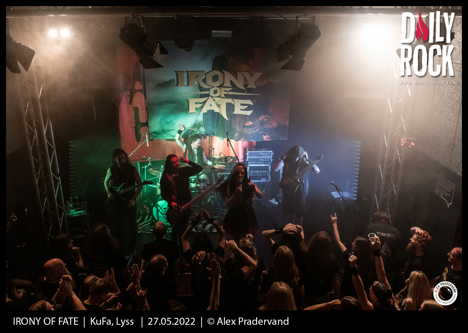 Troisième à passer dans une salle désormais surchauffée devant un parterre de fans à juger des nombreux t-shirts à son nom, Irony Of Fate a la lourde tâche de faire la différence après deux prestations convaincantes. Le son mets du temps à se règler, manifestement le rapide soundcheck s’avère assez compliqué. Avec un bon quart d’heure de retard sur l’horaire, le show commence sur les chapeaux de roue. Première fois que je les vois en concert et plutôt une bonne surprise pour ce death melodique. Par contre, le son est mauvais et la voix de la chanteuse est malheureusement inaudible. Vraiment dommage et clairement à réécouter dans de meilleures conditions. Heureusement le public donne de la voix et s’agite avec plaisir.