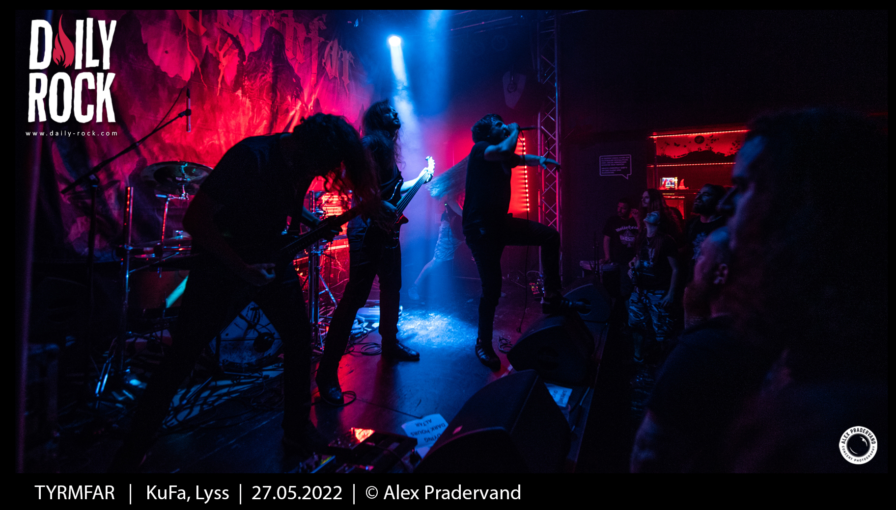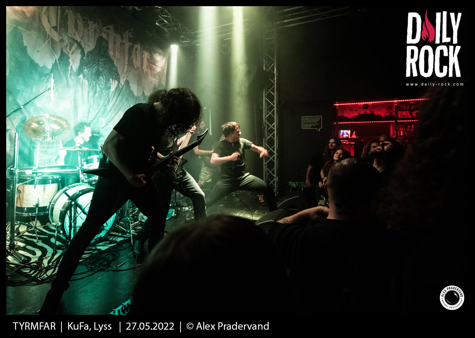 Changement d’ambiance avec les valaisans de Tyrmfar et leur metal beaucoup plus sombre. C’est bien raccord avec l’éclairage de la salle qui est minimaliste. Des guitares qui diffusent un black metal puissant et surtout un nouveau chanteur depuis la dernière fois que je les avais vus à l’Irreversible Festival en 2018. Set costaud et sérieux dans une salle tellement pleine que je n’ai malheureusement pas pu en voir grand chose.