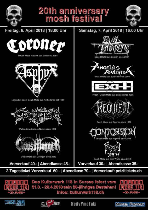 Un évènement très spécial se prépare ! Les 6 et 7 avril prochain, une dizaine de groupes, principalement suisses, se réunissent au Kulturwerk 118 de Sursee (LU) pour le Mosh Festival !