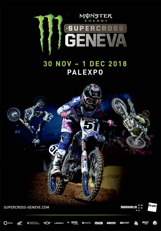 Vous aimez le sport, l’adrénaline, le suspense et les courses acharnées ? Alors le Monster Energy Supercross Geneva est fait pour vous ! On vous attend les 30 novembre et 1er décembre à Palexpo sur l’une des plus grandes pistes indoor d’Europe sur laquelle s’affronteront les meilleurs pilotes du monde !