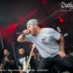 Tout juste le temps d’un rapide coup d’oeil autour de moi pour m’apercevoir qu’il y a du monde de 7 à 77 ans (j’ai croisé 2 grands-mamans) qu’Oregon Trail débute son concert. C’est brutal, le ton est donné pour la suite. Facing The Enemy, Oldsun, Henriette B se sont succédé sur la scène sans réel changement de style mais non sans qualité. Il a fallut l’arrivée d’Almøst Human pour avoir vraiment quelque chose de différent.