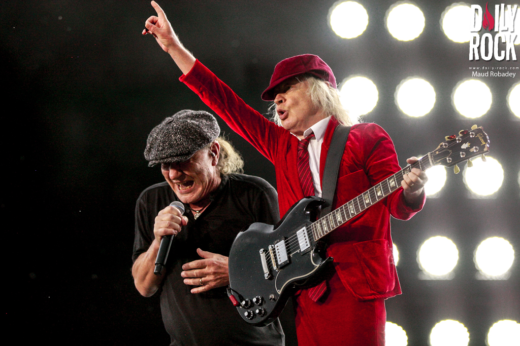 Brian assure le show également en tirant tout ce qu’il peut de ses cordes vocales, le duo est en osmose avec la machine rythmique inébranlable qui se trouve derrière eux. Le tapis rouge est déployé avec les titres « Stiff Upper Lip », « Sin City », « Dirty Deeds », « High Voltage », « Highway to Hell », « Whole Lotta Rosie » et bien plus encore…