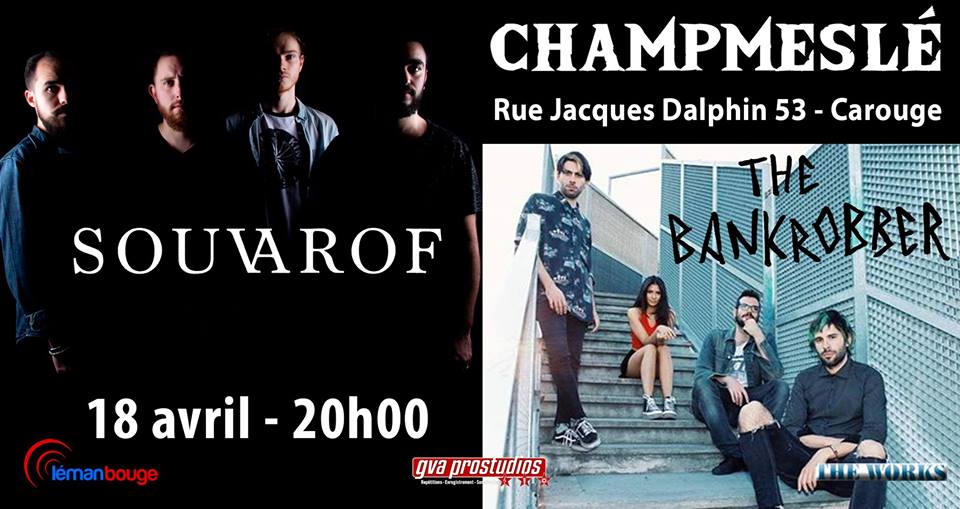 Du côté de Genève, la scène de Champmeslé recevra The Bankrobber et Souvarof pour une soirée rock ==> Event Facebook
