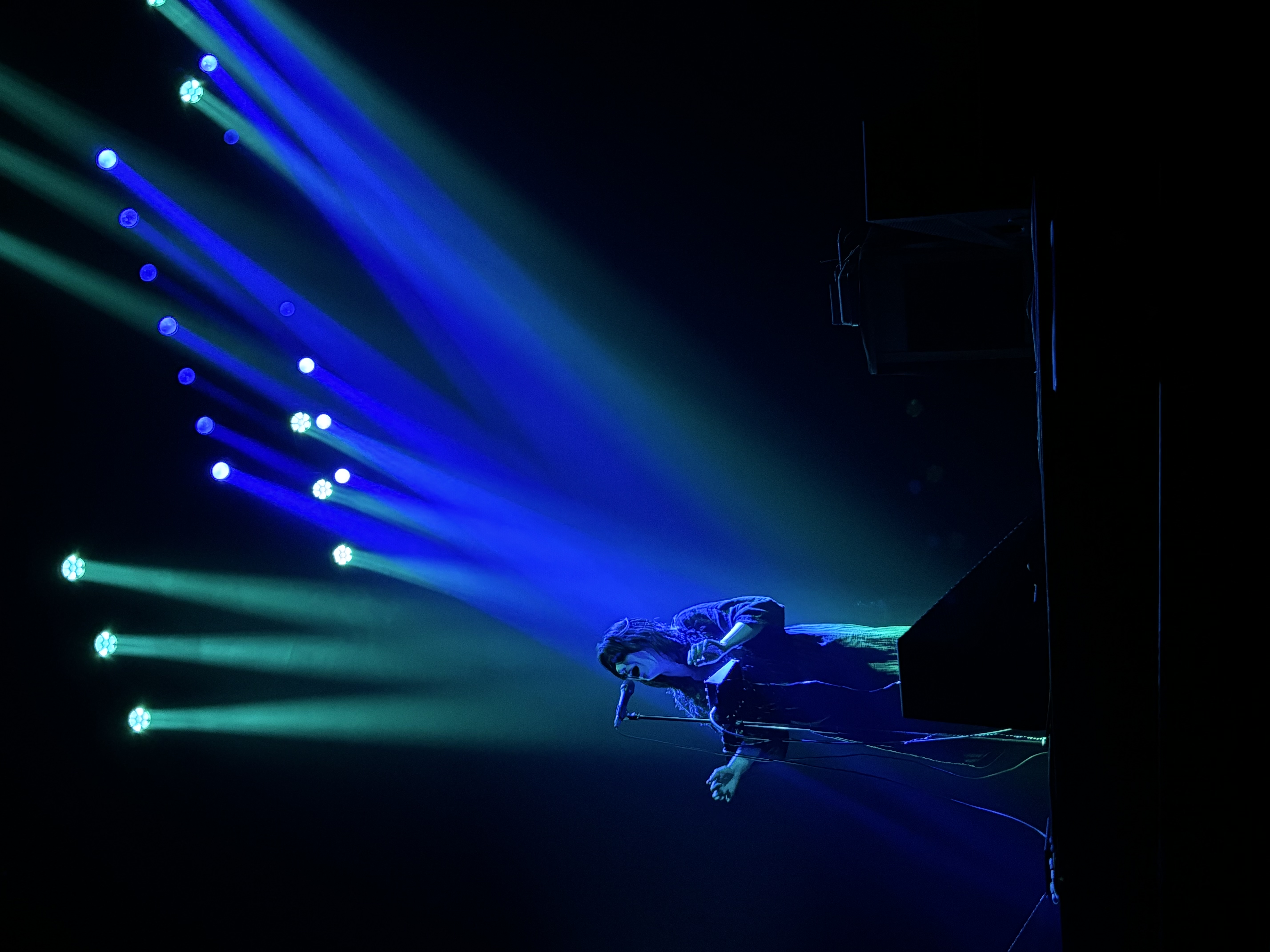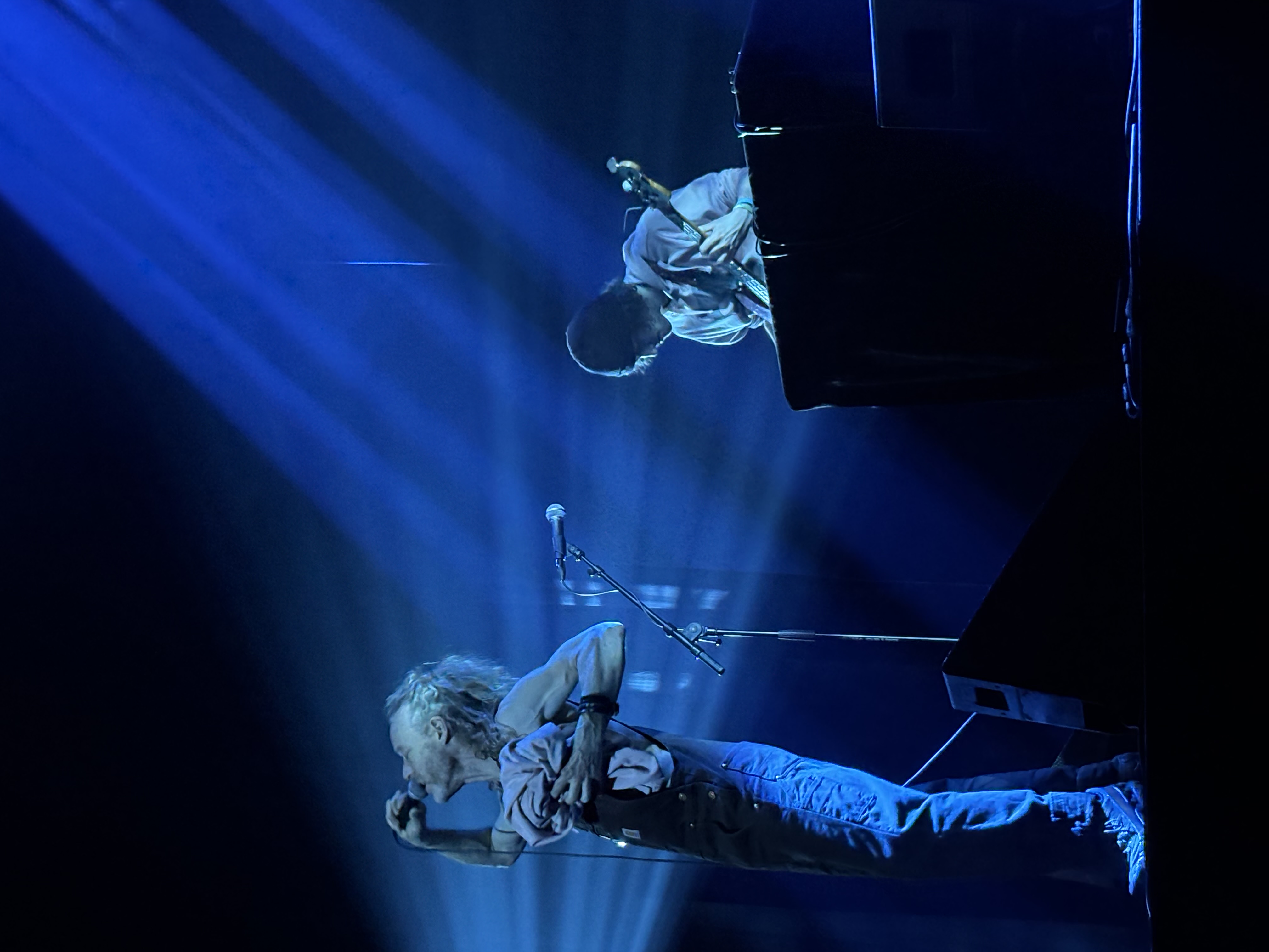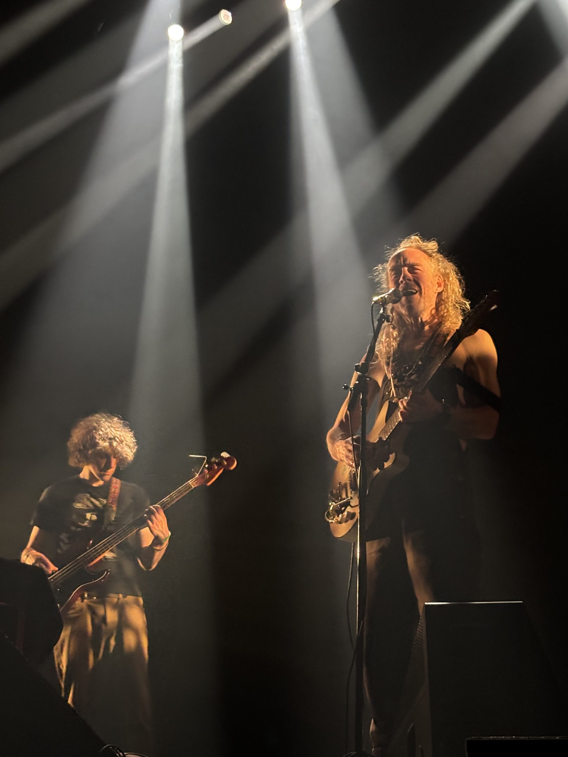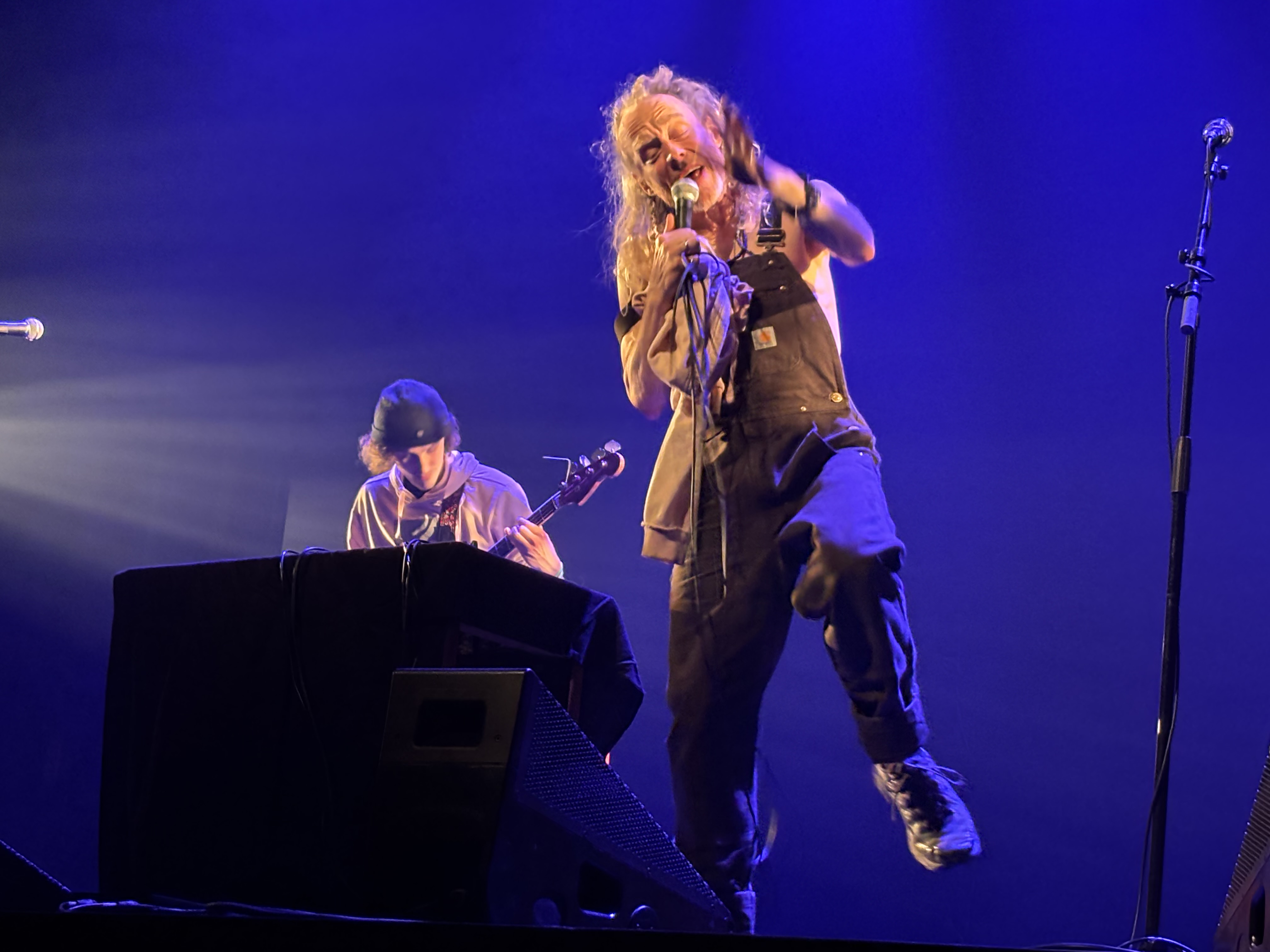 On était très curieux de voir sur scène l’interprétation d’Alan Sparhawk de son premier album solo, ‘White Roses, My God’. On l’a déjà dit, un album créé dans le deuil et une démarche résiliente de l’artiste qui adore se renouveler et explorer de nouveaux horizons musicaux, mais une création qui nous avait laissé perplexe de prime abord avec son côté electro brut inattendu. Il faut dire qu’en live, les titres prennent une autre dimension. Le chanteur de Low, vêtu d’une salopette et d’un sweatshirt s’affaire à bidouiller sa table de mixage, accompagné de son fils Cyrus à la basse. Il arpente la scène comme un lion en cage, sautille et ondule au rythme de sa musique synthétique. Le premier titre – et le plus intéressant – est ‘Get Still’, avec un mid-tempo immersif et une mélodie sinueuse et répétitive comme un mantra.