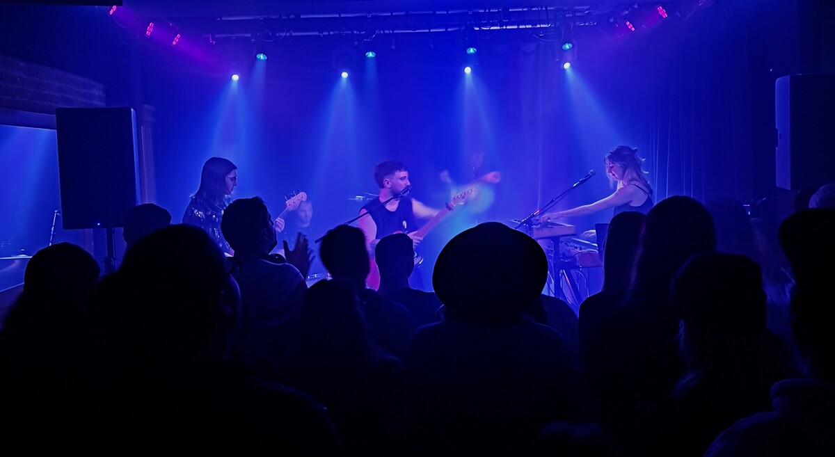 Ensuite, c’était au tour d’Alexandra Moreno, une artiste québécoise et péruvienne originaire de Montréal. Elle présentait son dernier album Toujours Maintenant, accompagnée de ses musiciens et de son bassiste/réalisateur Alex Métivier, pour une soirée intimiste au Verre Bouteille. Si vous ne l’avez pas encore fait, je vous conseille vivement de jeter un œil à la chronique de Pier-Luc sur le sujet, elle est super ! Dès les premières notes, Alexandra a créé une connexion immédiate avec le public. Sa prestation, fluide et émotive, avait quelque chose de profondément intime. Avec ses airs indie pop, elle aborde la difficulté de s’engager dans une relation amoureuse quand on se laisse piéger par des schémas d’évitement. À travers sa musique, elle raconte son histoire, celle d’une femme en quête d’elle-même, tiraillée entre la peur de l’abandon et la recherche de l’amour véritable.