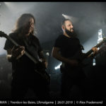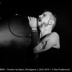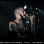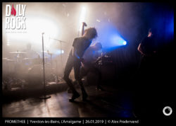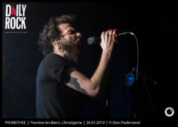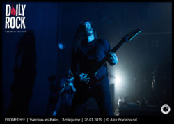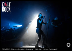 Quelques réglages rapides sur scène et déjà Promethée lançait le second concert sans attendre. Comme à l’accoutumée, éclairage mis en valeur par un épileptique pratiquant ainsi qu’un son étouffant et intense. Le groupe genevois avait annoncé un set durant lequel il allait jouer l’intégralité de son dernier album ‘Convalescence‘. Moins intellectuel qu’Almost Human, Promethée a asphyxié la salle avec une musique bien plus directe, refusant manifestement de lâcher quoi que ce soit pour déclencher cette vague sonore dont il a le secret. Belle affiche cohérente qui a fait la joie d’Yverdon ce soir-là, surtout que les affiches metal dans cette salle ne sont pas légion.