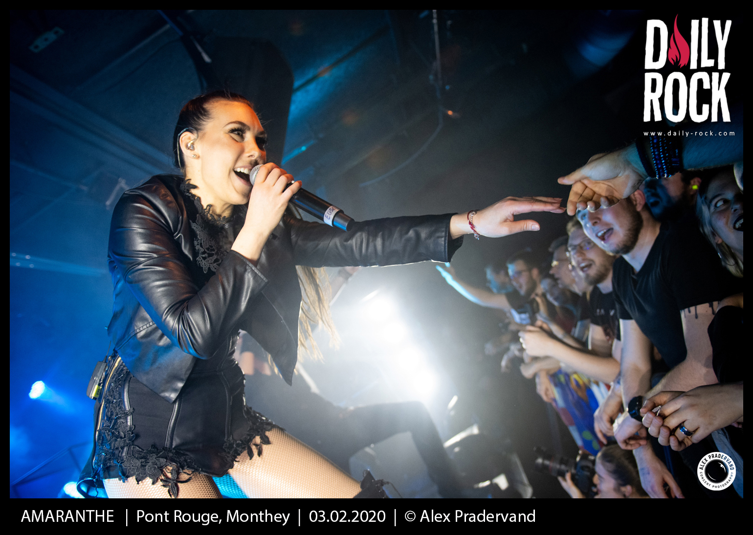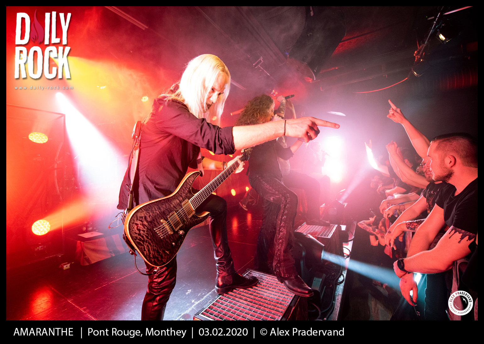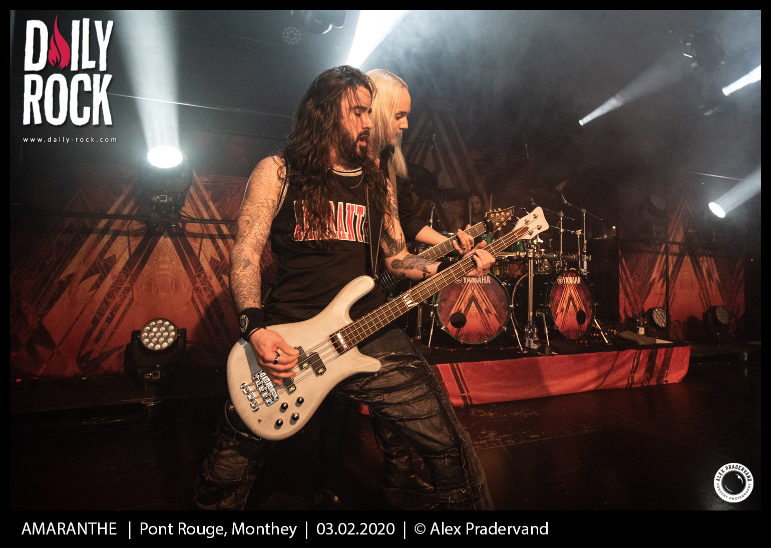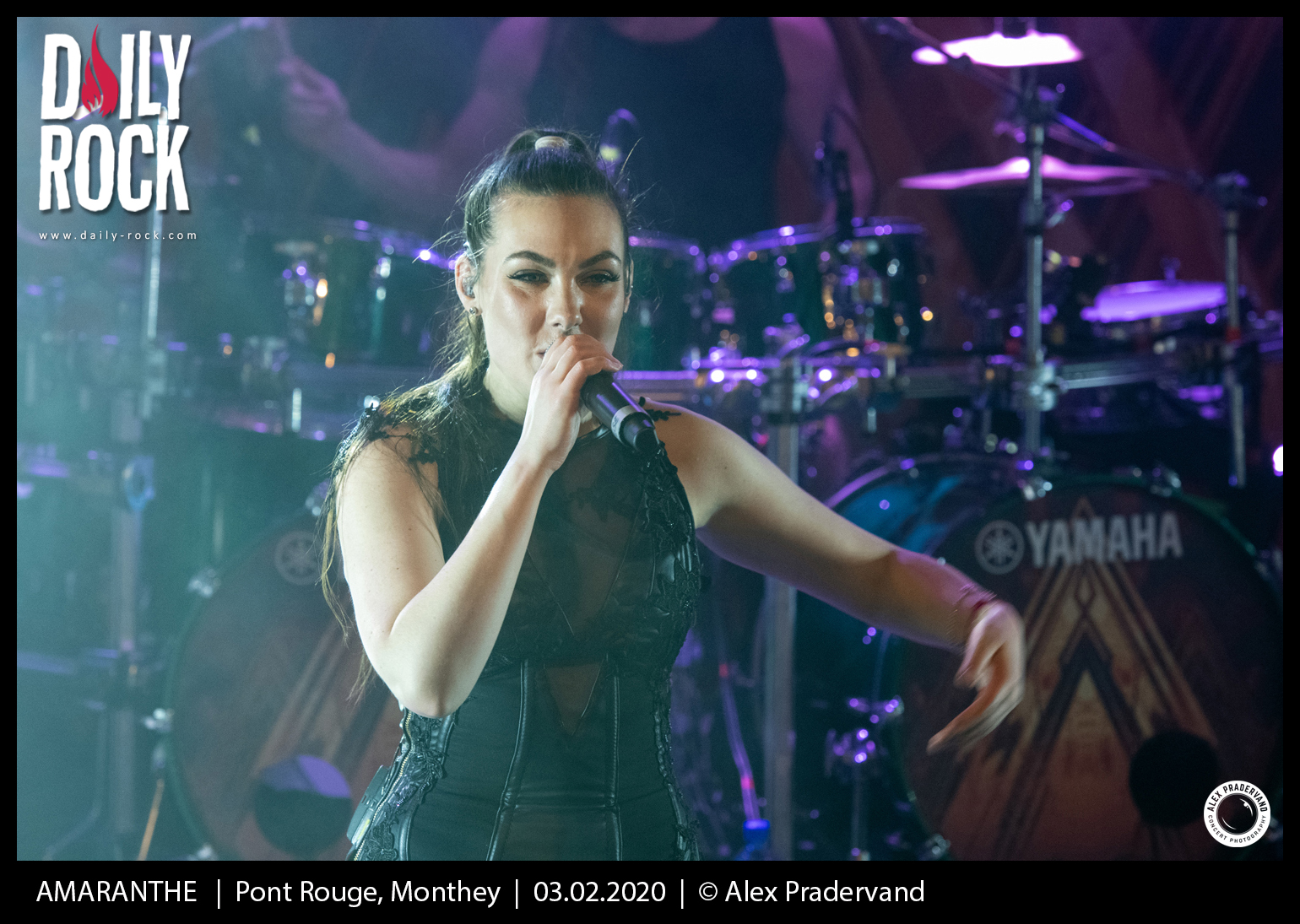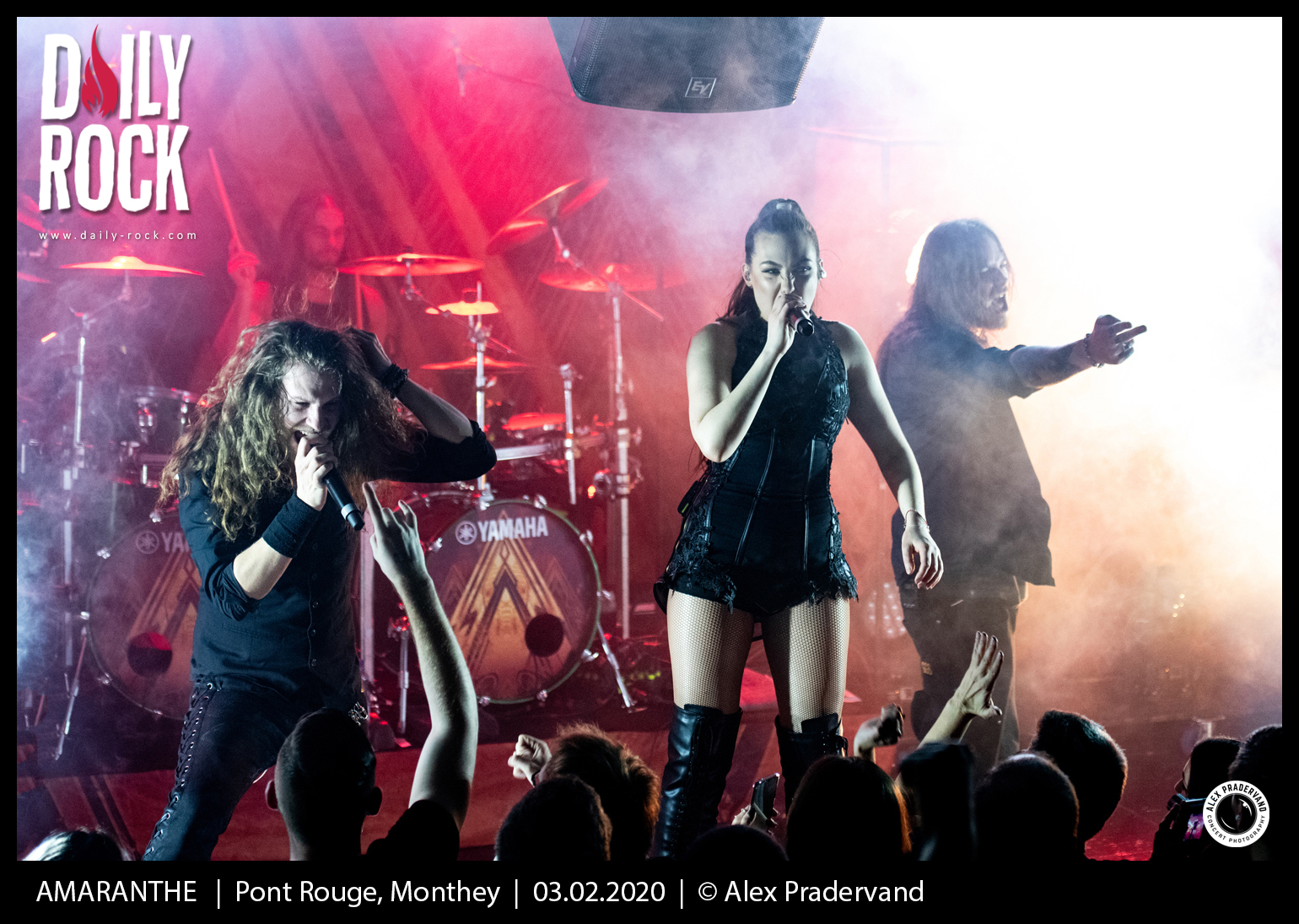 Engagés depuis le début de l’année dans une tournée européenne monumentale, en première partie de Sabaton et d’Apocalyptica, les musiciens d’Amaranthe réussissent encore le tour de force de donner des concerts en tête d’affiche dans des salles plus petites sur ce qui devrait être des jours off. Deux semaines après leur visite au Hallenstadion zurichois et juste avant de partir sur Barcelone rejoindre leurs compères, Elize Ryd et son groupe s’arrêtent au Pont Rouge de Monthey pour une date annoncée depuis plusieurs mois et qui a attiré pas mal de monde. Si le parking est complètement plein, la salle est à quelques poignées de billets d’être sold out également. Le Pont Rouge fête ses dix ans d’existence, mais le cadeau ce soir est bien pour les fans d’Amaranthe.