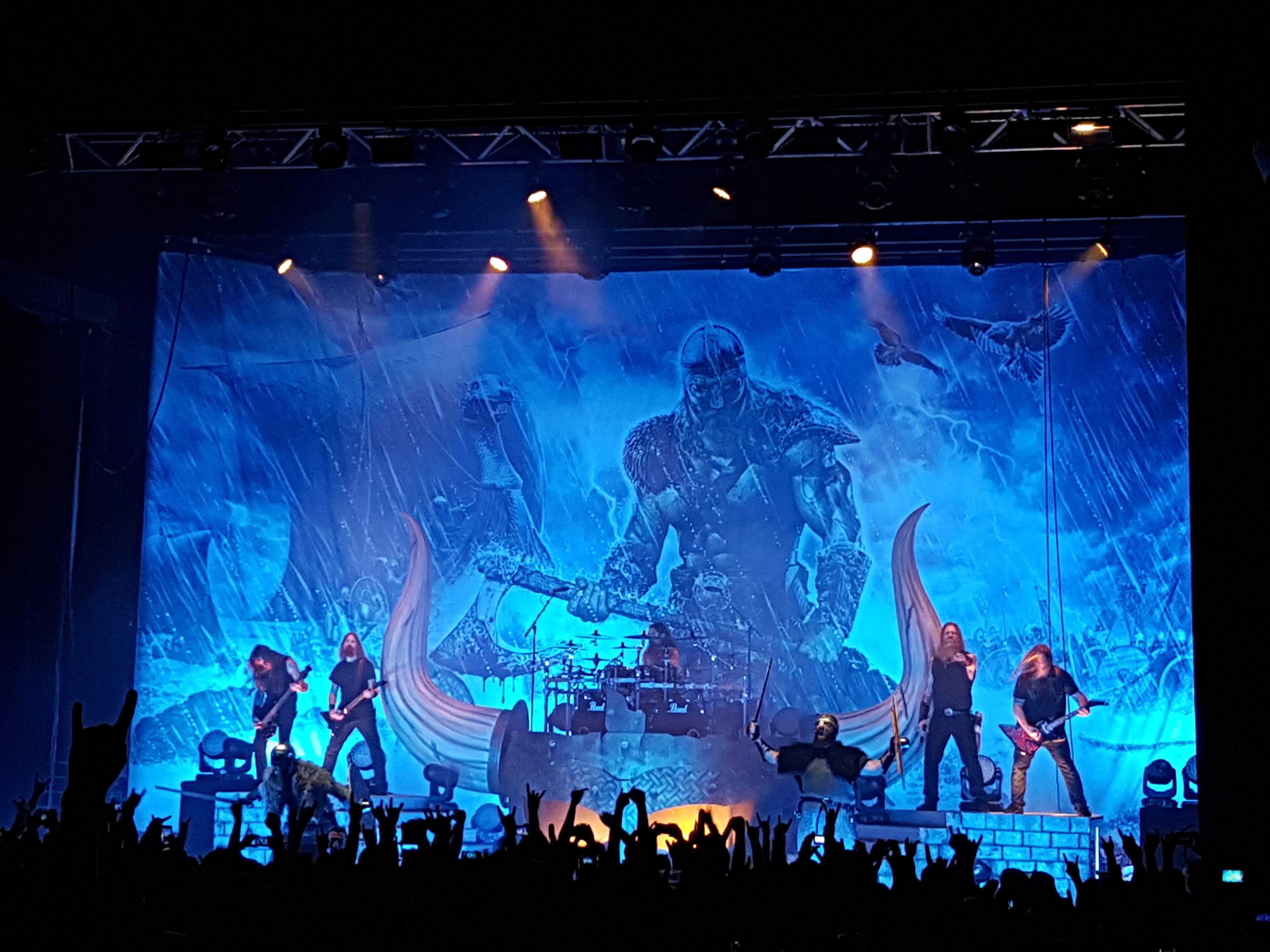 En dépit de l’accueil enthousiaste dressé à Testament, on ne saurait le comparer aux hurlements qui s’élèvent de la salle lorsque une intro orchestrale annonce l’arrivée imminente des vikings. D’après la température du public, on serait prêt à donner raison aux organisateurs de la tournée qui ont préféré mettre Amon Amarth en tête d’affiche plutôt que Testament, pourtant leurs aînés. Revisitant la blitzkrieg en death metal sauce viking, Amon Amarth frappe très fort pour ouvrir les hostilités avec leur inévitable ‘Pursuit of Vikings’. Le public est hystérique. Assez pour réagir avec une chaleur égale à leur moins percutant ‘As Loke Falls’. La tactique paie, et Amon Amarth la dosera savamment tout au long de la soirée, alternant tubes fédérateurs et morceaux plus récents – moins inspirés diront les vieux cons comme moi. Si Amon Amarth n’ira pas jusqu’à gratifier ces vieux fans de leur favorite ‘Victorious March’, qu’ils avaient traînée longtemps sur scène, ils balancent quand même un ‘Death in Fire’ au milieu – l’occasion de se rappeler que ‘Versus the World’, c’est sorti il y a quatorze ans déjà. Merde hein ? Oh, et comment ne pas mentionner toute la mise en scène, enrichie d’apparitions ponctuelles de vikings aux côtés des musiciens, lorsque ce n’est pas Loki ou le serpent Jörmungandr pour clore le show, avec ‘Twilight of the Thunder God’, sur une note over épique ? Même en sachant que tous ces artifices ne forment qu’un gimmick assez pauvre pour racoler les pré-ados, la magie opère sur les plus vieux au point qu’on se sent un peu hypocrites au moment de les critiquer. Alors, Hail, Odin’s Son ! Et à la prochaine.