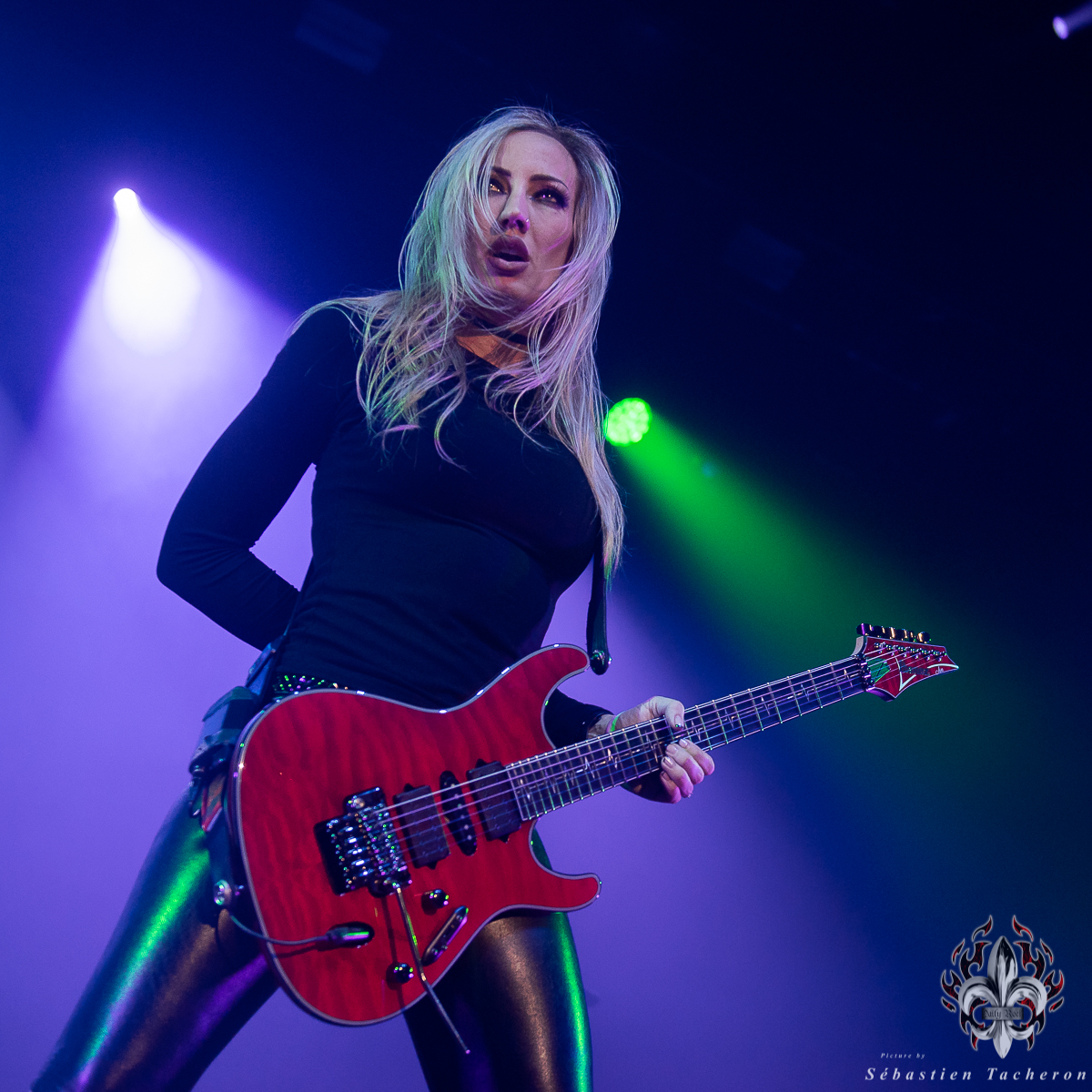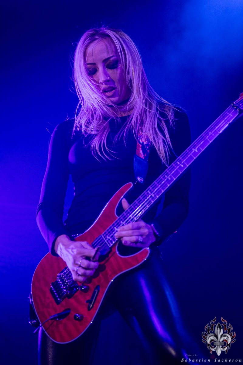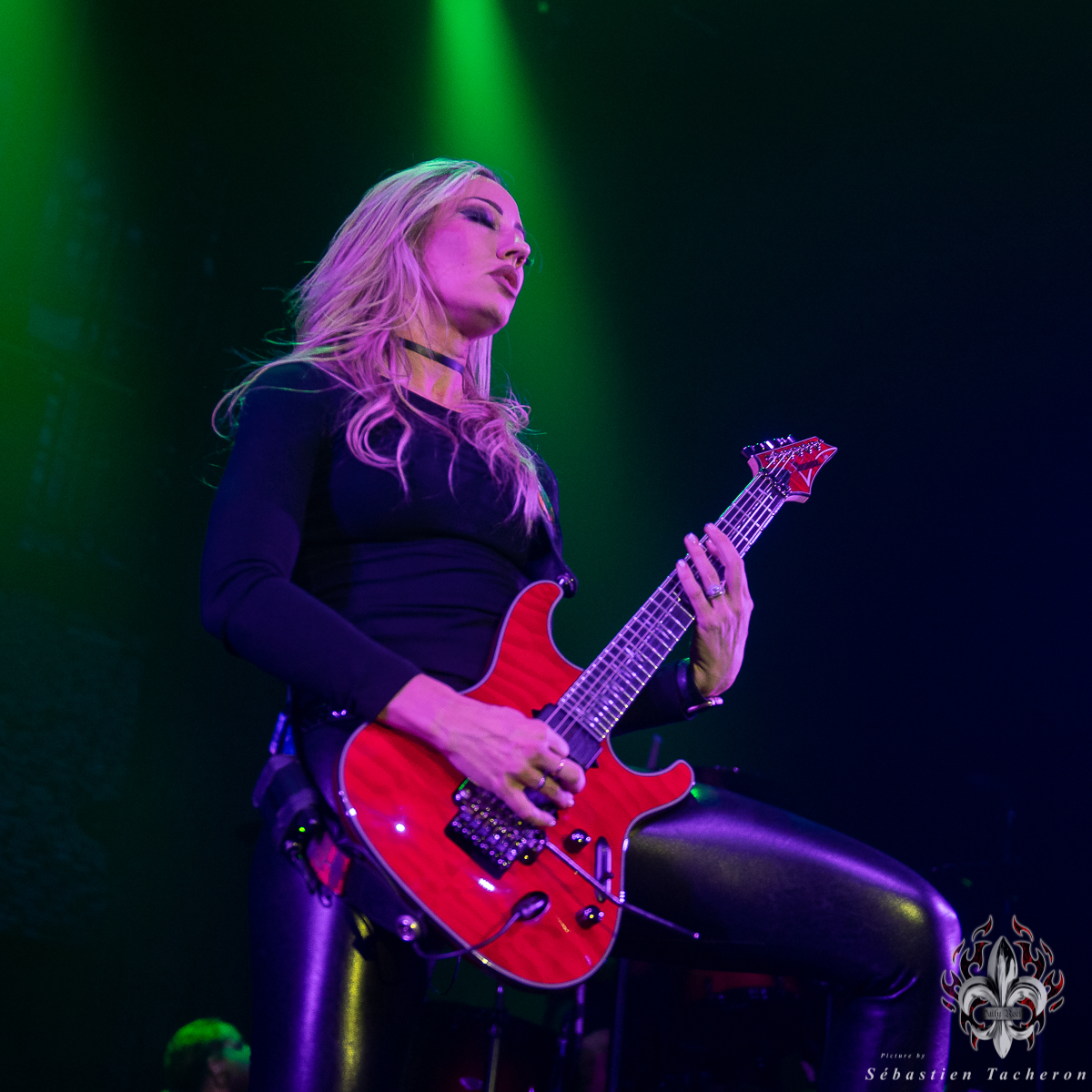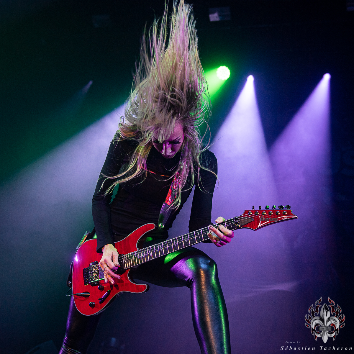 C’est à Nita Strauss qu’incombe l’honneur de lancer la soirée. La native de Los Angeles, qui est également la guitariste d’Alice Cooper depuis une dizaine d’années, profite de sa présence sur cette tournée pour promouvoir son album solo The Call of the Void, paru en 2023. Cet album met en avant ses talents de guitariste ainsi que plusieurs chanteurs et chanteuses, dont Alissa White-Gluz, Lzzy Hale et David Draiman. Pour cette série de concerts, c’est Kasey Karlsen, du groupe Deadlands, qui est venue chanter sur les quatre derniers titres. Malgré ce détail sans trop d’importance, Nita Strauss et son groupe ont offert un excellent concert.