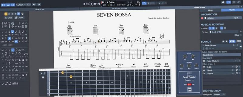 – Le réglage audio des pistes RSE (le format de banques de son exclusif Guitar Pro) a été simplifié. Vous avez désormais le choix de votre preset parmi plus de 1000 modèles associant instrument et chaîne d’effets.