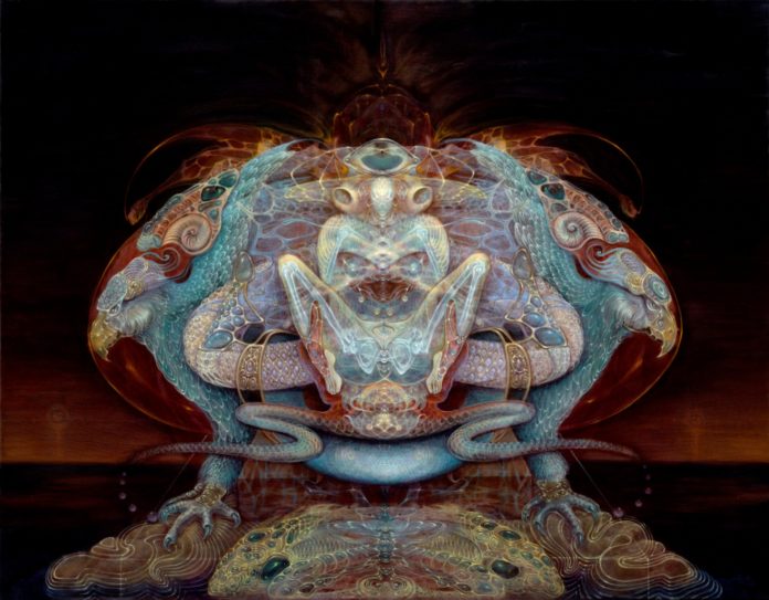 La troisième galerie d’exposition montre une sélection d’œuvres du regretté Réaliste Fantastique, Robert Venosa. Représentant les différentes périodes de son parcours artistique, ils vont de son travail originel sur les plans astraux lumineux et cristallins, à travers des paysages d’autres mondes, à ses visions hypnotisantes d’Ayahuasca.
