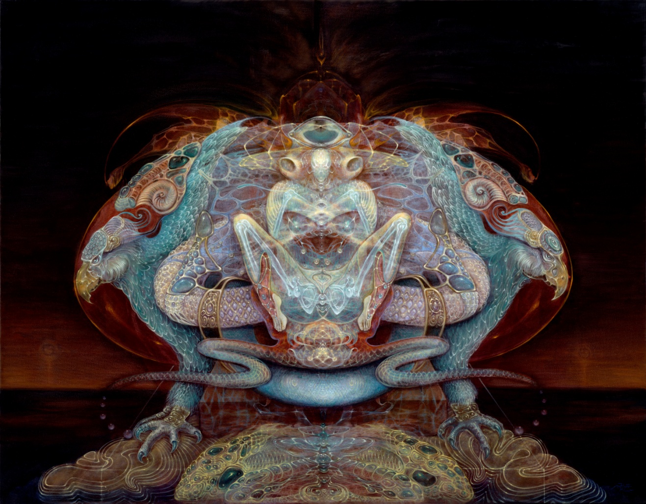 La troisième galerie d’exposition montre une sélection d’œuvres du regretté Réaliste Fantastique, Robert Venosa. Représentant les différentes périodes de son parcours artistique, ils vont de son travail originel sur les plans astraux lumineux et cristallins, à travers des paysages d’autres mondes, à ses visions hypnotisantes d’Ayahuasca.