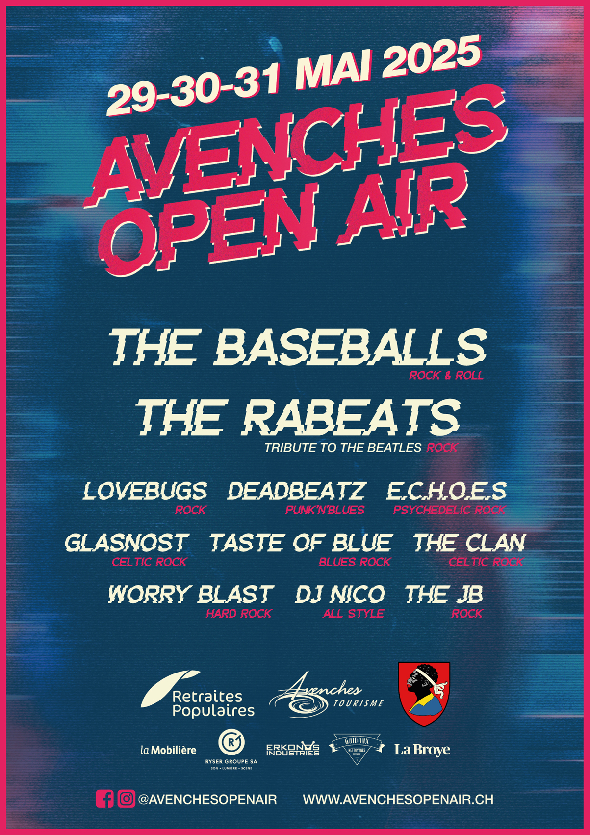 Le vendredi, ce sera The Rabeats qui sont “LE” groupe tribute aux Beatles. Ils ont tourné partout en Europe, enchantant les foules et remplissant les Zéniths en France. Pour leur ultime tournée, ils viendront faire danser le public Avenchois au rythme des plus grands tubes de ce groupe mythique. Samedi soir The Baseballs feront bouger le public avec leur rock’n’roll des années ’50-’60 complètement déjanté. C’est un groupe dont nous rêvions depuis un moment mais n’avions jusqu’ici pas les moyens de programmer. Ils seront à Avenches sur la fin de leur tournée printanière.