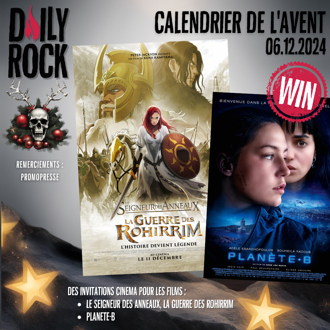 Aujourd’hui pour le 06.12.2024, nous vous proposer des invitations cinéma pour les films Le Seigneur des Anneaux, La guerre des Rohirrim & Planète B !